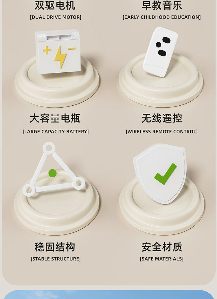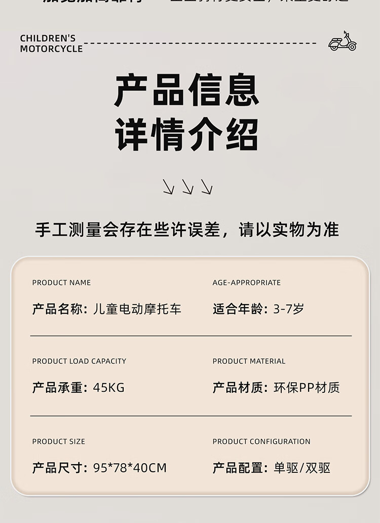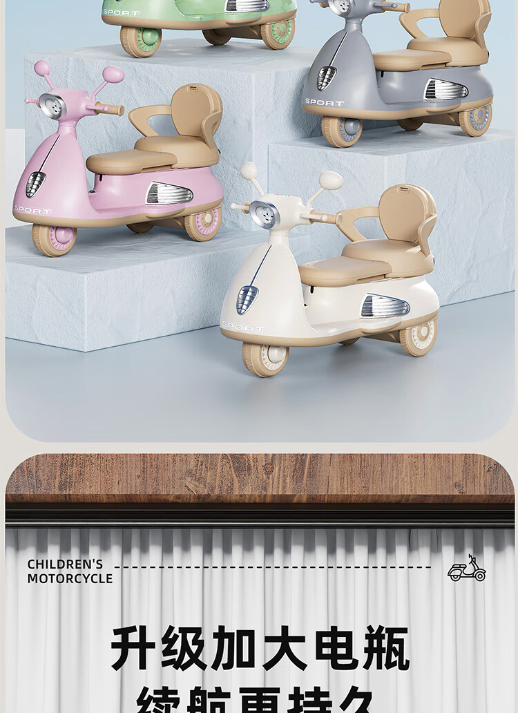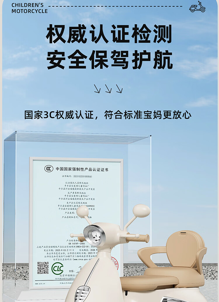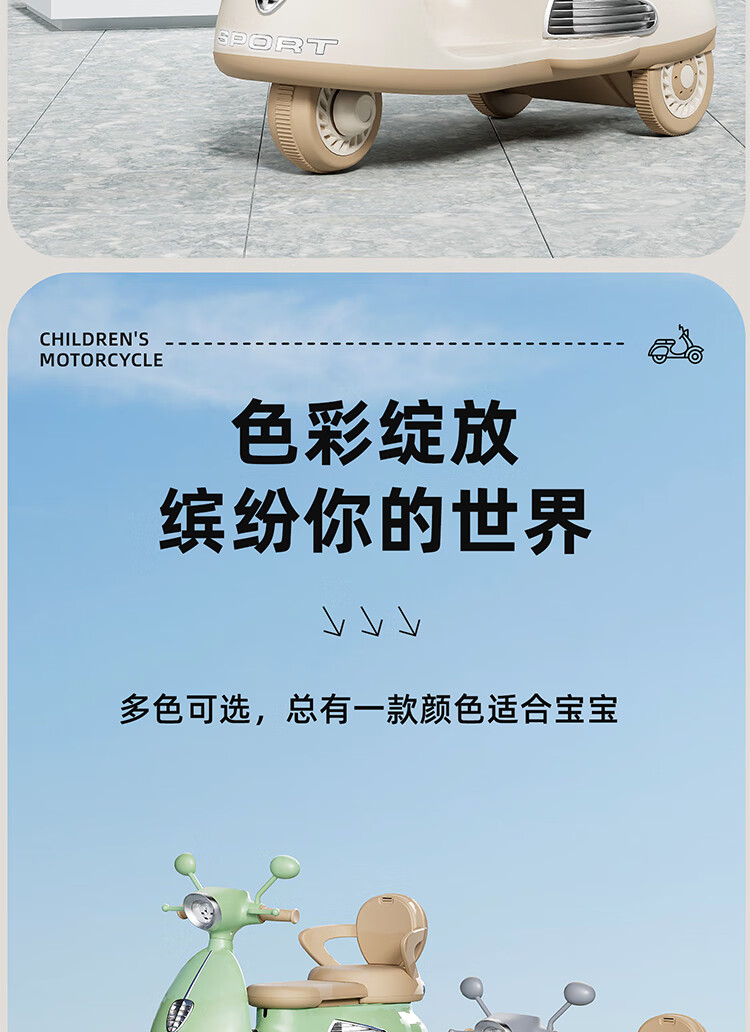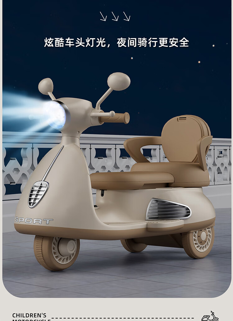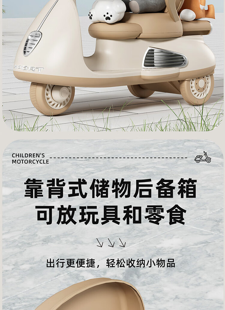 Beibele children's electric motorcycle can sit on a double remote-controlled tricycle and 1-6-year-old boys and girls can drive a toy car. Standard white 6V4 single drive + adjustable seat + early education music. Exquisite gift box packaging. Great gift.
