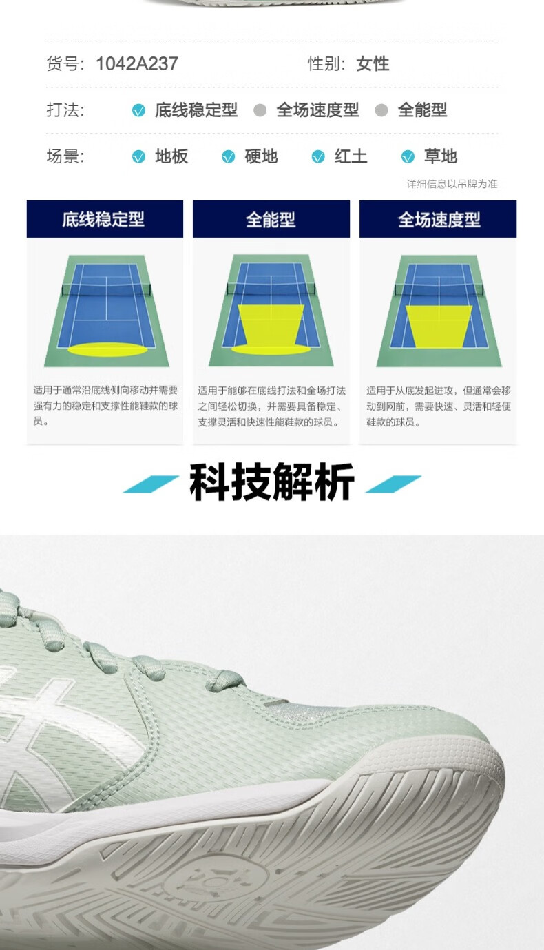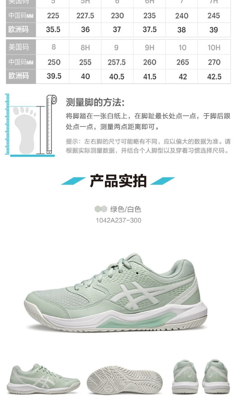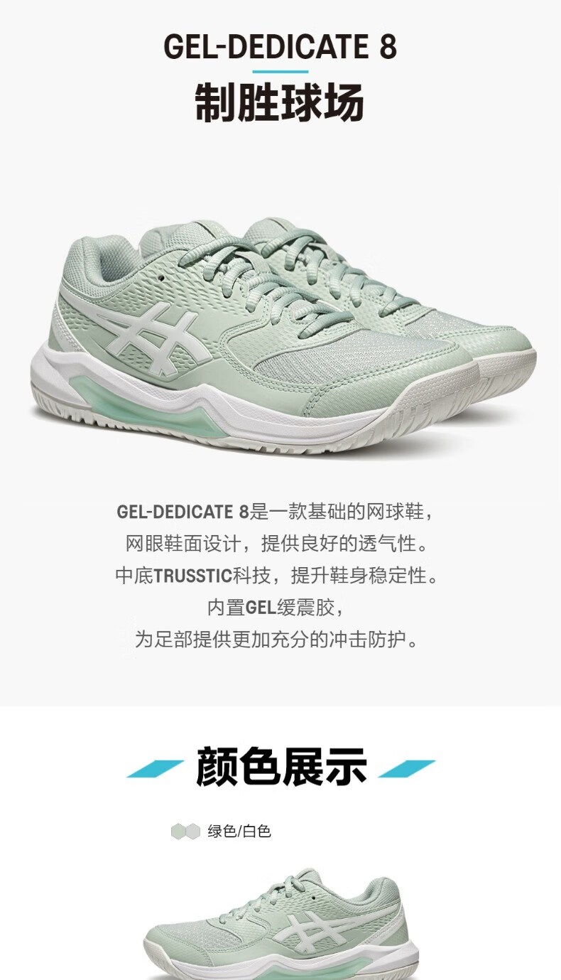 ASICS tennis shoes women's new GEL-DEDICATE 8 competition training shoes comfortable breathable sports shoes for women green/white 39.5