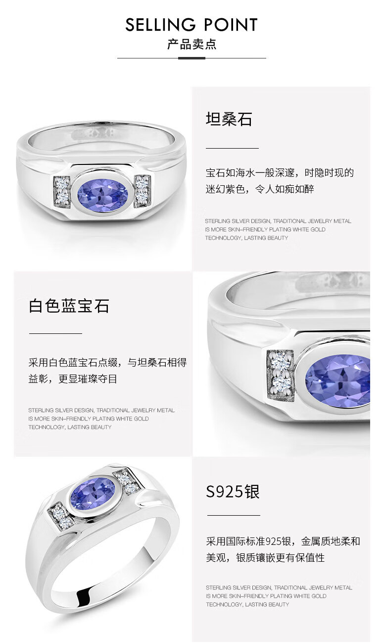 GEM STONE KING men's ring 1.32 carat blue purple tanzanite 925 silver set with white sapphire wide men's ring US size 7