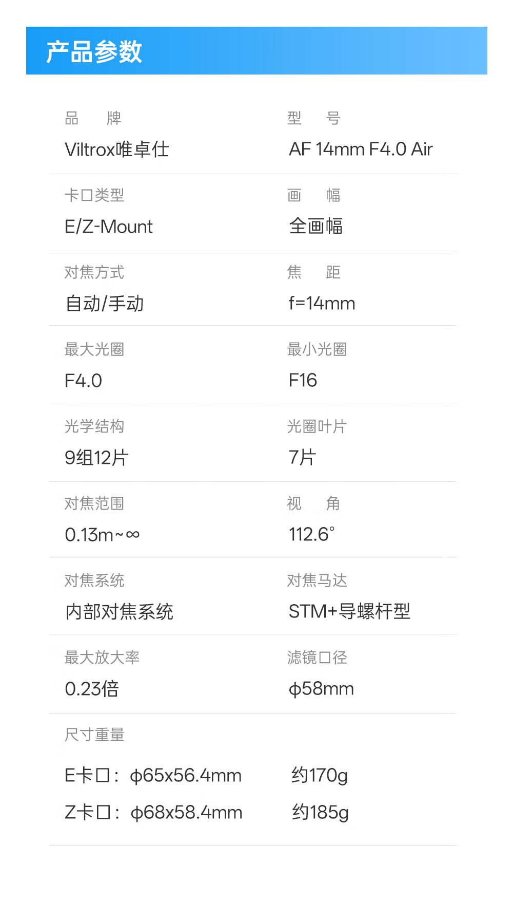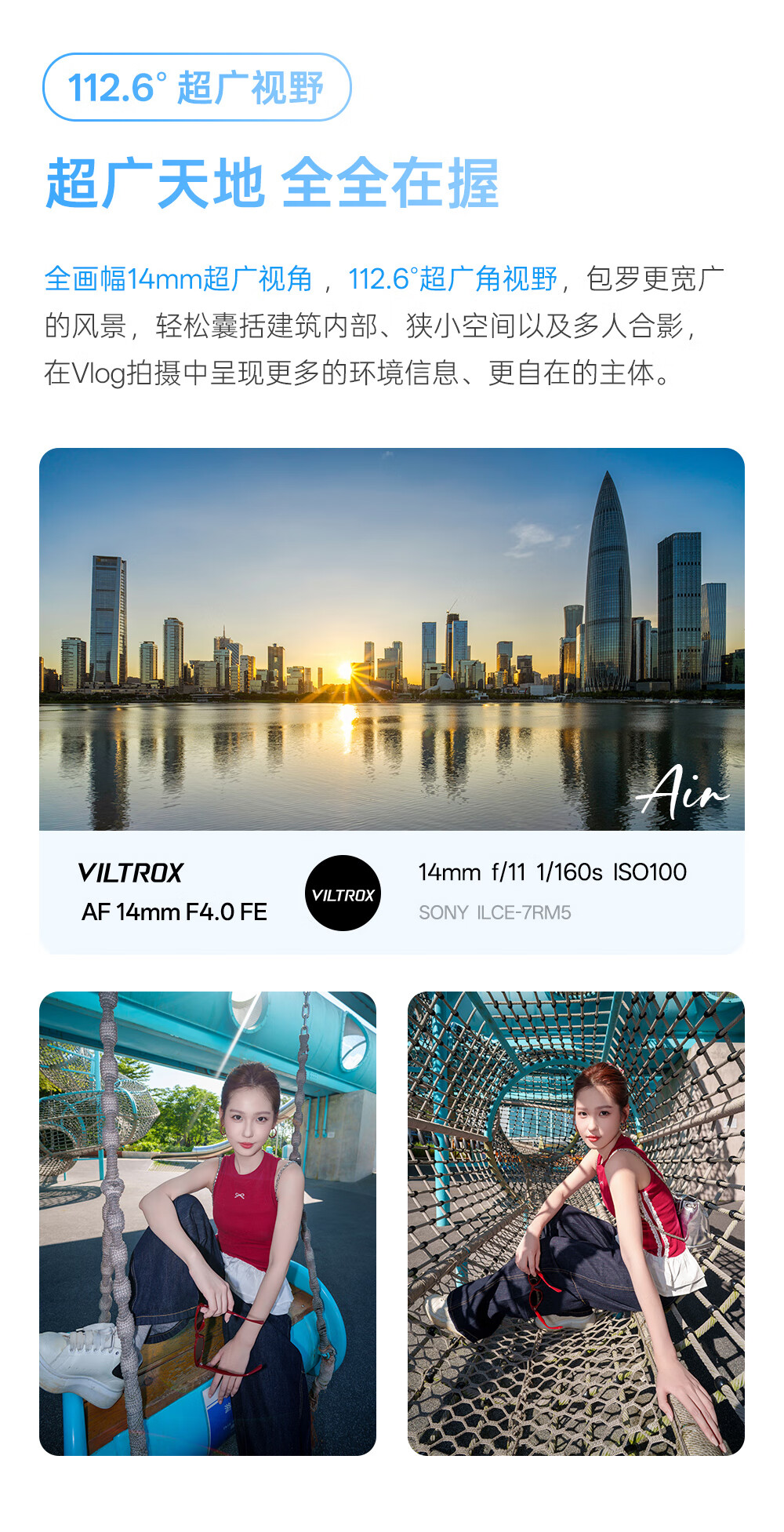 Viltrox 14mm F4.0 full-frame ultra-wide-angle autofocus lens is suitable for Z-mount E-mount A7C2 A7M4 ZF mirrorless camera starry sky scenery photography fixed focus lens AF 14mm F4.0 Air FE (Sony port) official standard