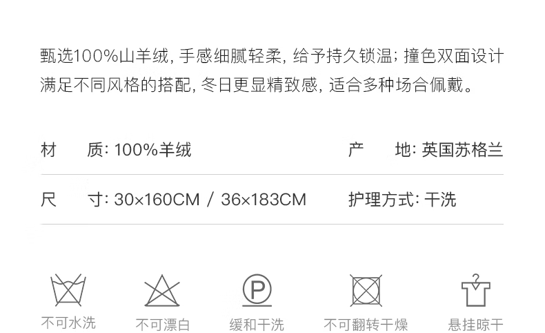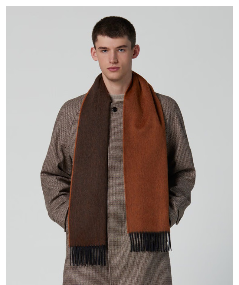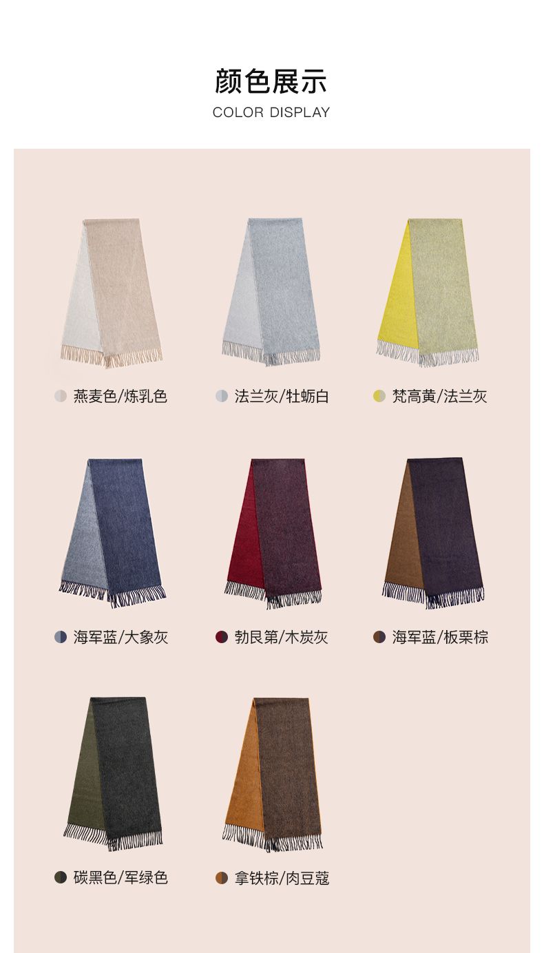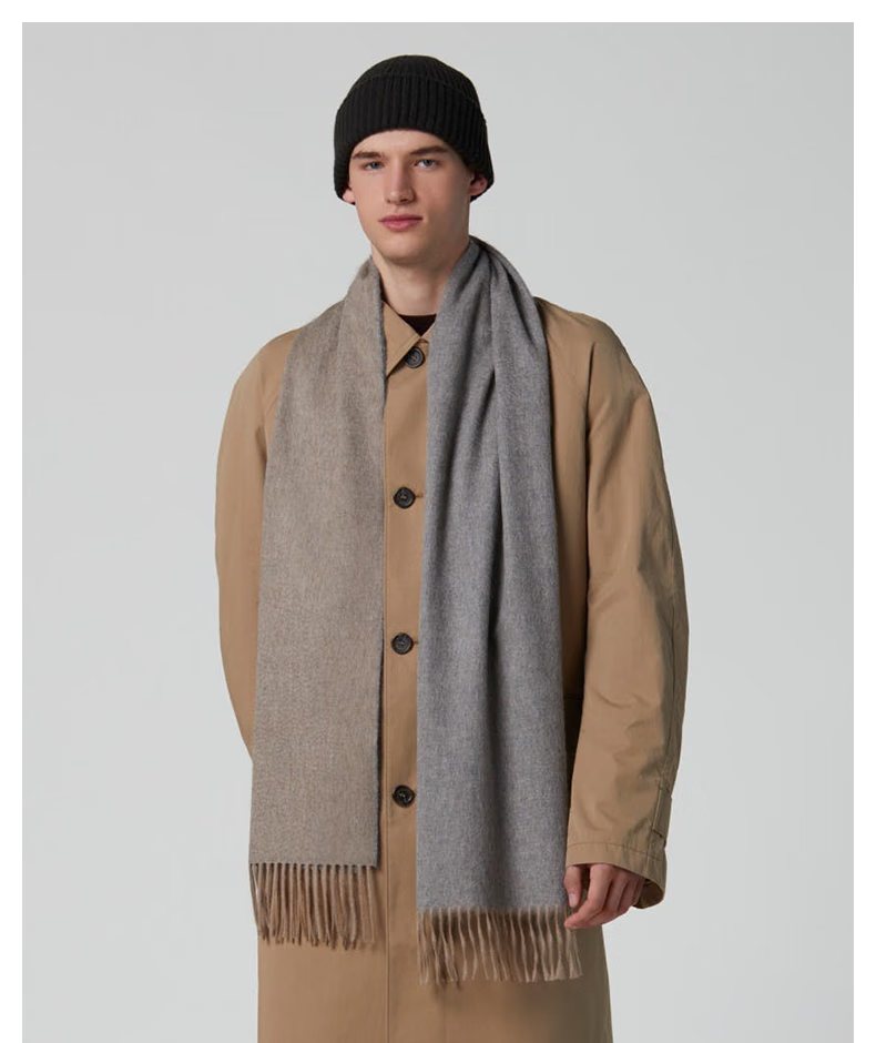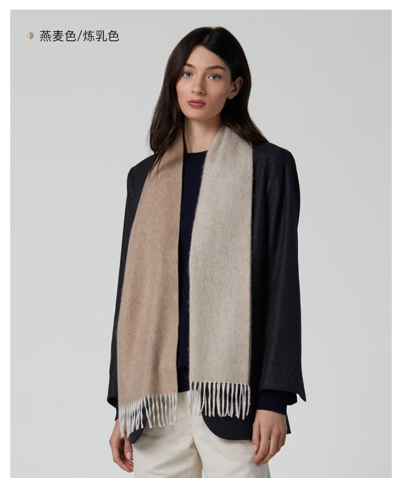 Dents light luxury Scottish cashmere scarf for men and women, water rippled two-color double-sided winter and Spring Festival gift CONVERT oatmeal/condensed milk color 36x183cm