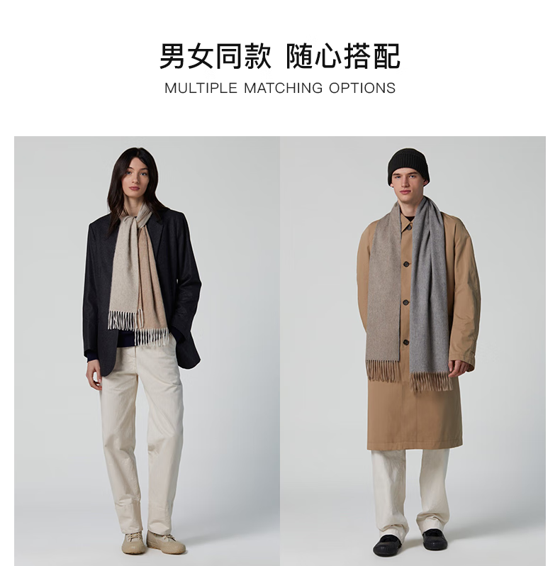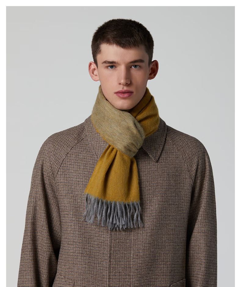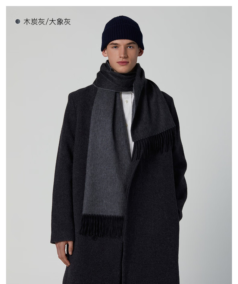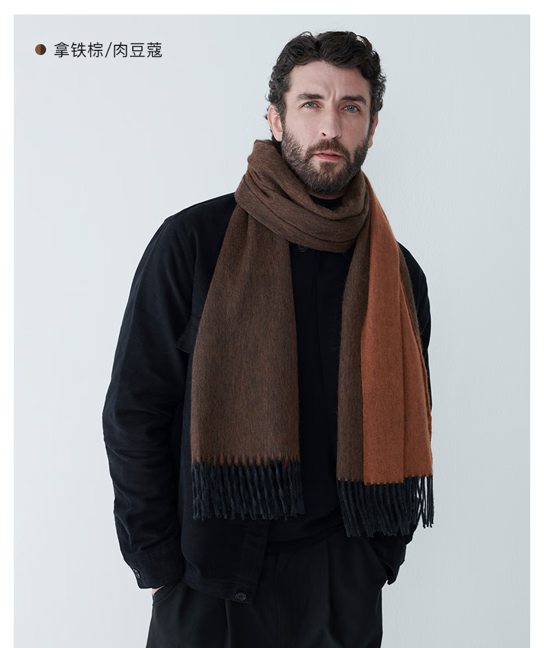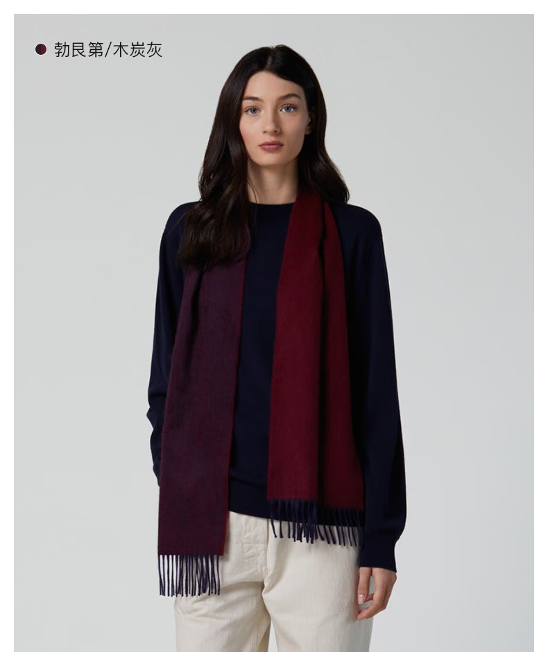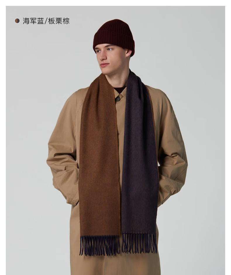 Dents light luxury Scottish cashmere scarf for men and women, water rippled two-color double-sided winter and Spring Festival gift CONVERT oatmeal/condensed milk color 36x183cm