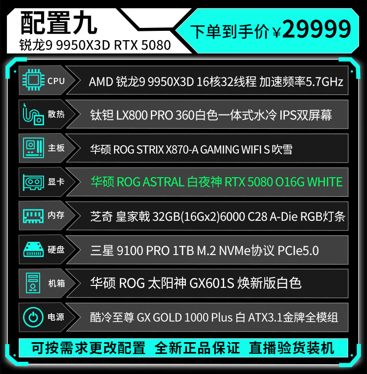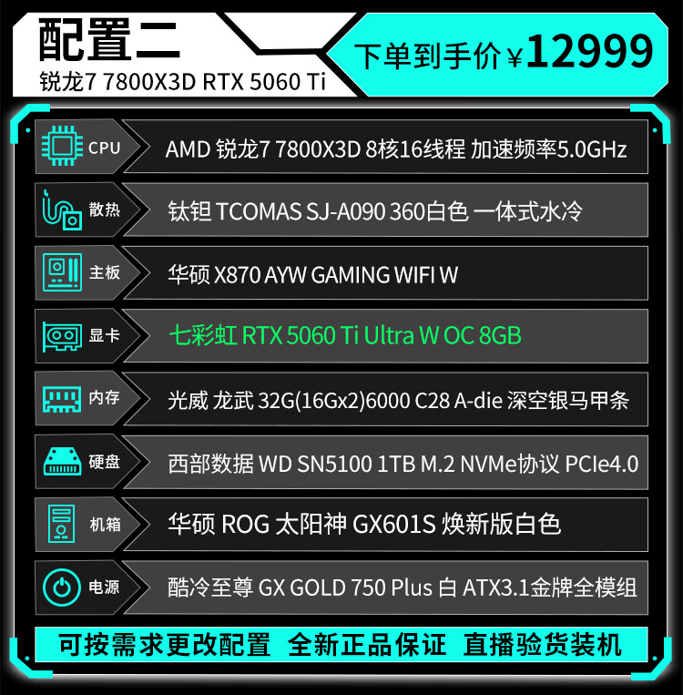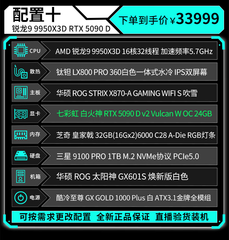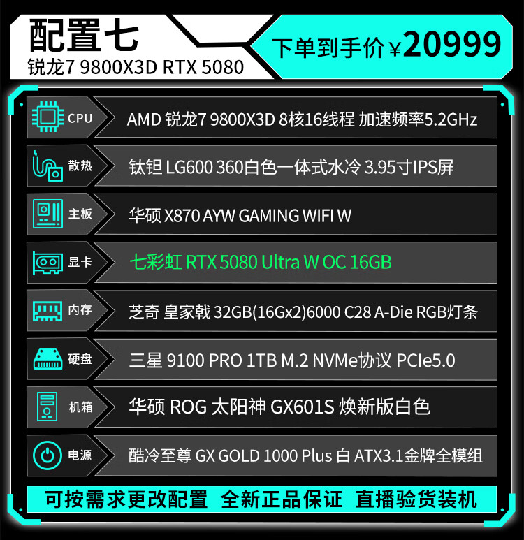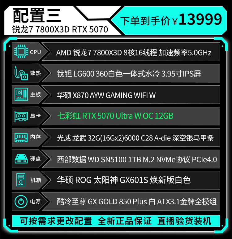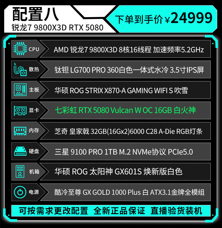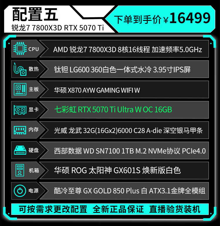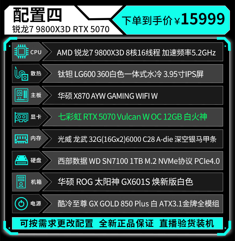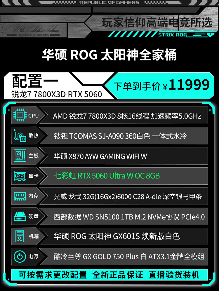 AMD9800X3D 7800X3D Family Bucket ROG Helios White Thousand Frames E-Sports Game Live Host 5070Ti 5080 White Vulcan Graphics Card DIY Assembly Computer Complete Machine Six R7 9800X3D+RTX5070Ti