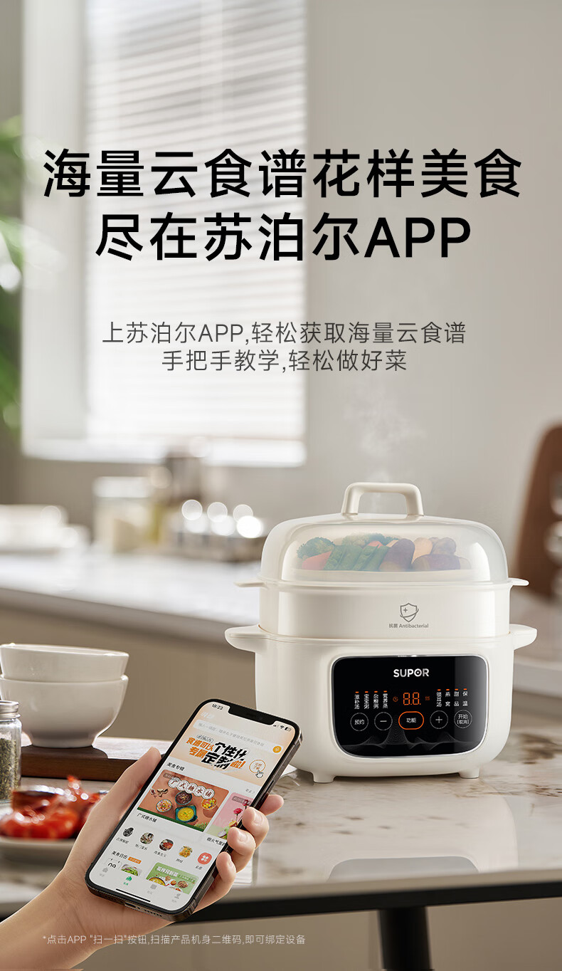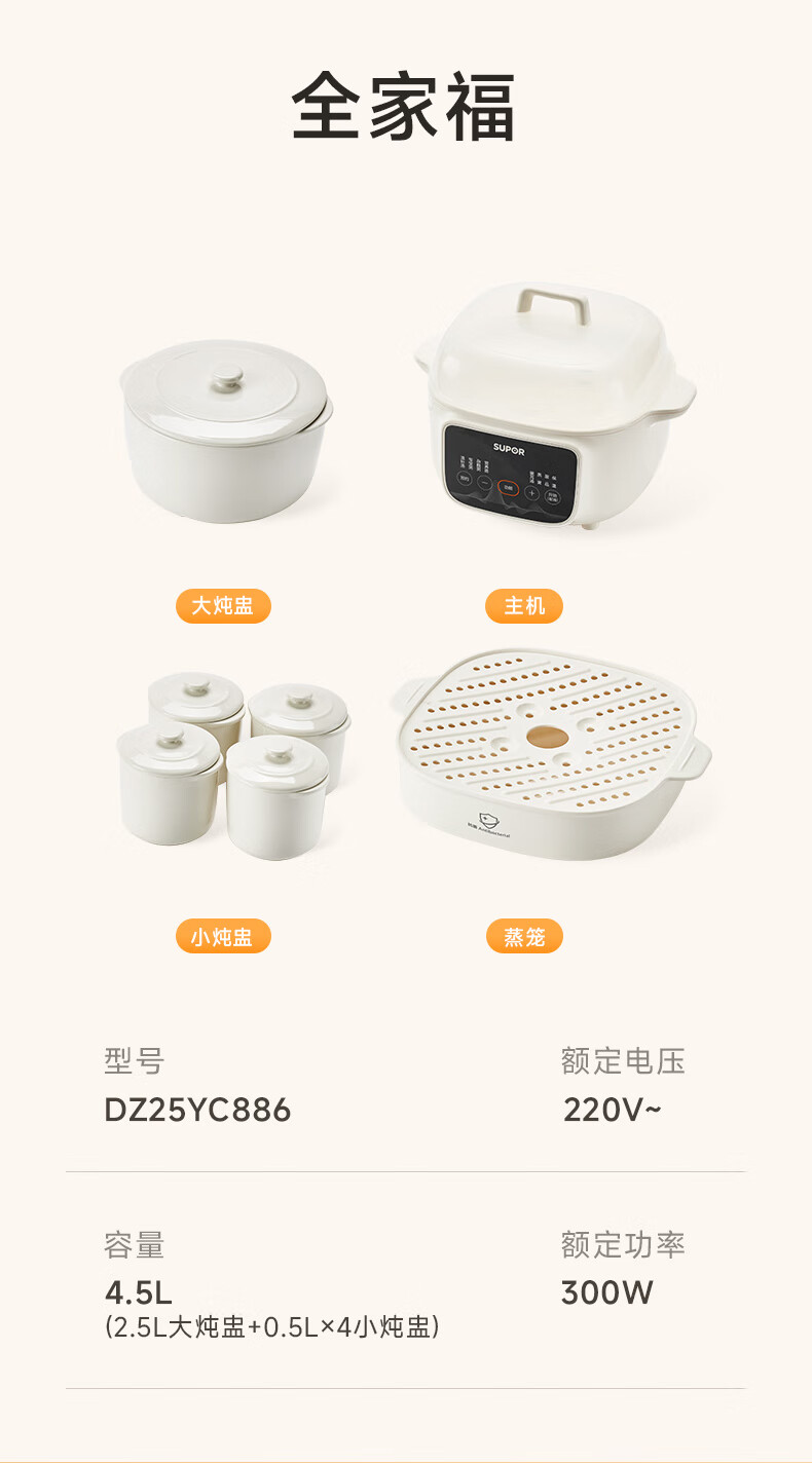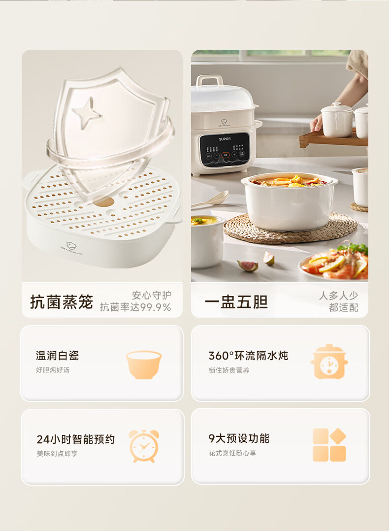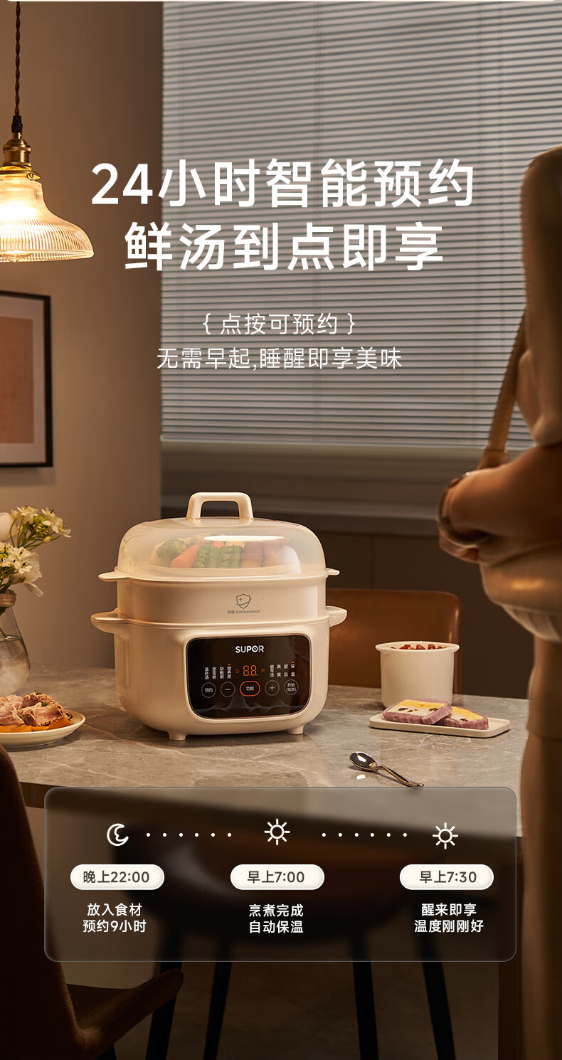 SUPOR electric stew pot, household 2.5L electric stew pot, water-proof electric stew pot, ceramic fully automatic soup stew all-in-one electric pot, stew and steaming all-in-one stew pot, electric steamer, five bladders in one pot, antibacterial steamer 2.5L