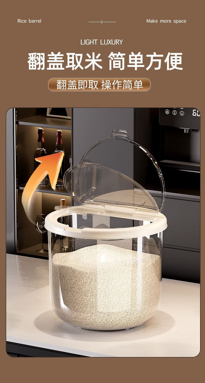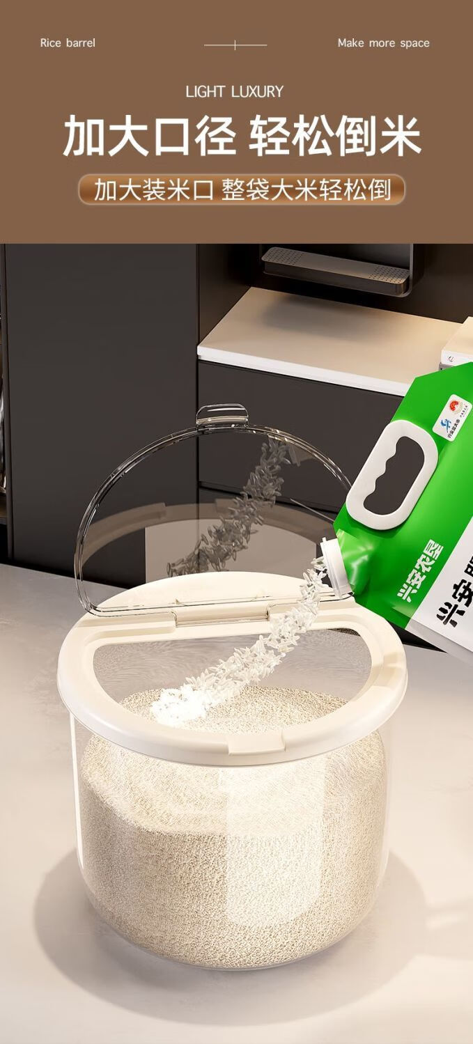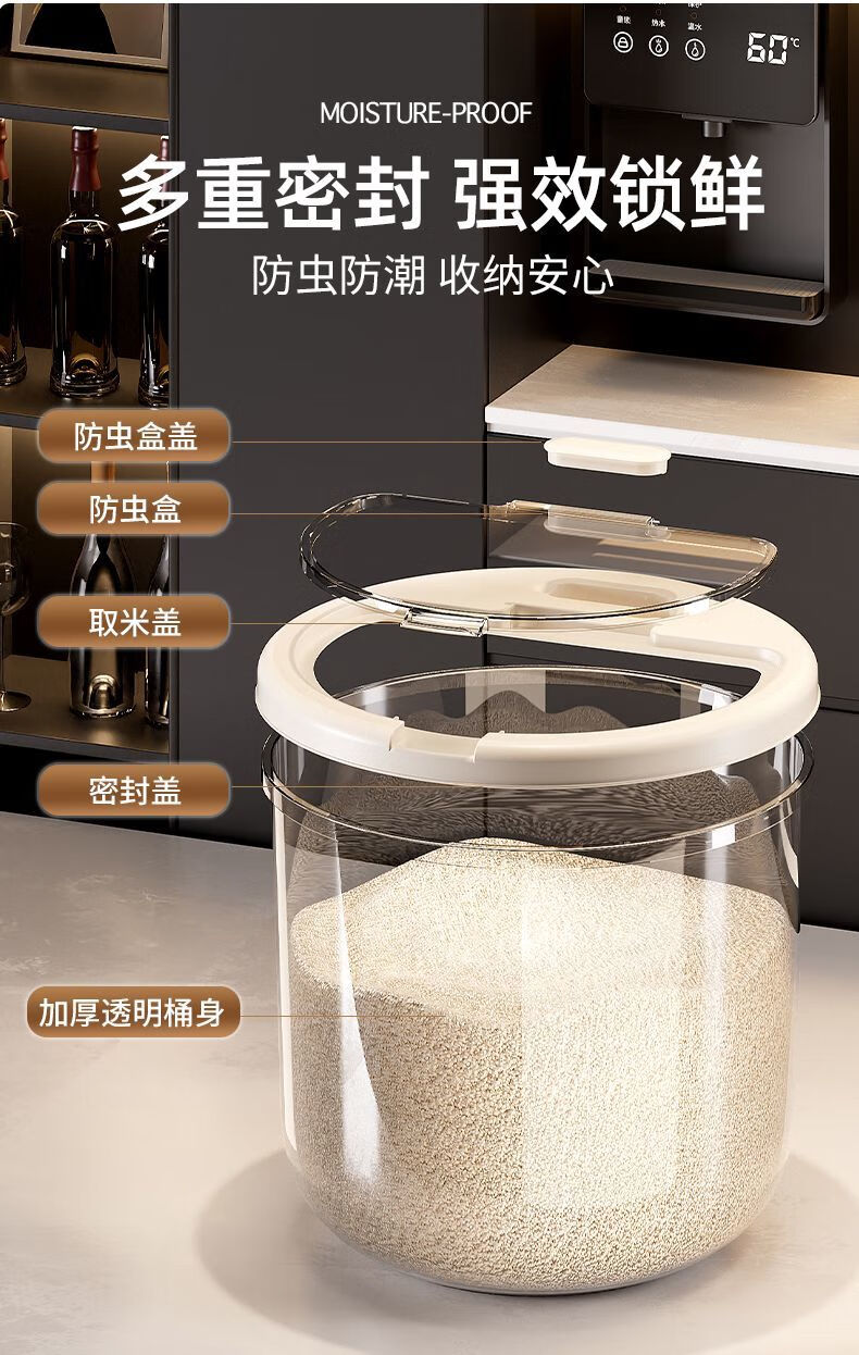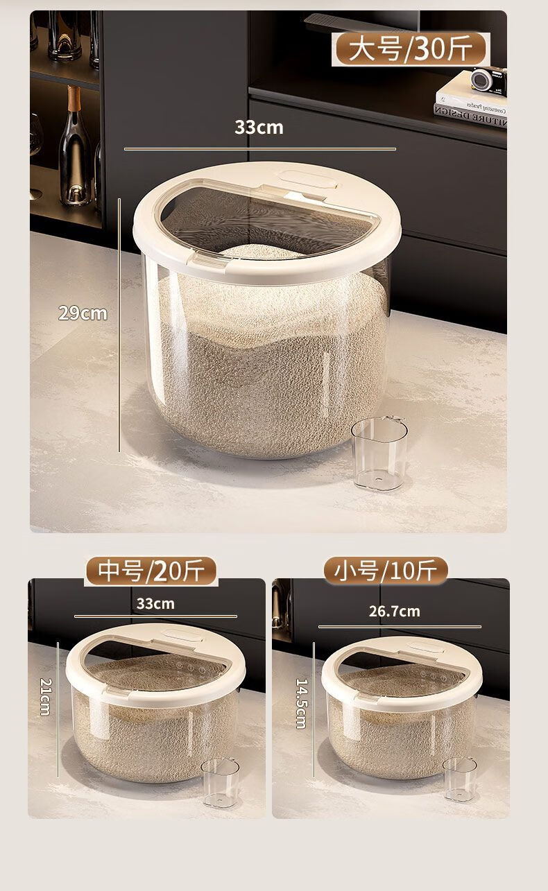2025 New Rice Barrel Insect-Proof and Moisture-Proof Sealed Rice Jar Household 20 Jin Jin equals 0.5 kg 30 Jin Jin equals 0.5 kg Rice Box Grain Sealed Jar Upgraded Sealing Moisture-proof and Insect-proof Free Measuring Rice Cup Thickened and Durable 30 Jin Jin equals 0.5 kg + Deepened and Thickened