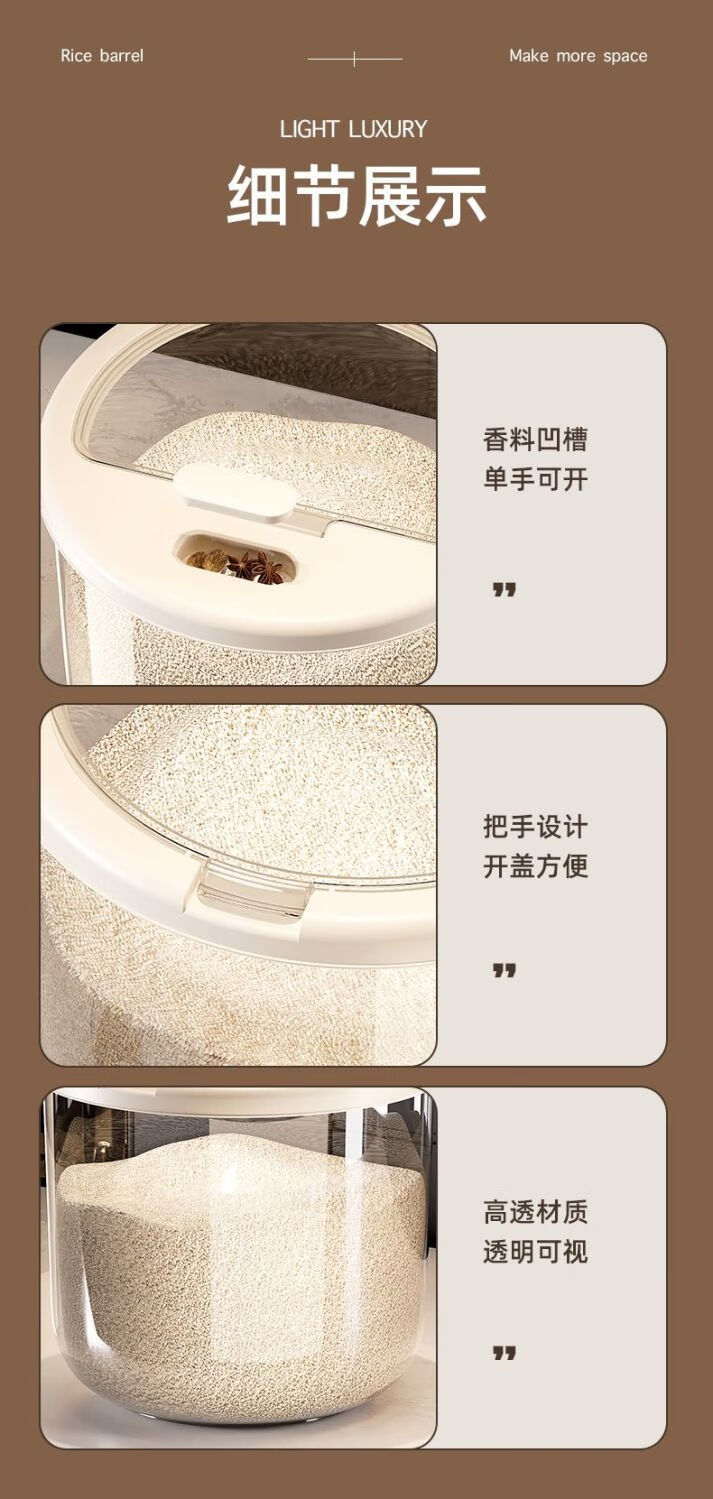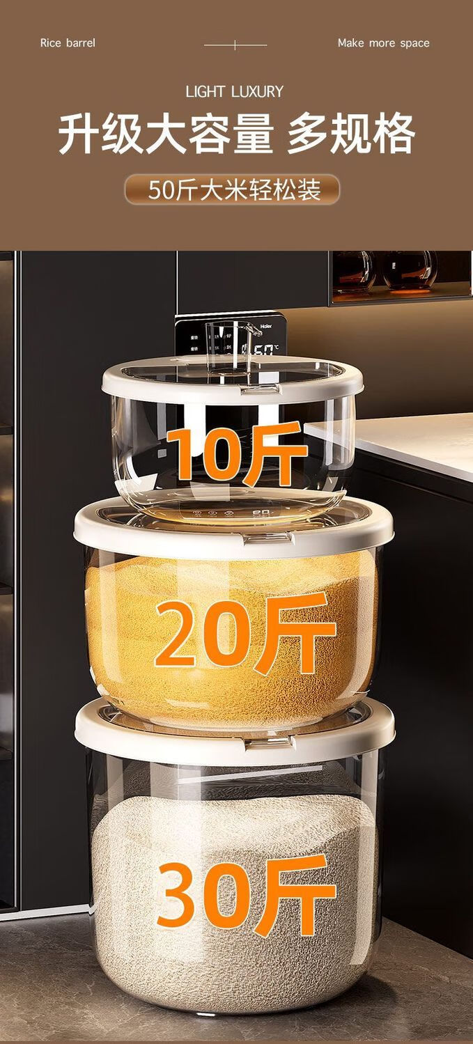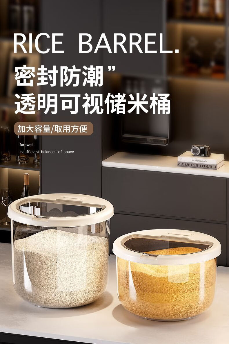 2025 New Rice Barrel Insect-Proof and Moisture-Proof Sealed Rice Jar Household 20 Jin Jin equals 0.5 kg 30 Jin Jin equals 0.5 kg Rice Box Grain Sealed Jar Upgraded Sealing Moisture-proof and Insect-proof Free Measuring Rice Cup Thickened and Durable 30 Jin Jin equals 0.5 kg + Deepened and Thickened