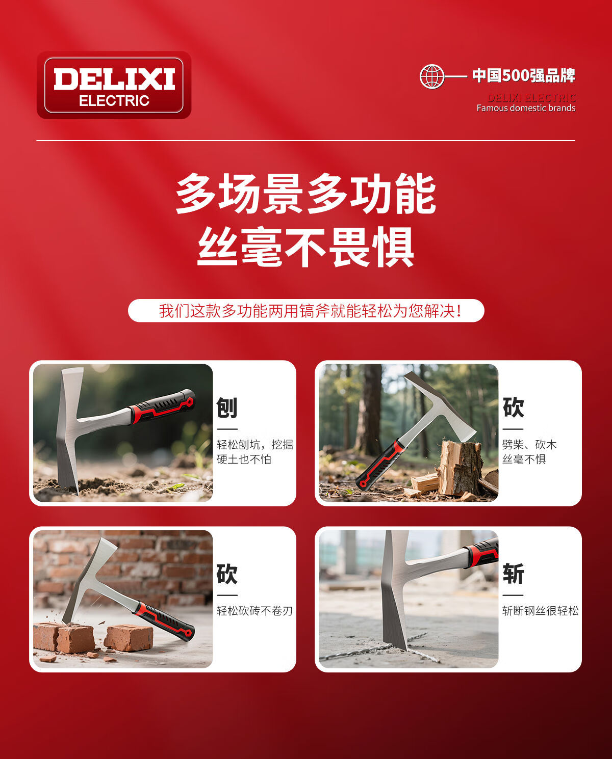 Shantou Lincun manganese steel multifunctional all-in-one pickaxe hoe ax agricultural sheep horn splitting firewood small cross pick digging soil digging yam tool industrial grade large manganese steel one-piece dual-purpose pickaxe