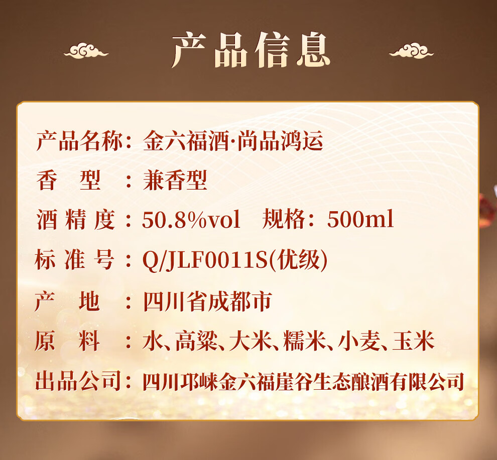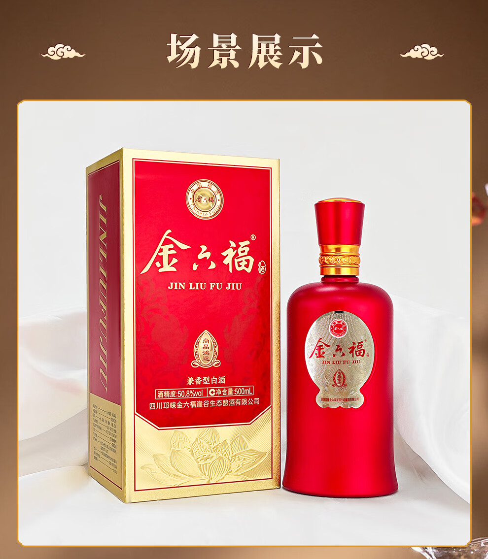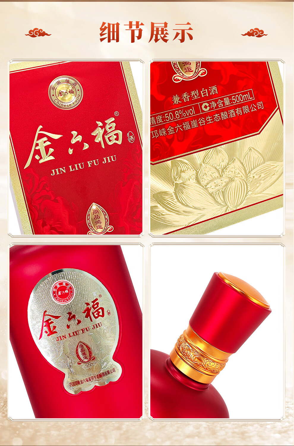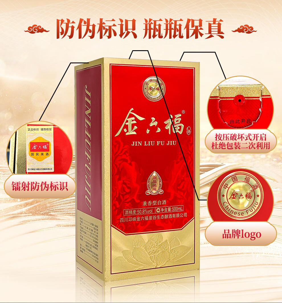 Jinliufu dual-flavor high-quality liquor, grain wine, holiday and new year gifts, weddings and banquets, self-drinking water, 50.8 degrees, 500mL, 2 bottles, Shangpin Hongyun