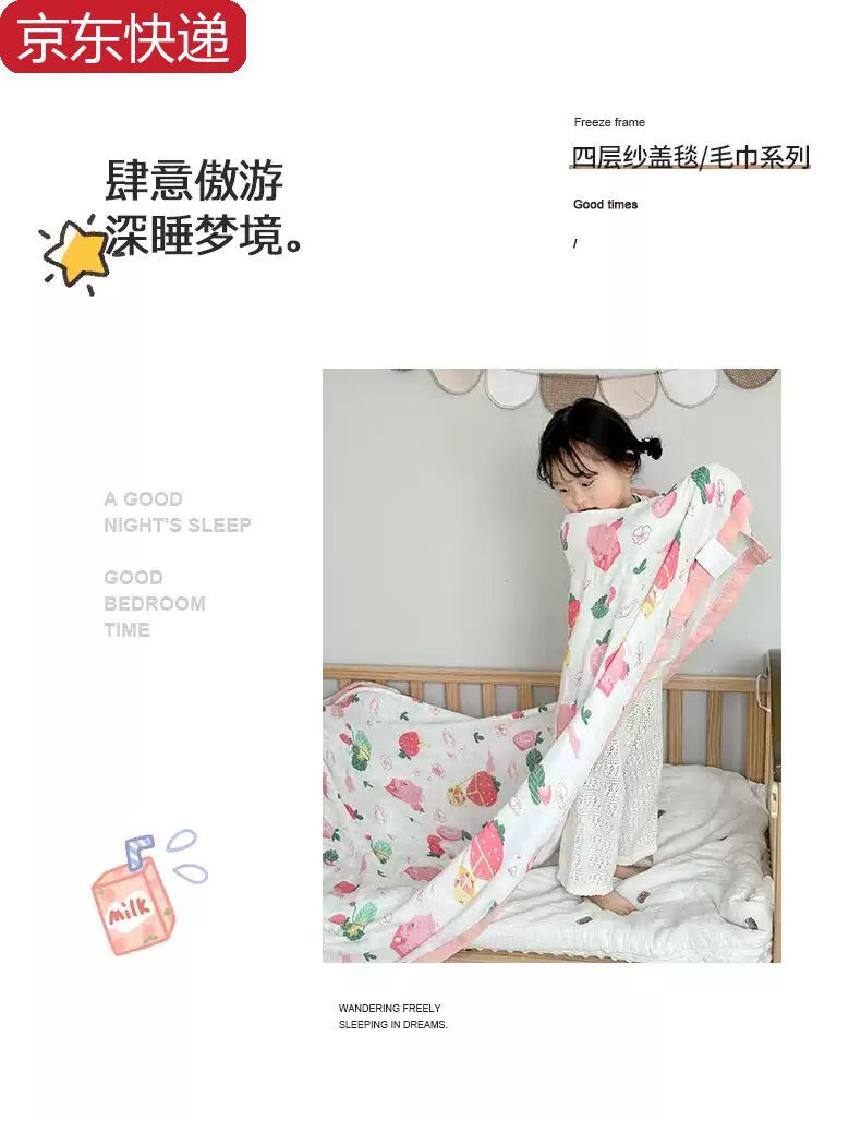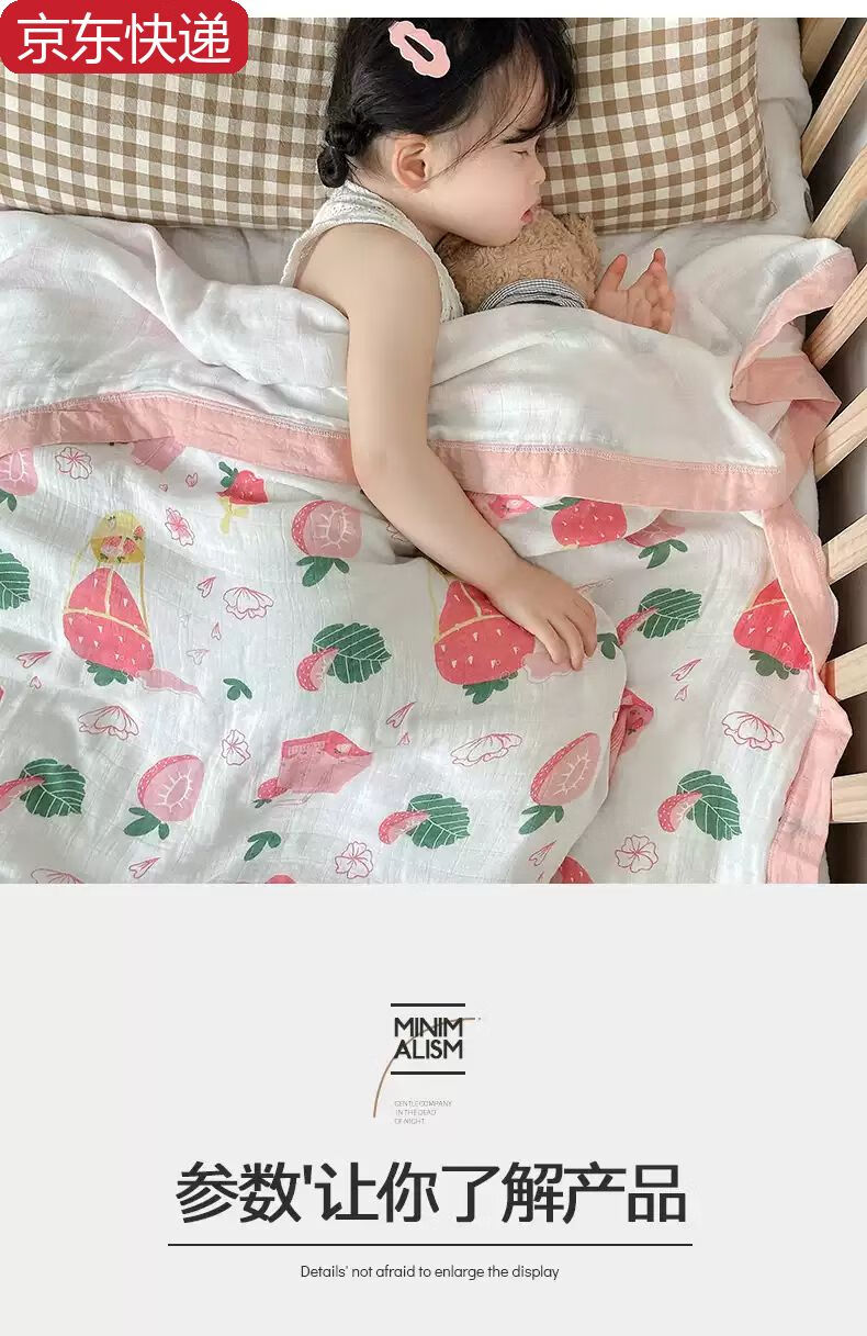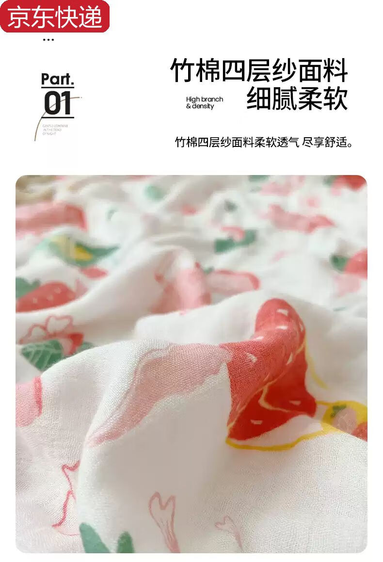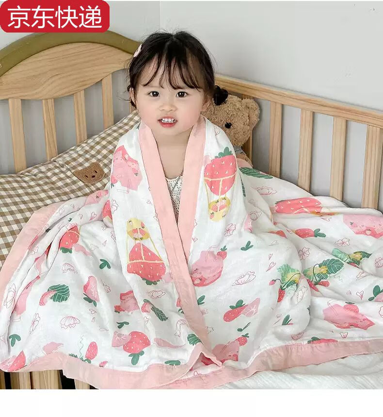 Sanqihu bamboo cotton gauze baby blanket baby summer cooling quilt children's quilt summer kindergarten nap thin blanket air conditioning quilt Strawberry Manor - four layers of bamboo cotton gauze 110*110cm Strawberry Manor - four layers of bamboo cotton gauze 110*110cm
