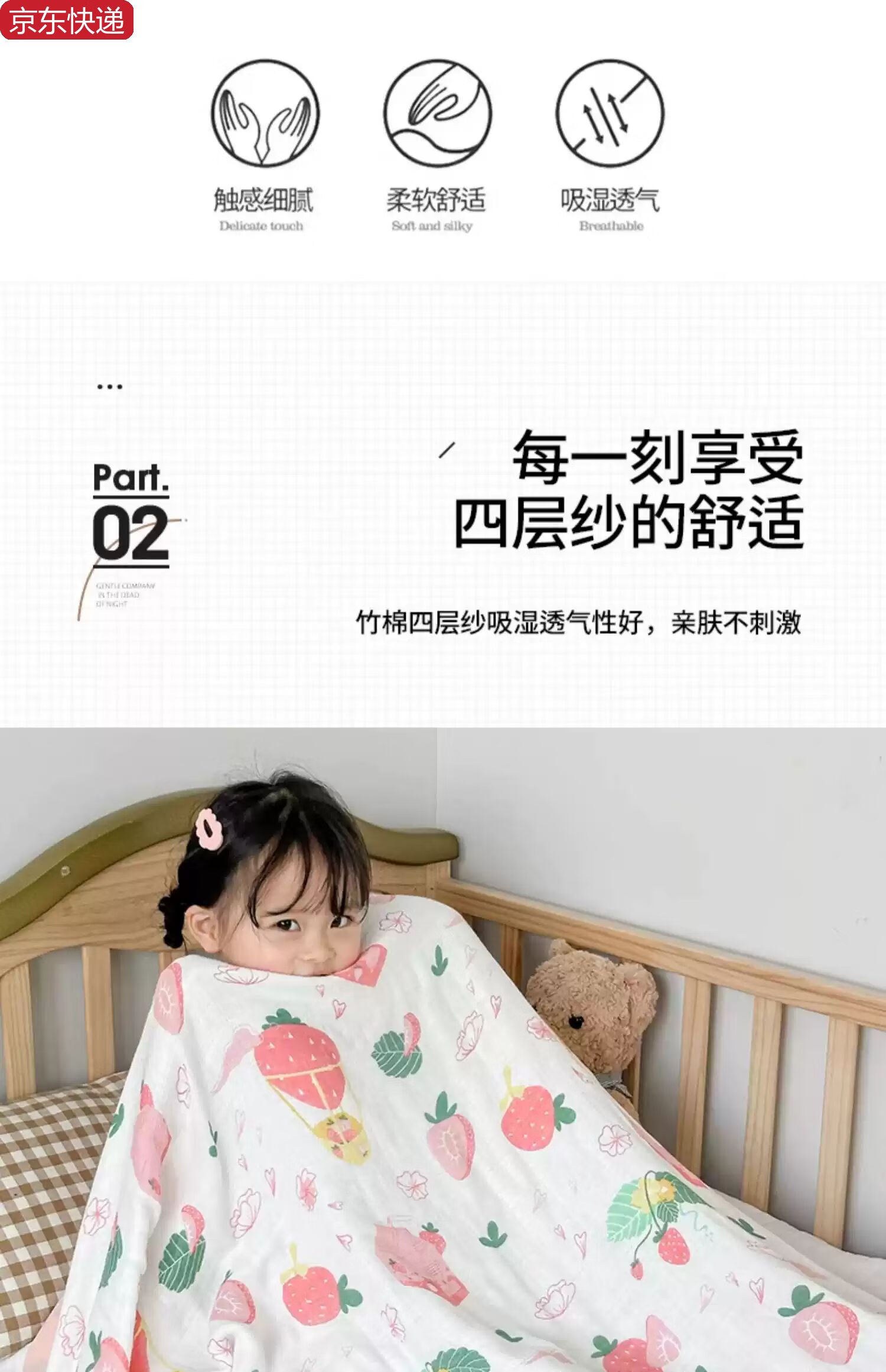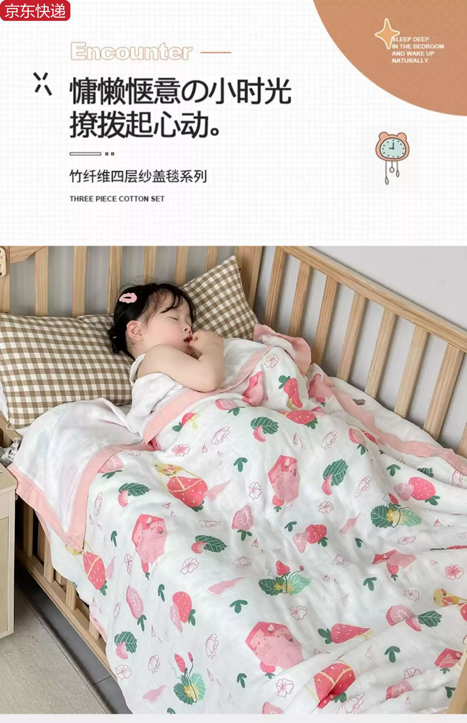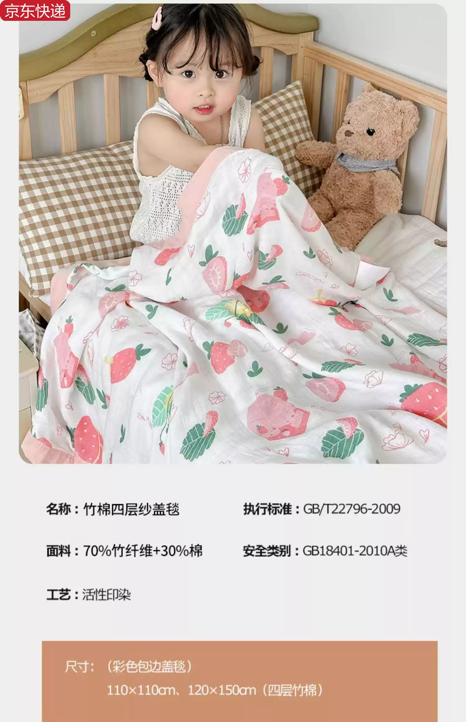 Sanqihu bamboo cotton gauze baby blanket baby summer cooling quilt children's quilt summer kindergarten nap thin blanket air conditioning quilt Strawberry Manor - four layers of bamboo cotton gauze 110*110cm Strawberry Manor - four layers of bamboo cotton gauze 110*110cm