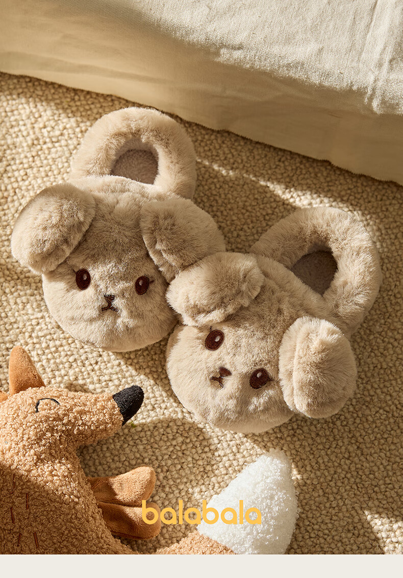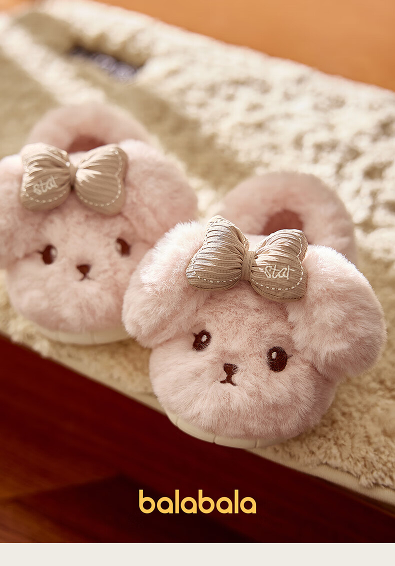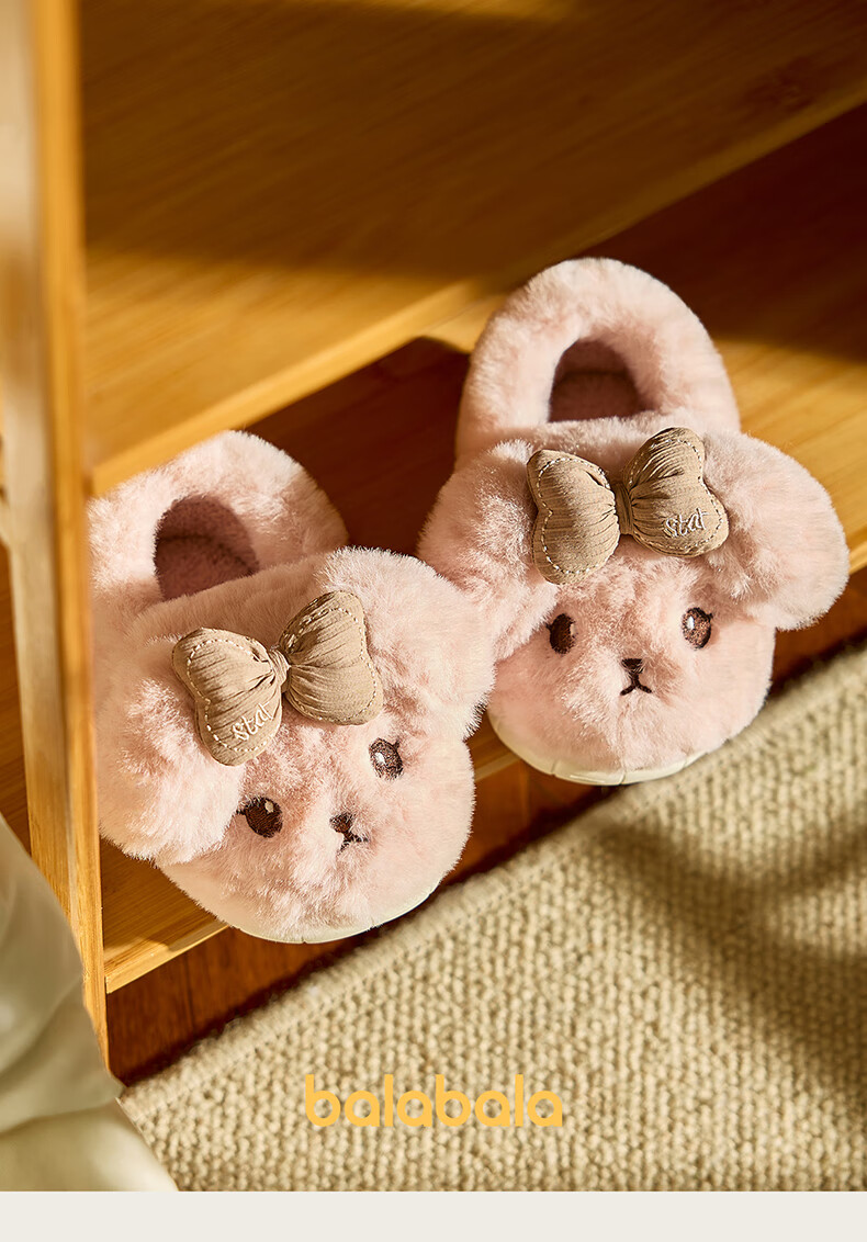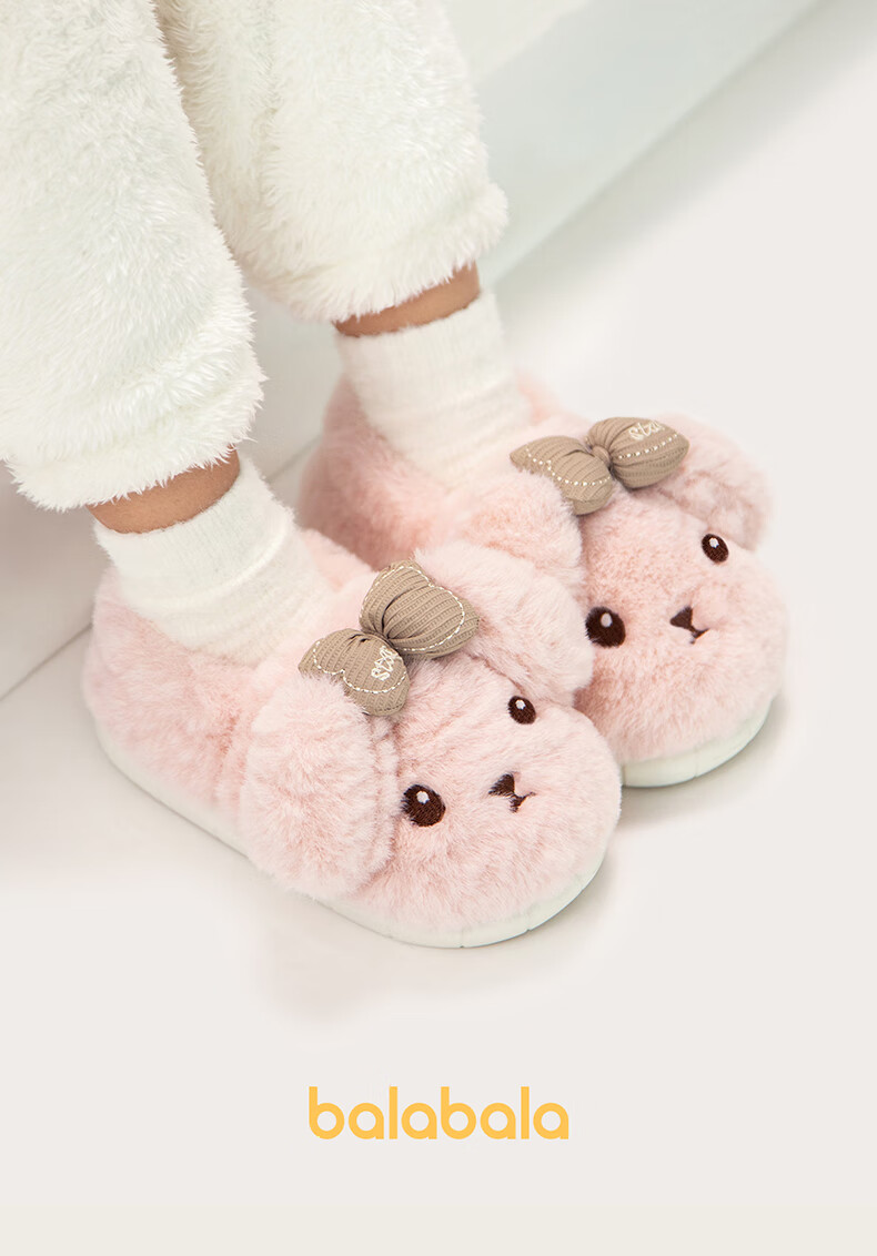 BALABALA Children's Cotton Slippers Girls 2025 New Indoor Home Cartoon Anti-Slip Warm Wool Shoes Boys Children's Cotton Slippers Pink 26 Inner Length 17cm Suitable for Feet Length 16-16.5cm