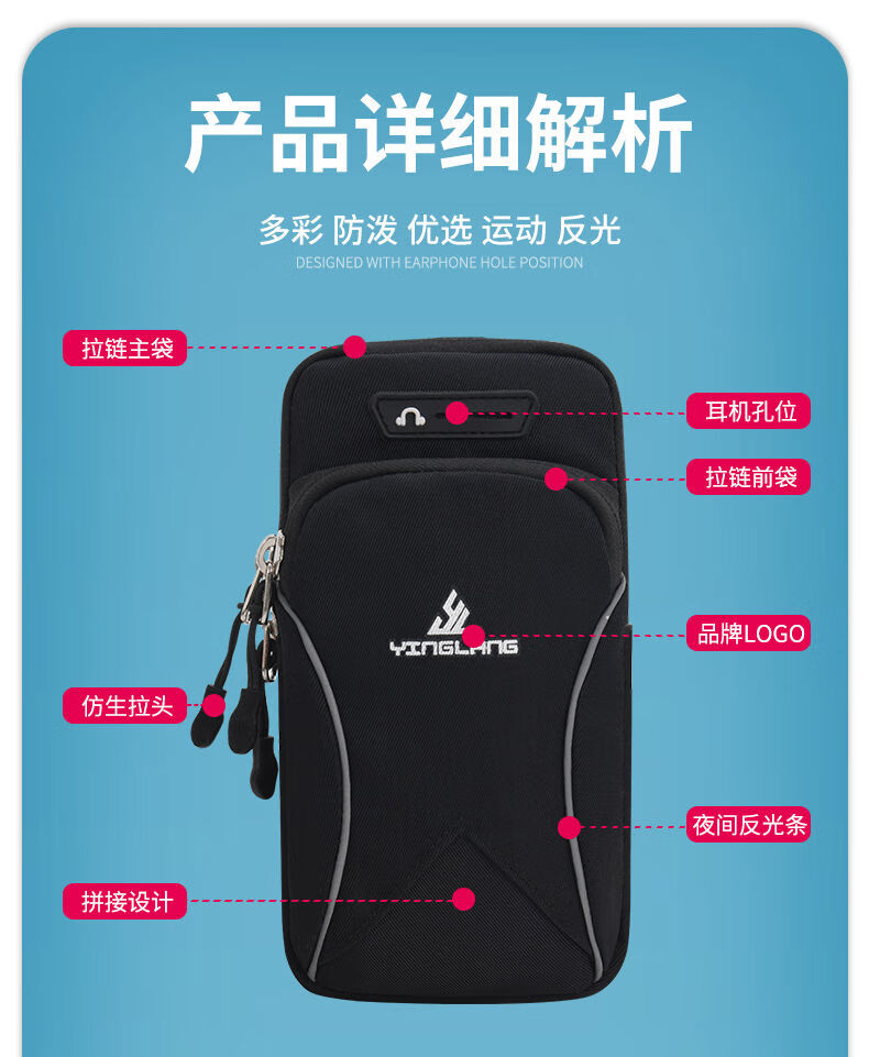 MPPMCK running mobile phone arm bag men's and women's sports fitness equipment arm arm storage bag Huawei waterproof wrist blue CX3005
