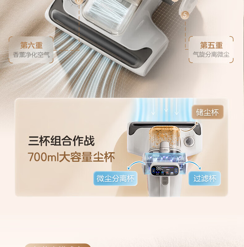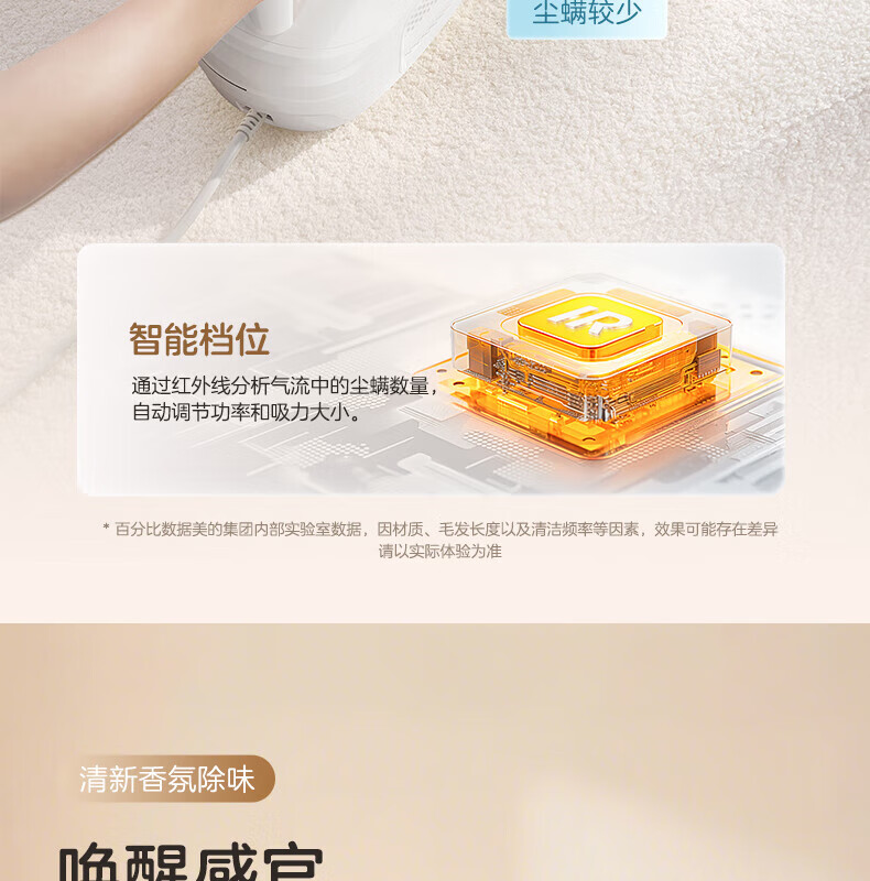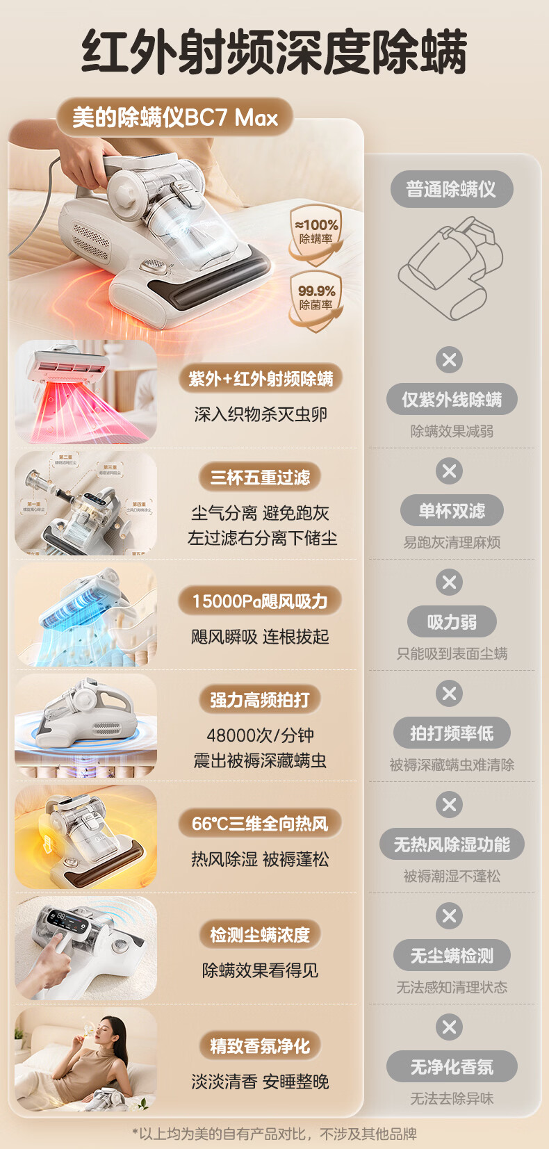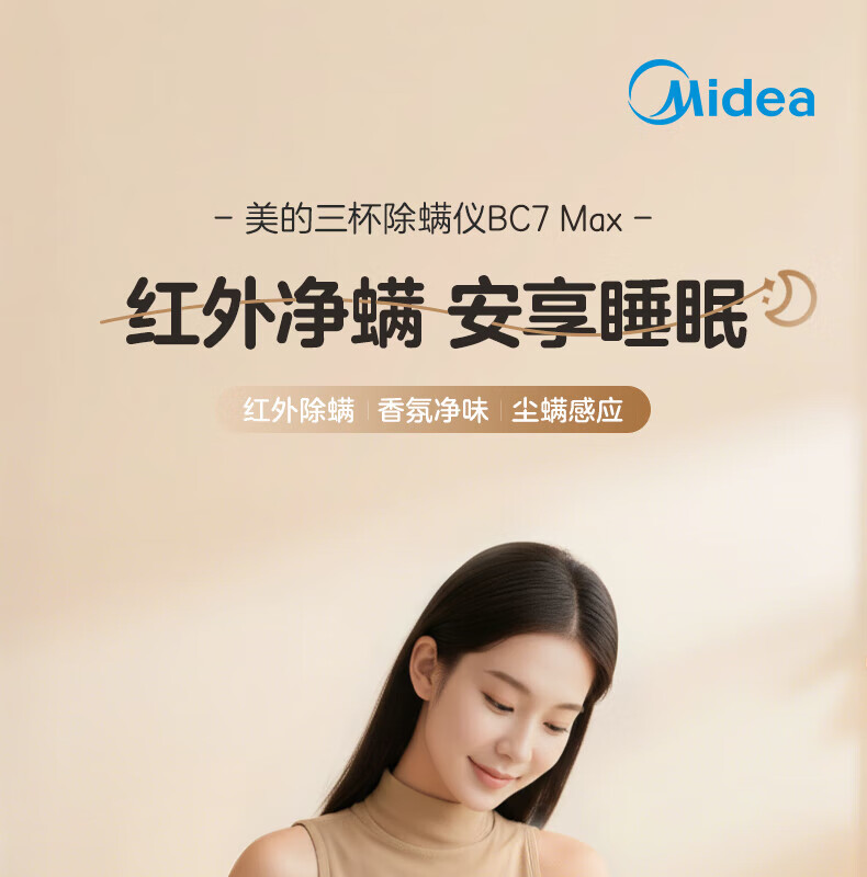美的(Midea)三杯除螨仪 66℃全维热风 红外射频净螨 紫外线杀菌 床宝家用床上吸尘除螨一体机 BC7 Max 【香氛净螨】