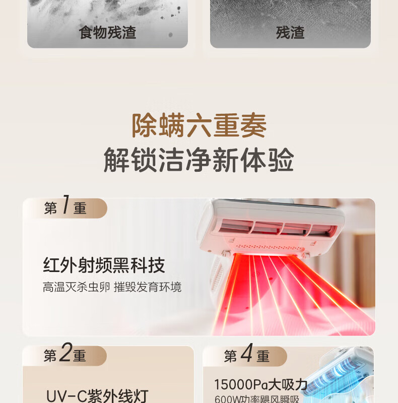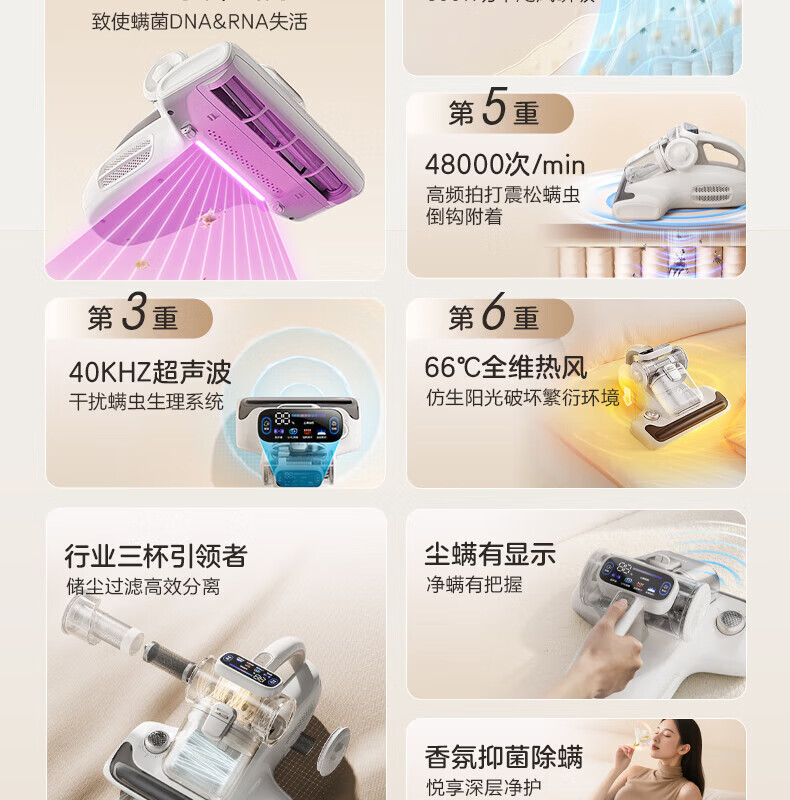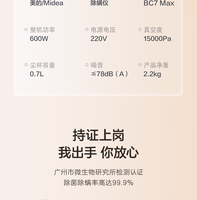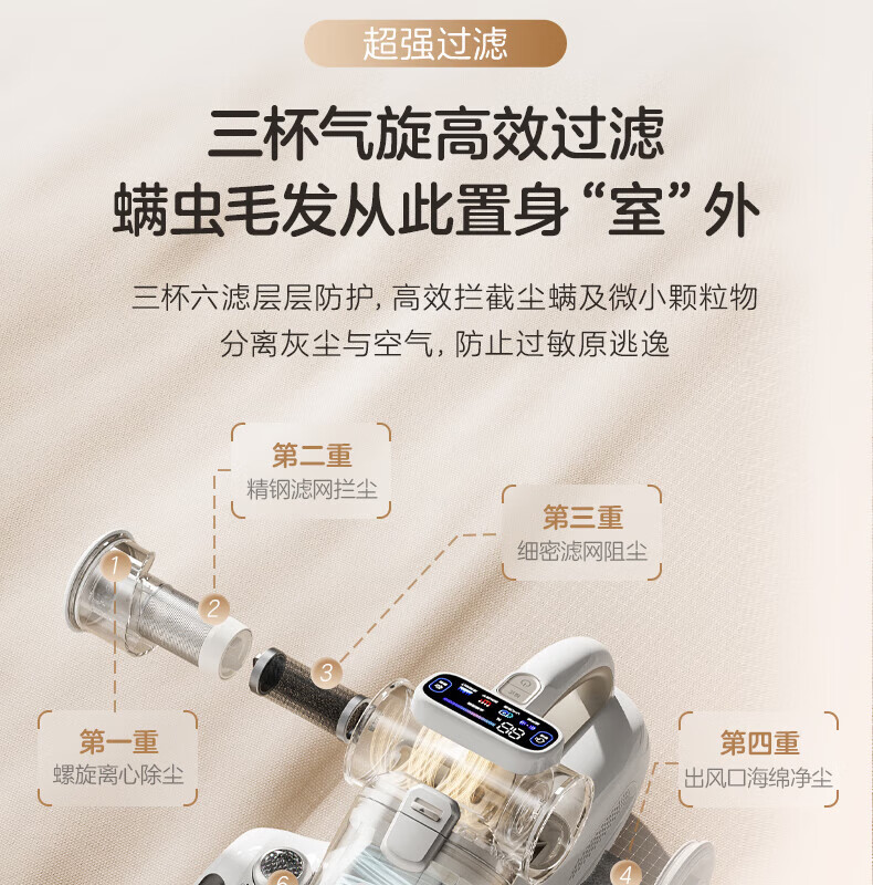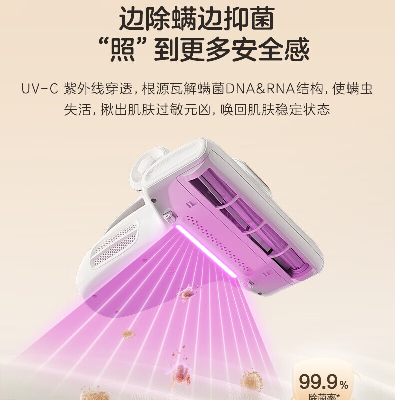 美的(Midea)三杯除螨仪 66℃全维热风 红外射频净螨 紫外线杀菌 床宝家用床上吸尘除螨一体机 BC7 Max 【香氛净螨】