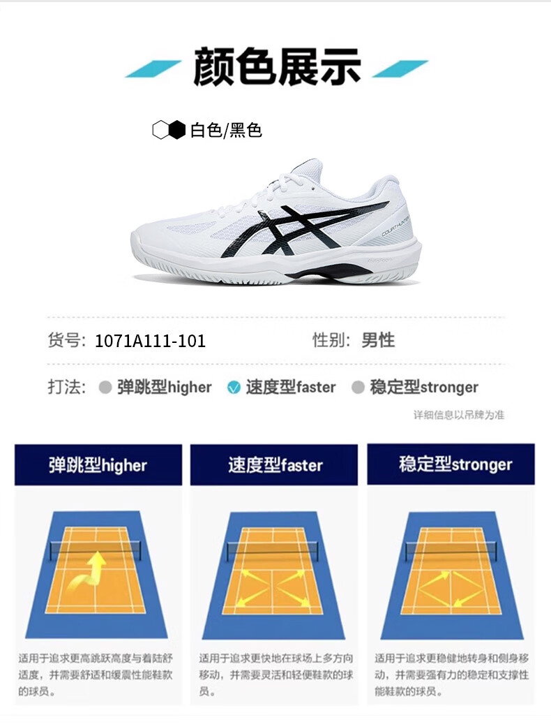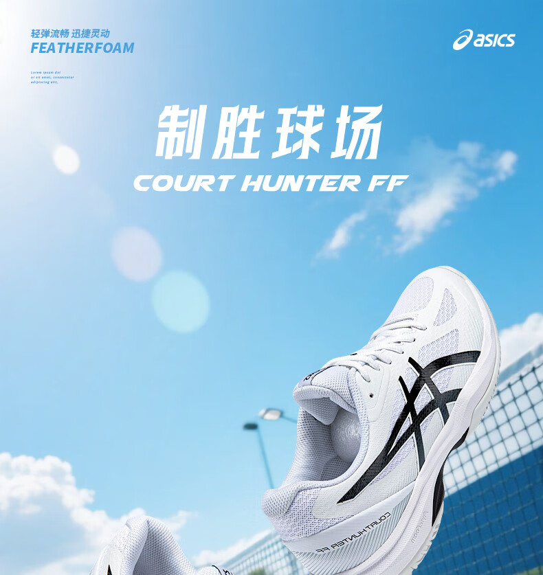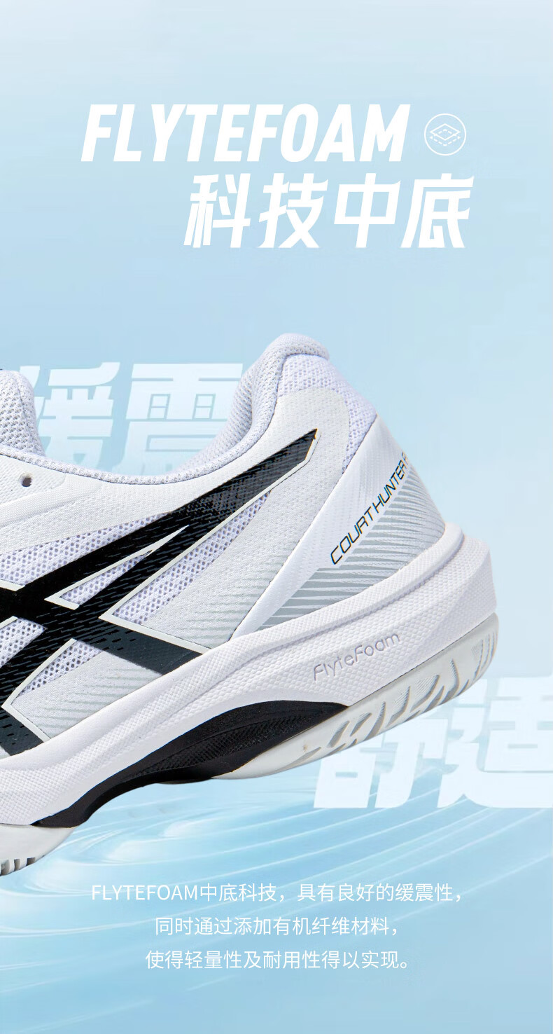 ASICS badminton shoes men's new COURT HUNTER FF shock-absorbing wear-resistant competition training sneakers white/blue-102 39