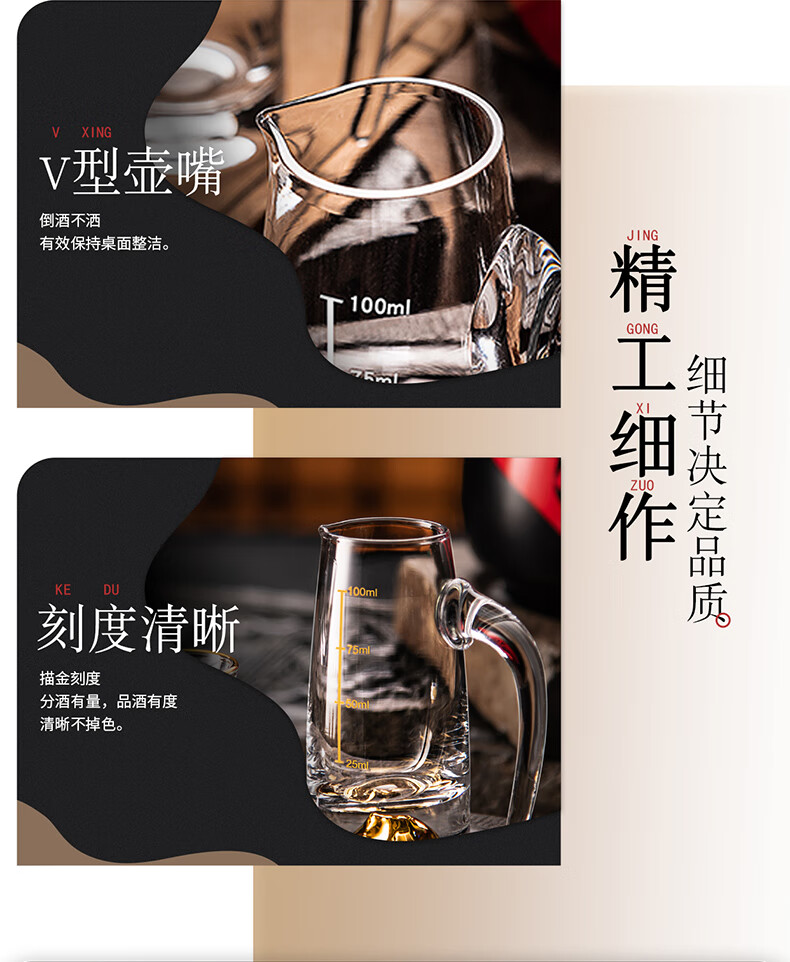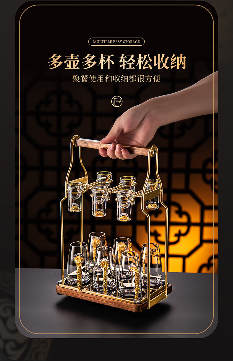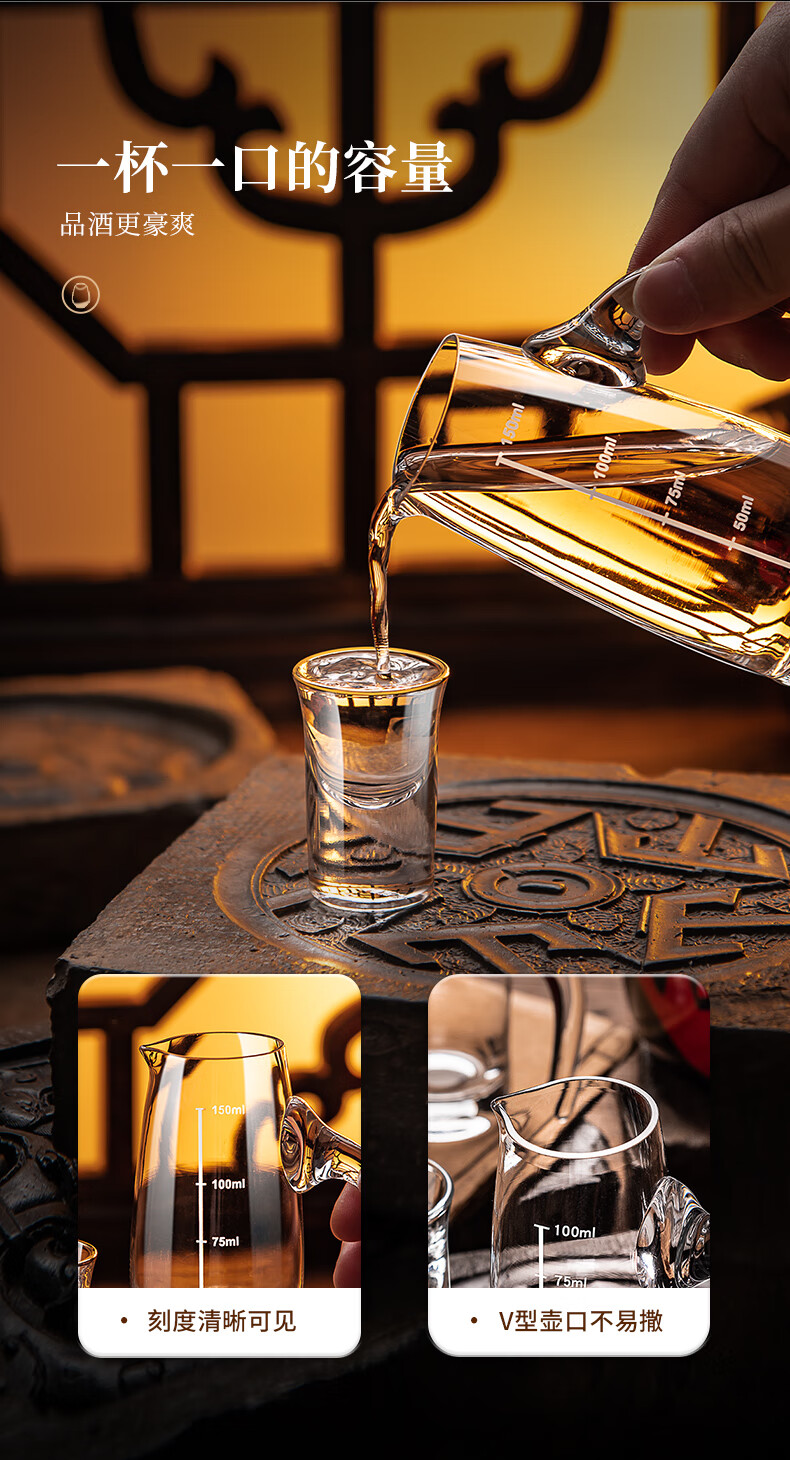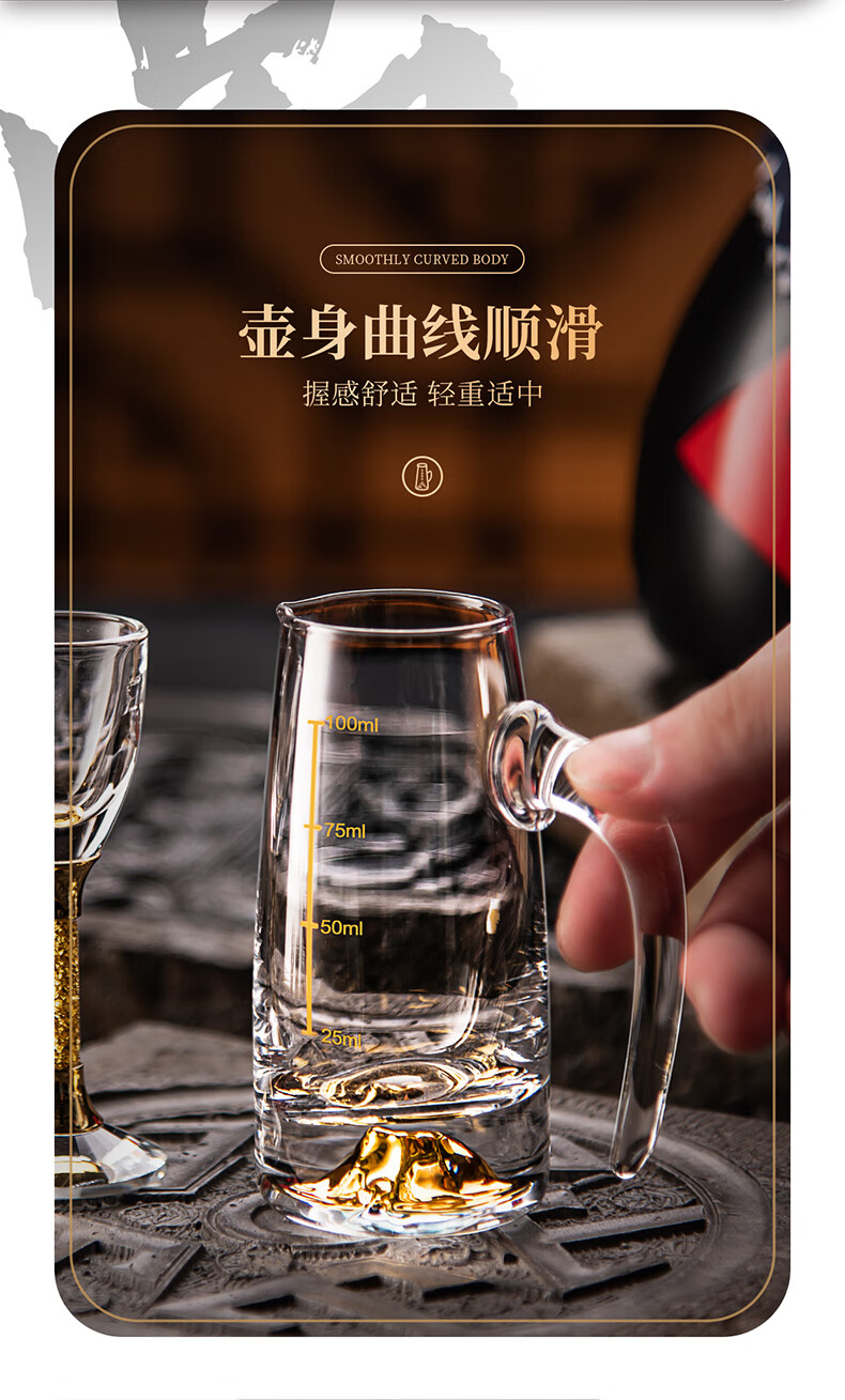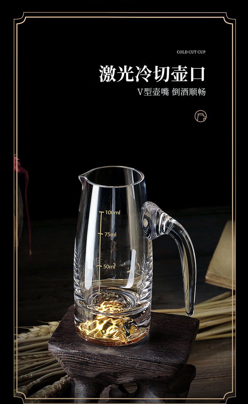 He Jiagong liquor dispenser set household crystal glass with scale pouring pot Chinese wine volume wine cold kettle fair cup dealer 12 pots 12 cups Jinshan 100 pots + Jinshan wine glasses