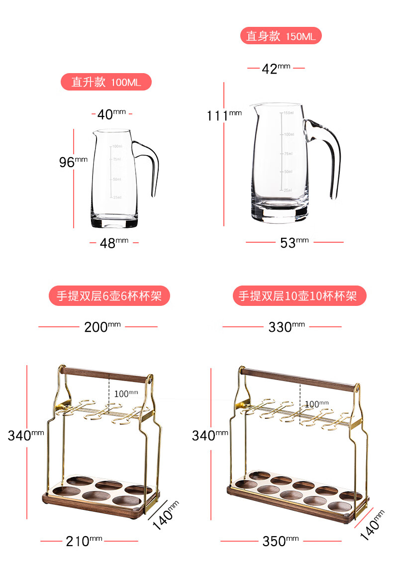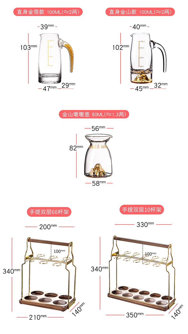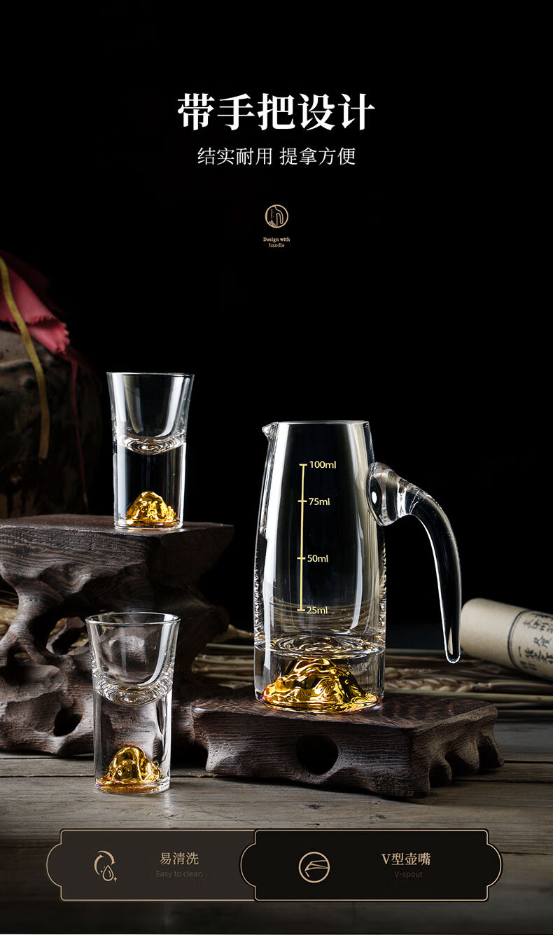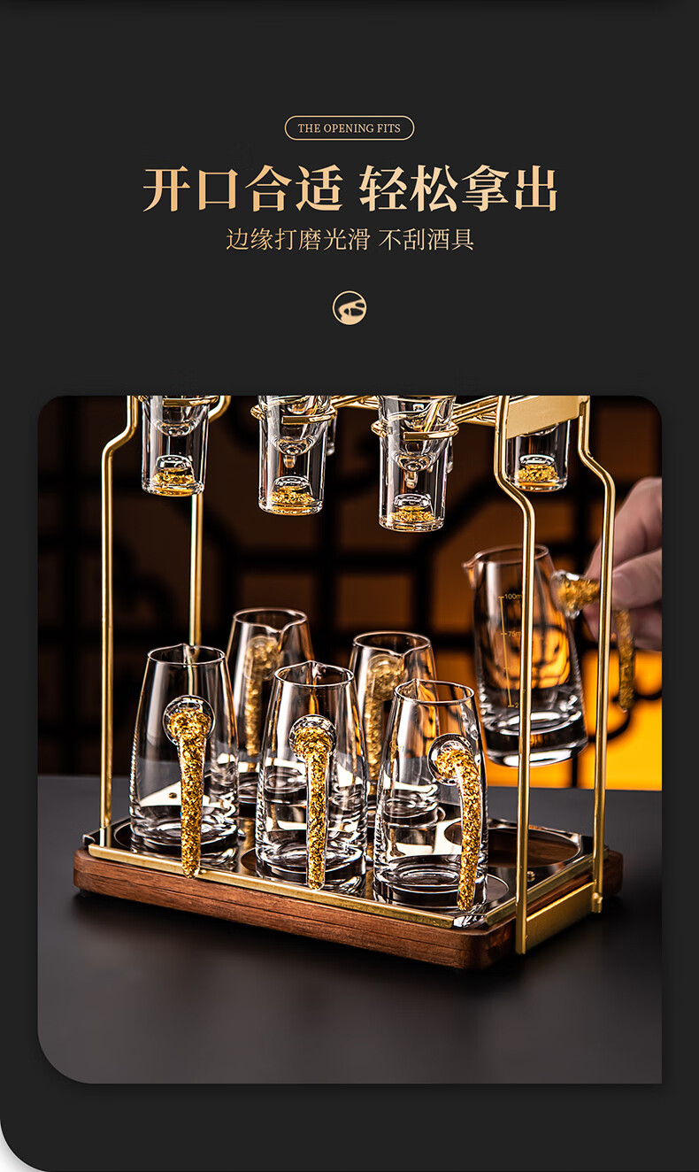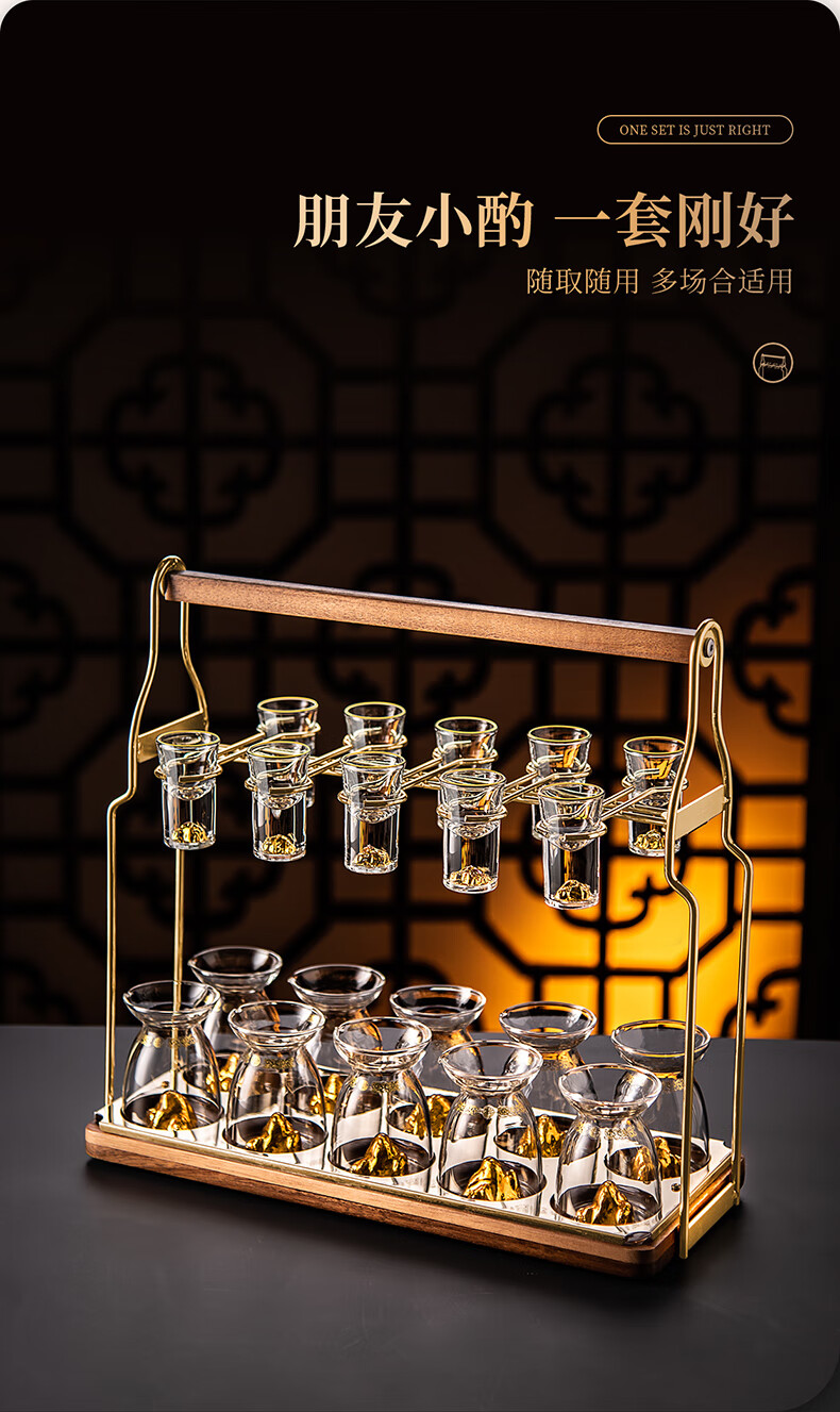 He Jiagong liquor dispenser set household crystal glass with scale pouring pot Chinese wine volume wine cold kettle fair cup dealer 12 pots 12 cups Jinshan 100 pots + Jinshan wine glasses