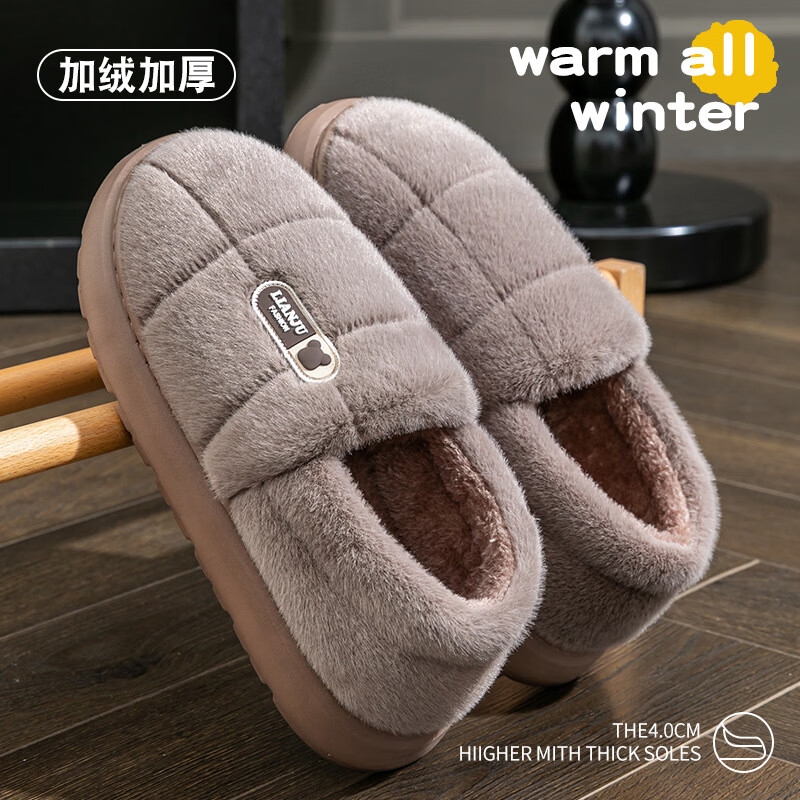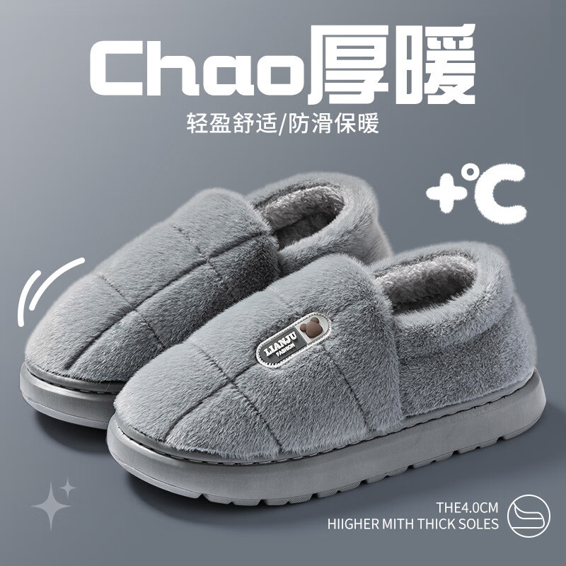 Fat Donglai's same style men's large size cotton slippers, winter non-slip outer wear, non-slip thick bottom plush warm cotton slippers 47 48 gray all-inclusive style. It is recommended to take one size larger 41-42 42-43 suitable