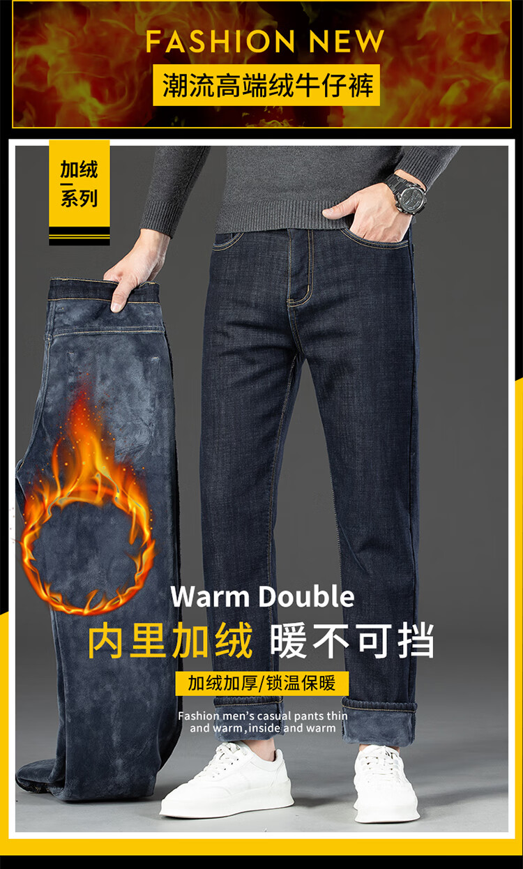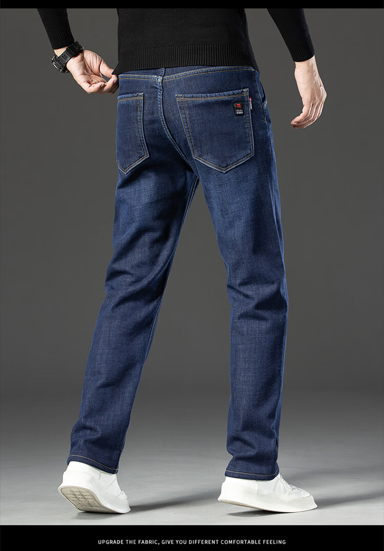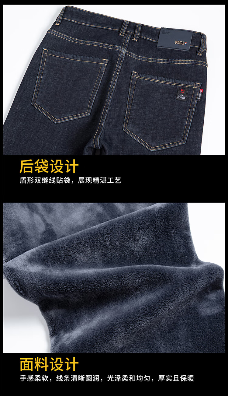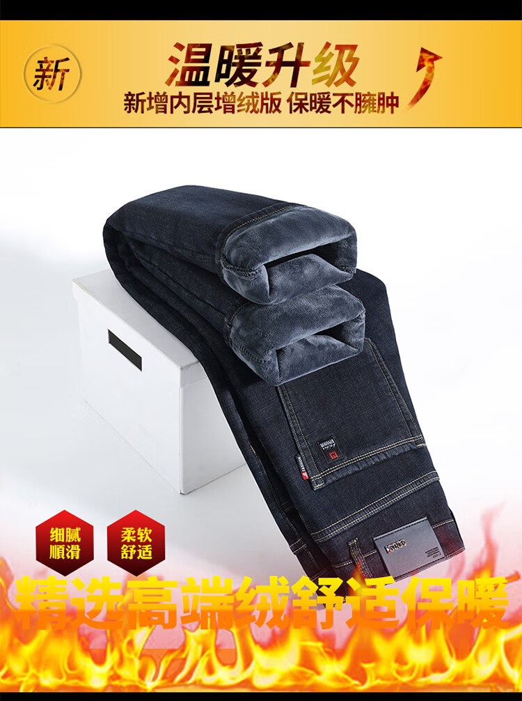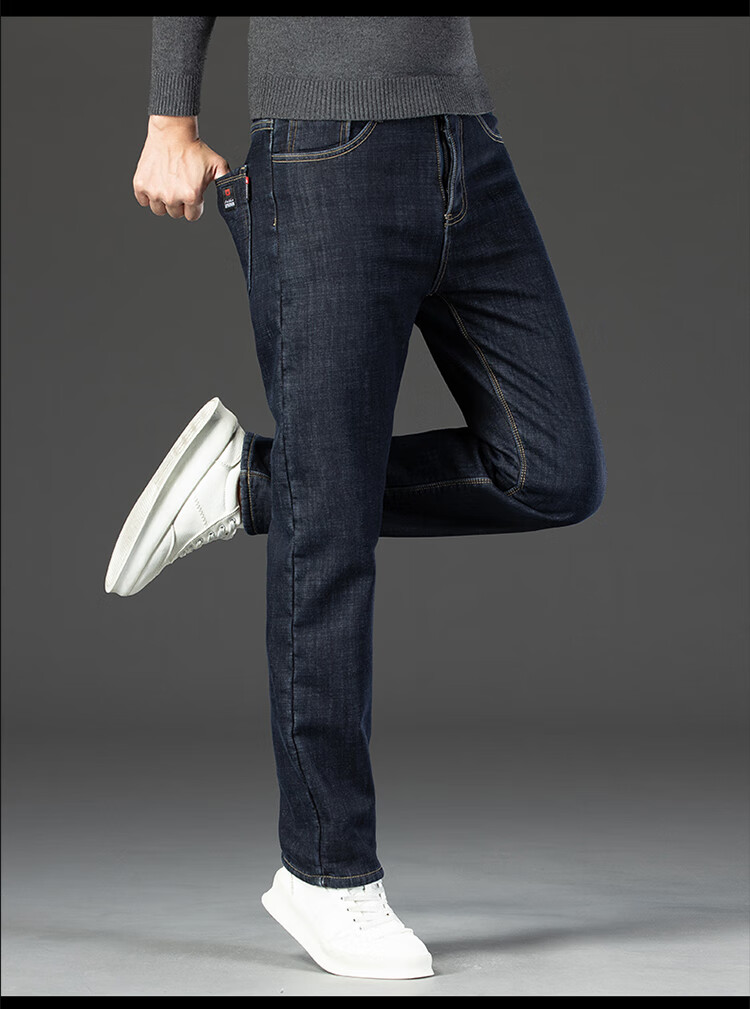 Playboy (PLAYBOY) Winter Velvet Thickened Jeans Men's Loose Straight Elastic Warm Men's Pants 2025 New Casual Pants 3399R Blue Black Velvet 32 Recommended 140-149 Jin Jin equals 0.5 kg