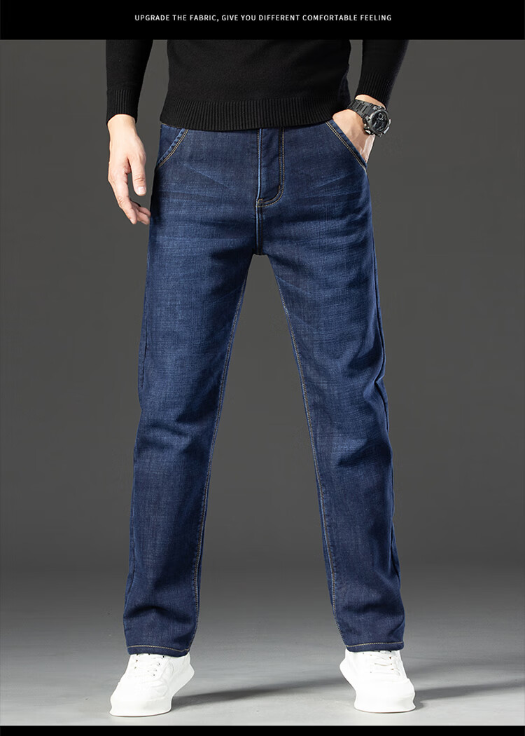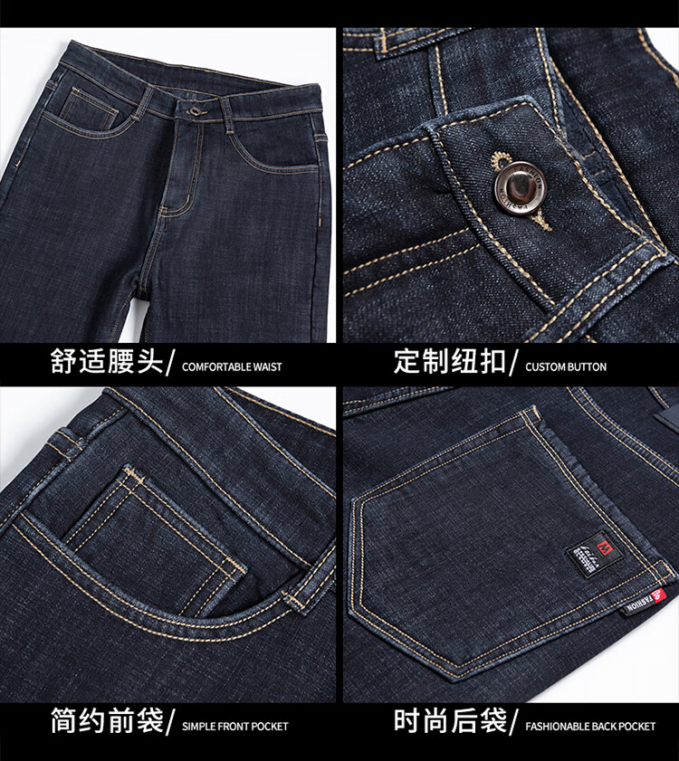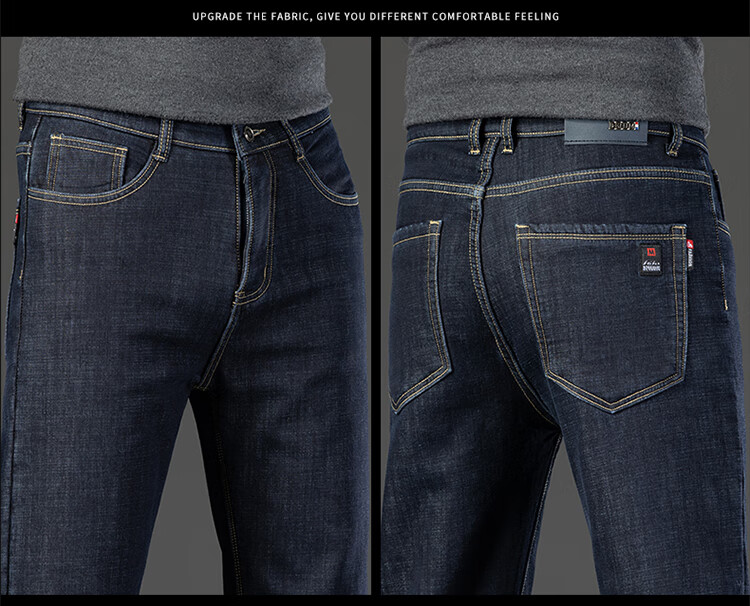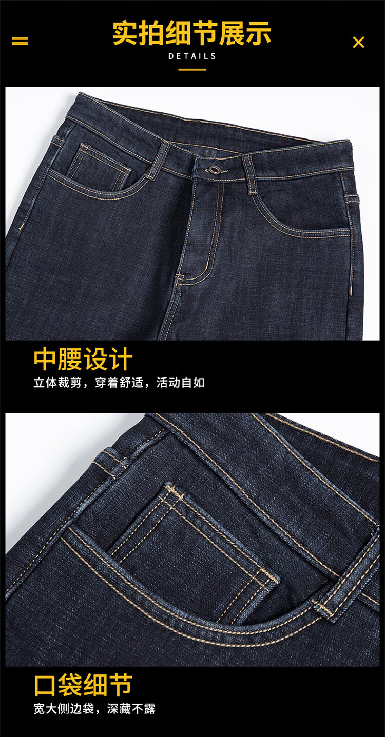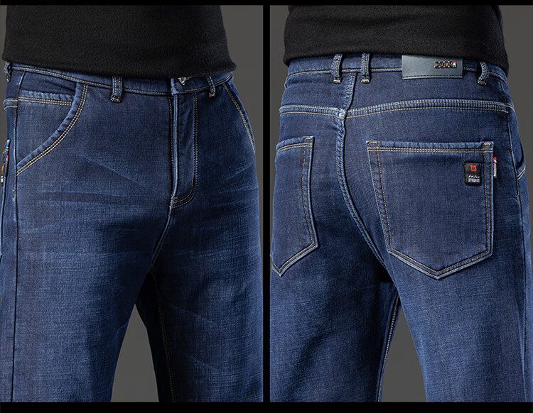 Playboy (PLAYBOY) Winter Velvet Thickened Jeans Men's Loose Straight Elastic Warm Men's Pants 2025 New Casual Pants 3399R Blue Black Velvet 32 Recommended 140-149 Jin Jin equals 0.5 kg