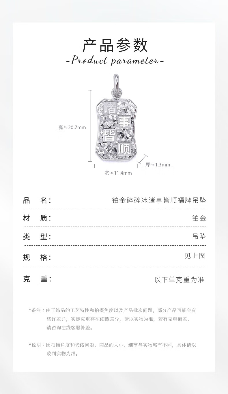 China Gold (CHINA GOLD) platinum pendant pt950 broken ice everything goes well with the brand pendant as a birthday gift for girlfriend and wife, about 5.19g