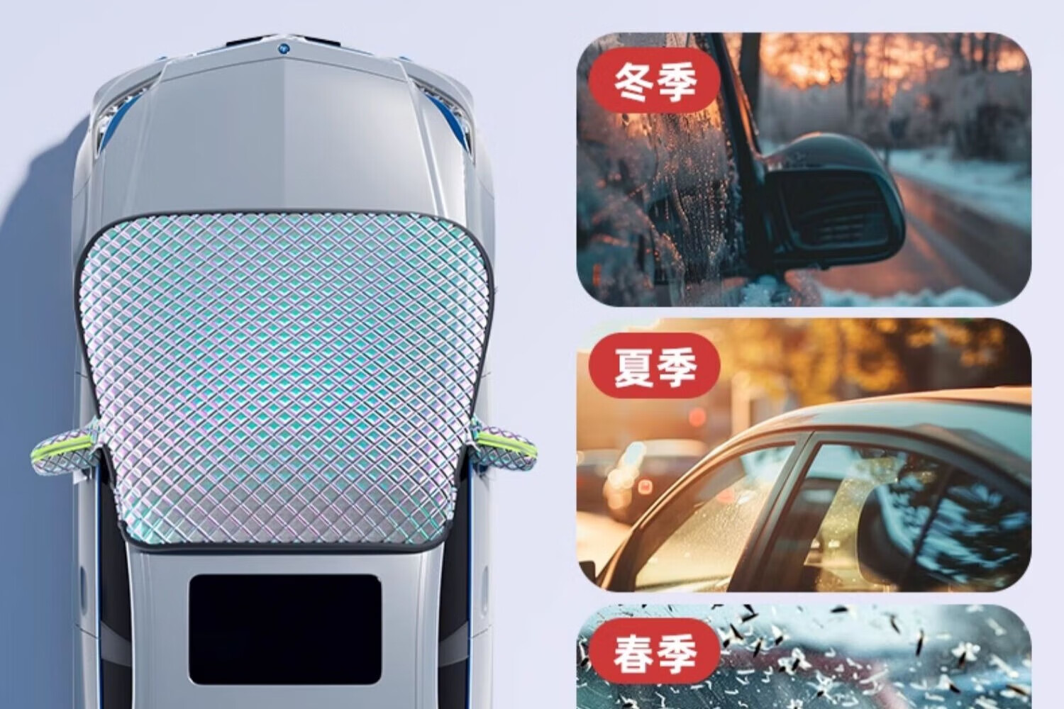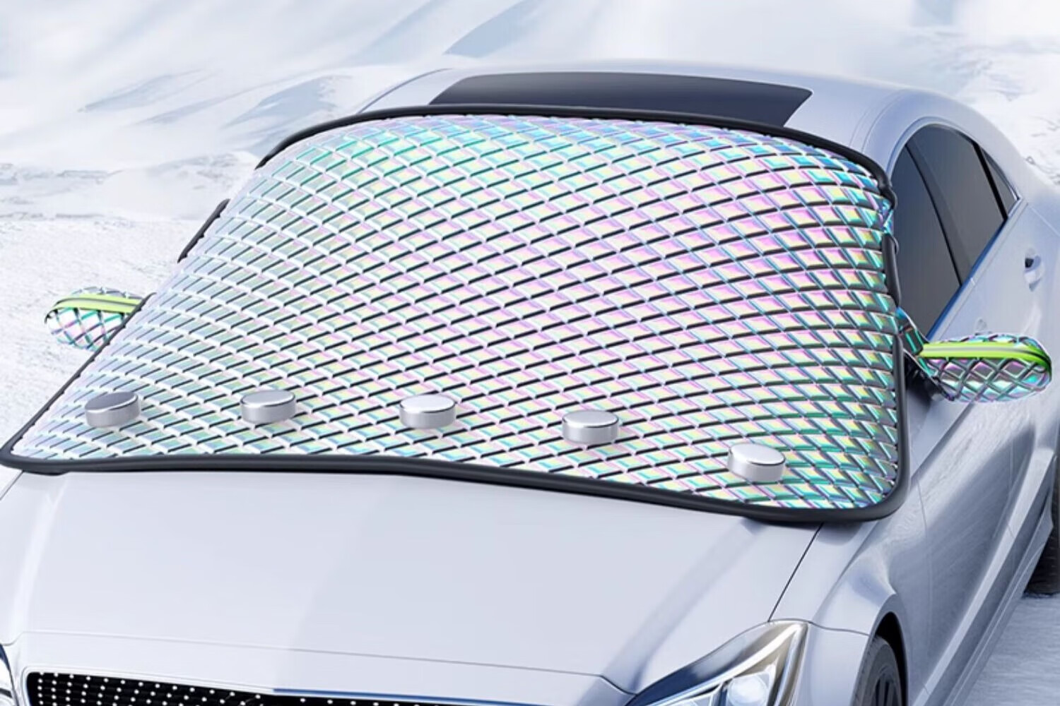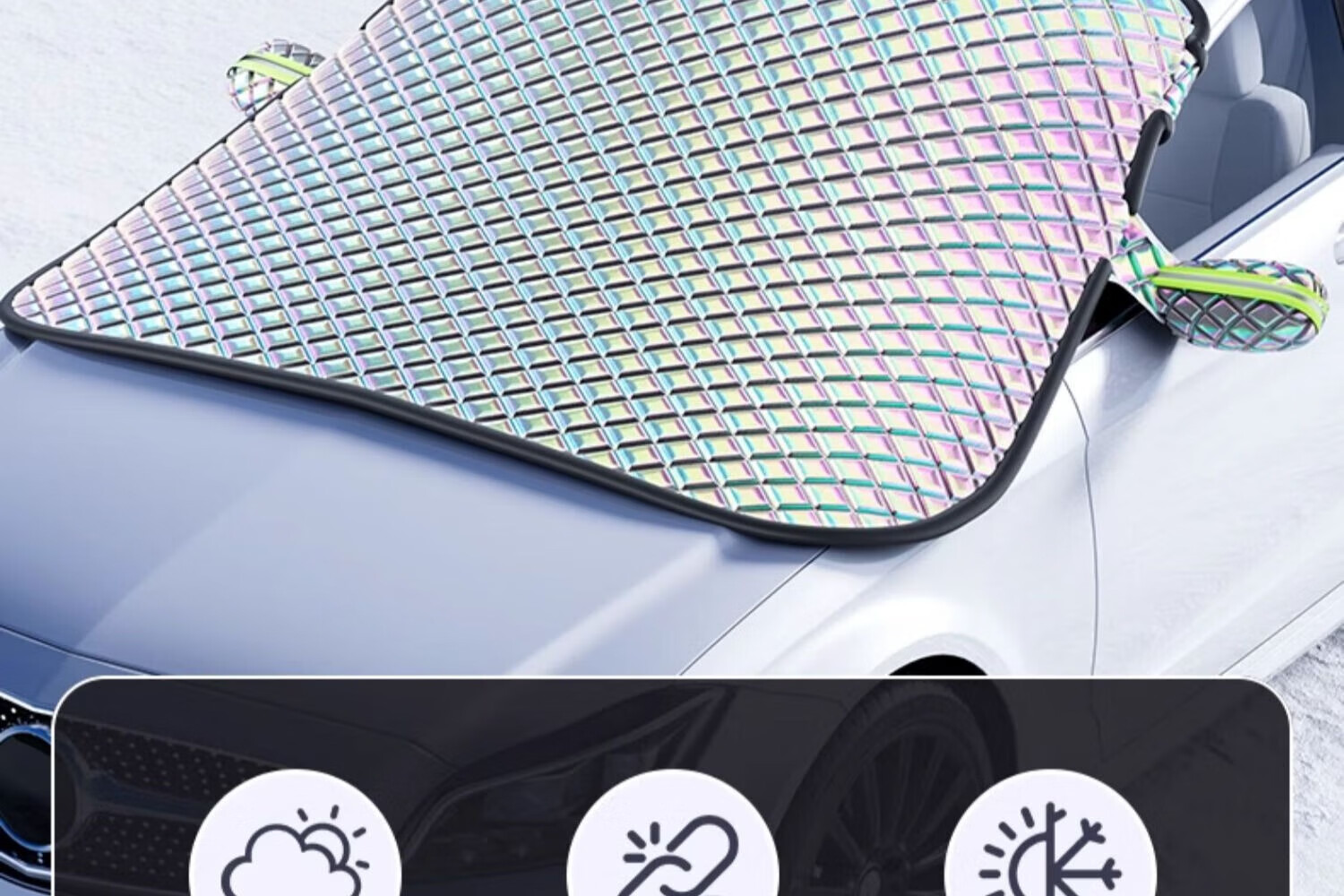 Car snow cover, front windshield, snow-proof, frost-proof and anti-freeze cover, winter car clothing, car cover, winter anti-snow and anti-freeze, 5 strong magnets + earmuffs, universal model for cars