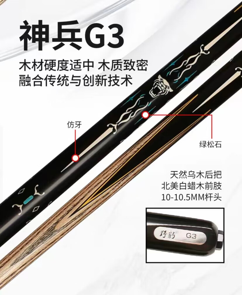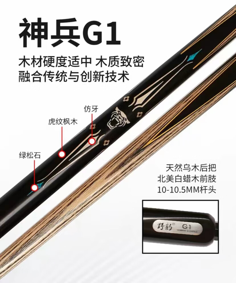 Yebao billiard cue new Shenbing G1 g2345 Shijiaban 6 Chinese black 8 American nine-ball small head through billiard cue G1 video selection does not guarantee refund