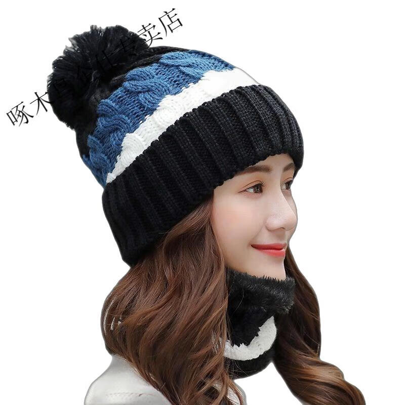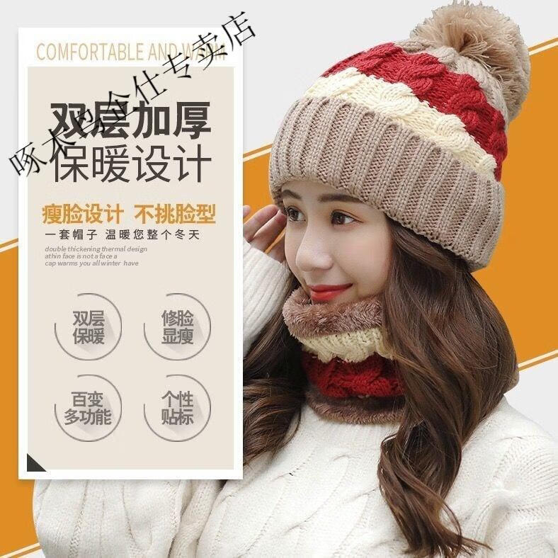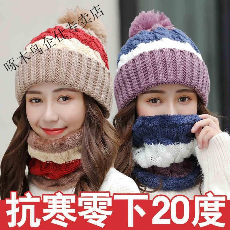 Woodpecker beautiful hat women's furry winter Korean style thickened knitted hat warm hat neck scarf windproof cycling ear protection woolen hat ++ acridine pink-single hat one size