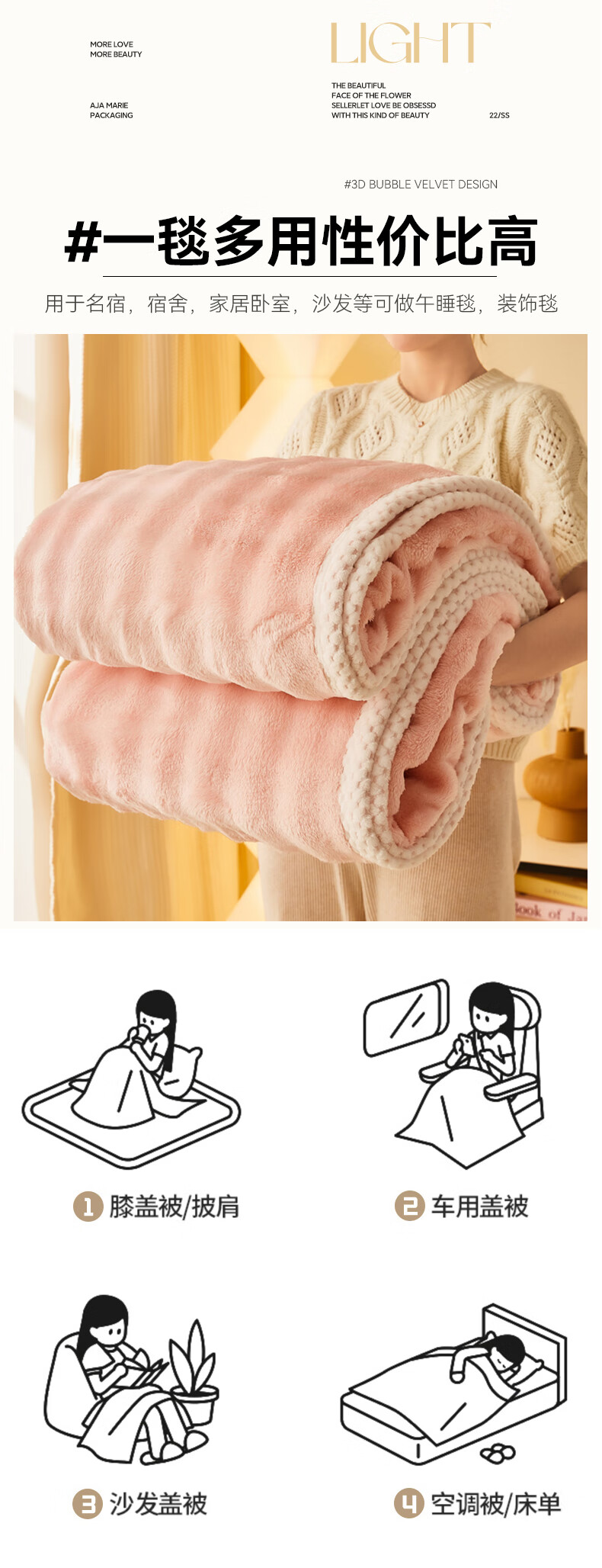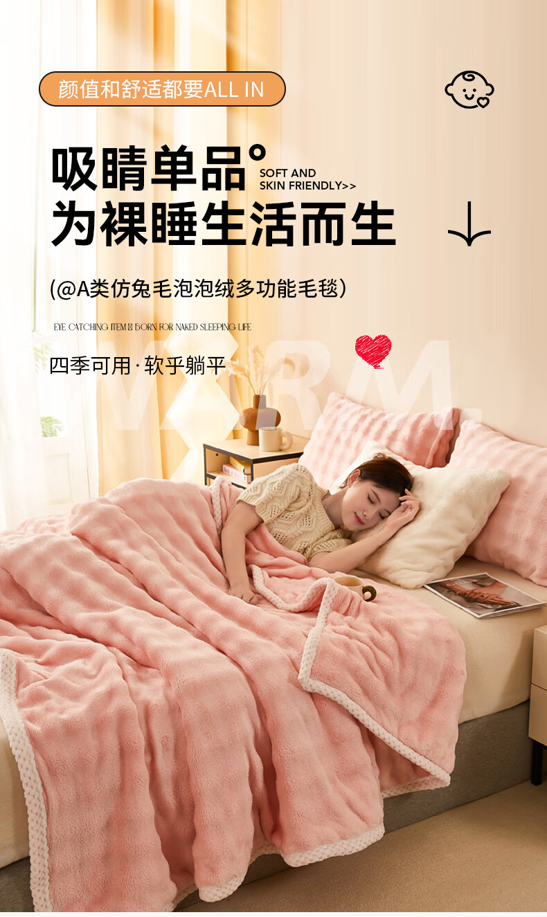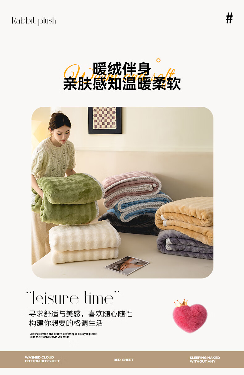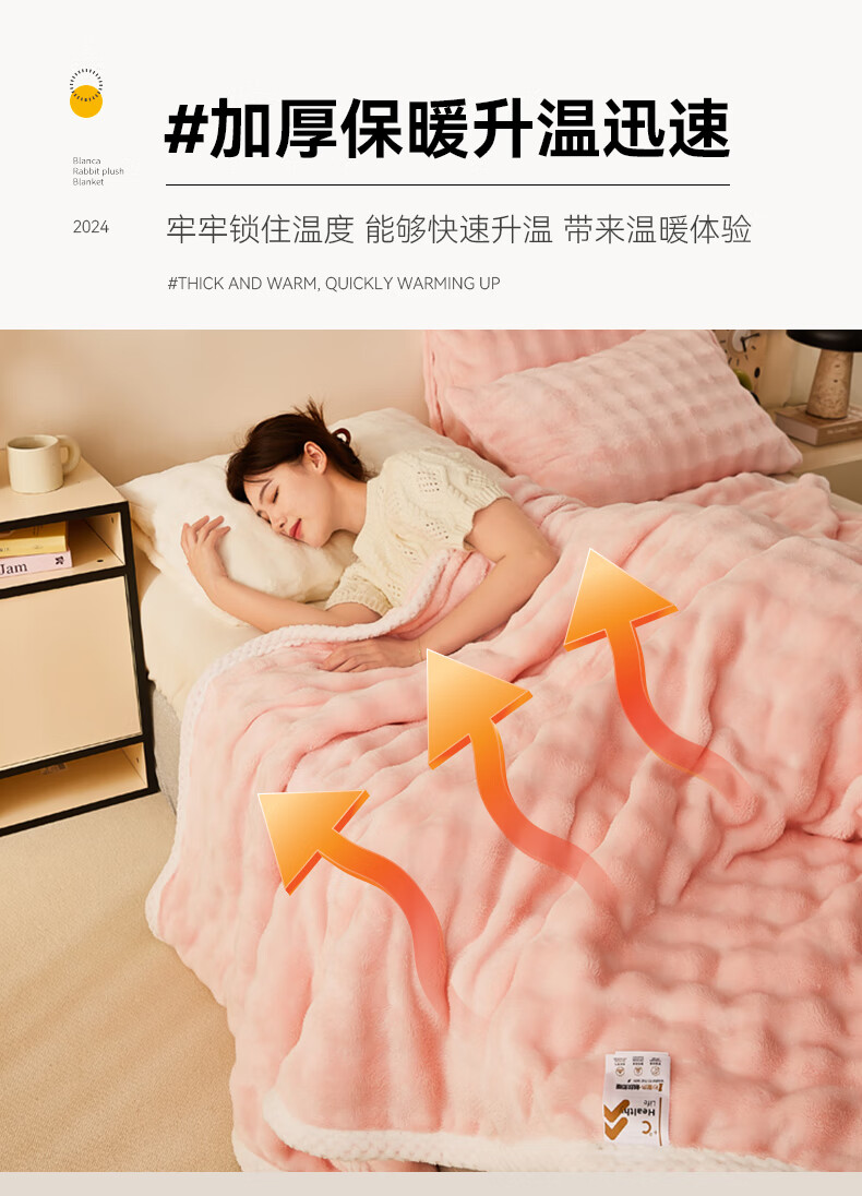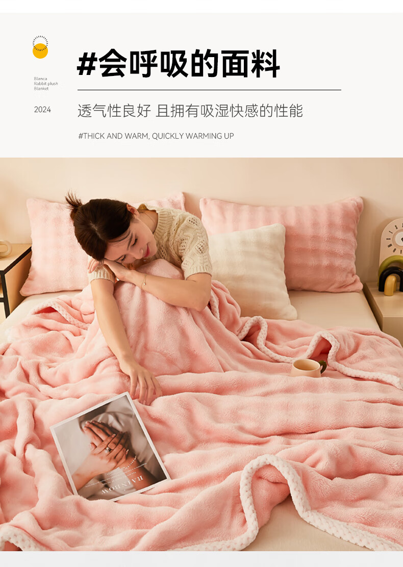 MUJI Class A rabbit fur coral fleece blanket nap blanket winter thickened sofa blanket dormitory bed baby blanket off-white Class A maternal and infant grade thickened rabbit plush 150x200cm soft and skin-friendly heat storage and temperature lock