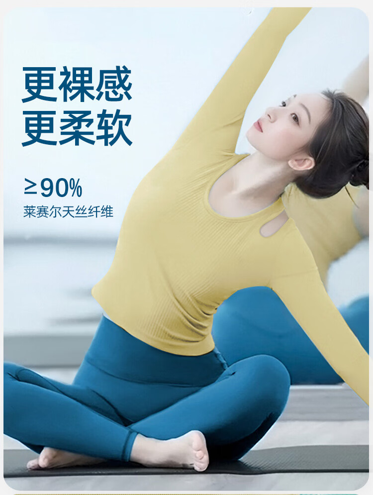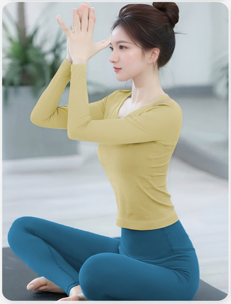 Double Show 2025 Super Hot Yoga Wear Suit Autumn and Winter with Padded Dopamine Long Sleeve Top Pilates Stunning Fitness Wear for Women Wutong Green Long Sleeve + Haiyueyan Pants L 110-120