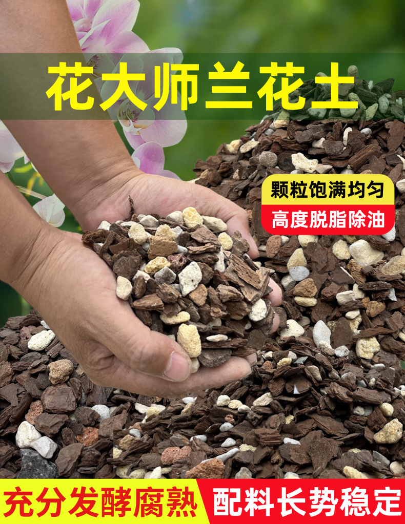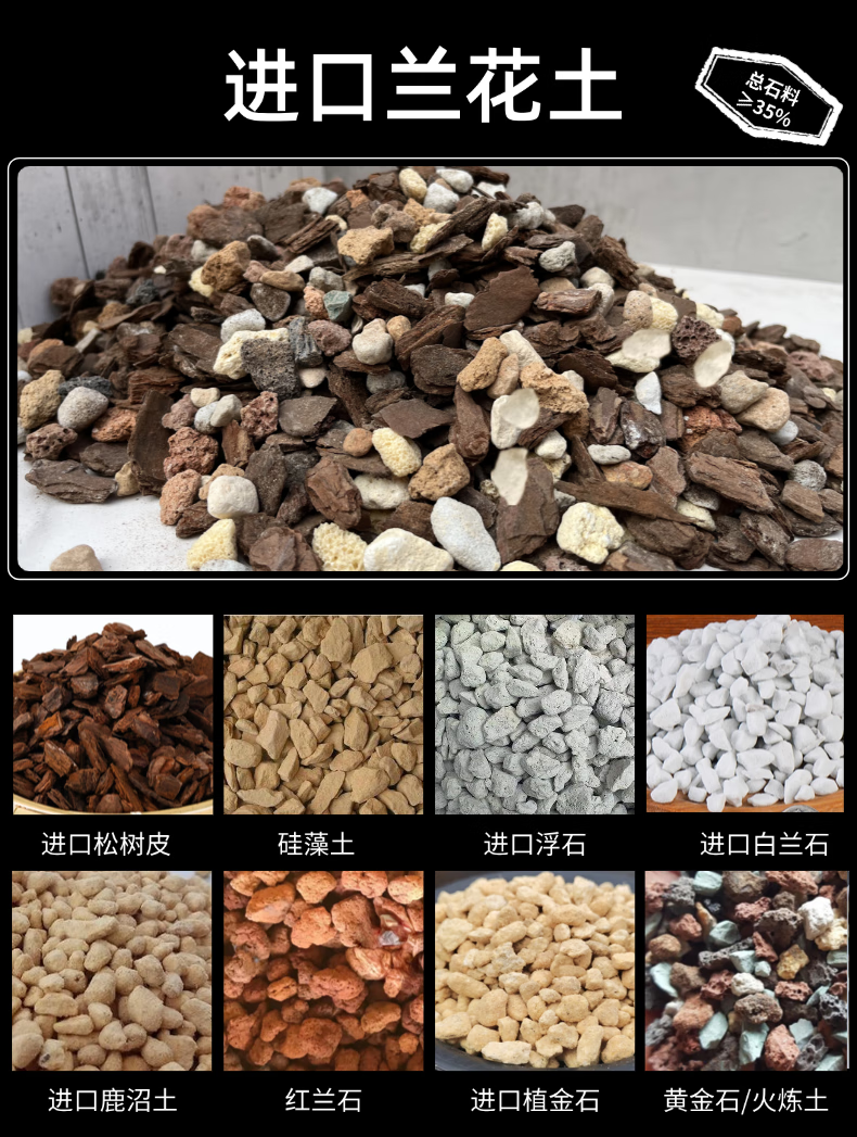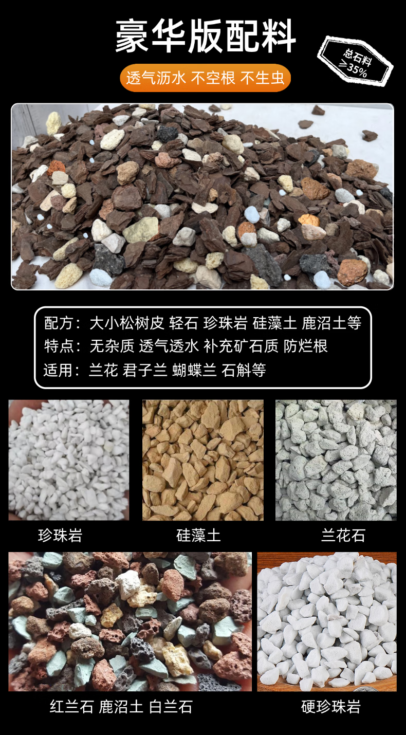 Flower Master special soil for orchids, phalaenopsis orchid, special flower soil for nutrition, orchid planting material, pine bark particles, breathable, deluxe version 16 liters, 10 in 1 selected stones, 6 gifts