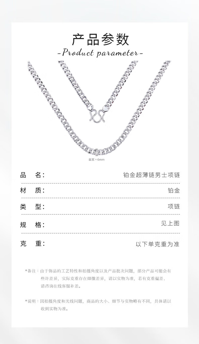 Beijing Gold Trading Center Co., Ltd. Platinum Necklace Ultra-Thin Chain Men's Necklace as a Gift for Your Girlfriend, About 60.88g
