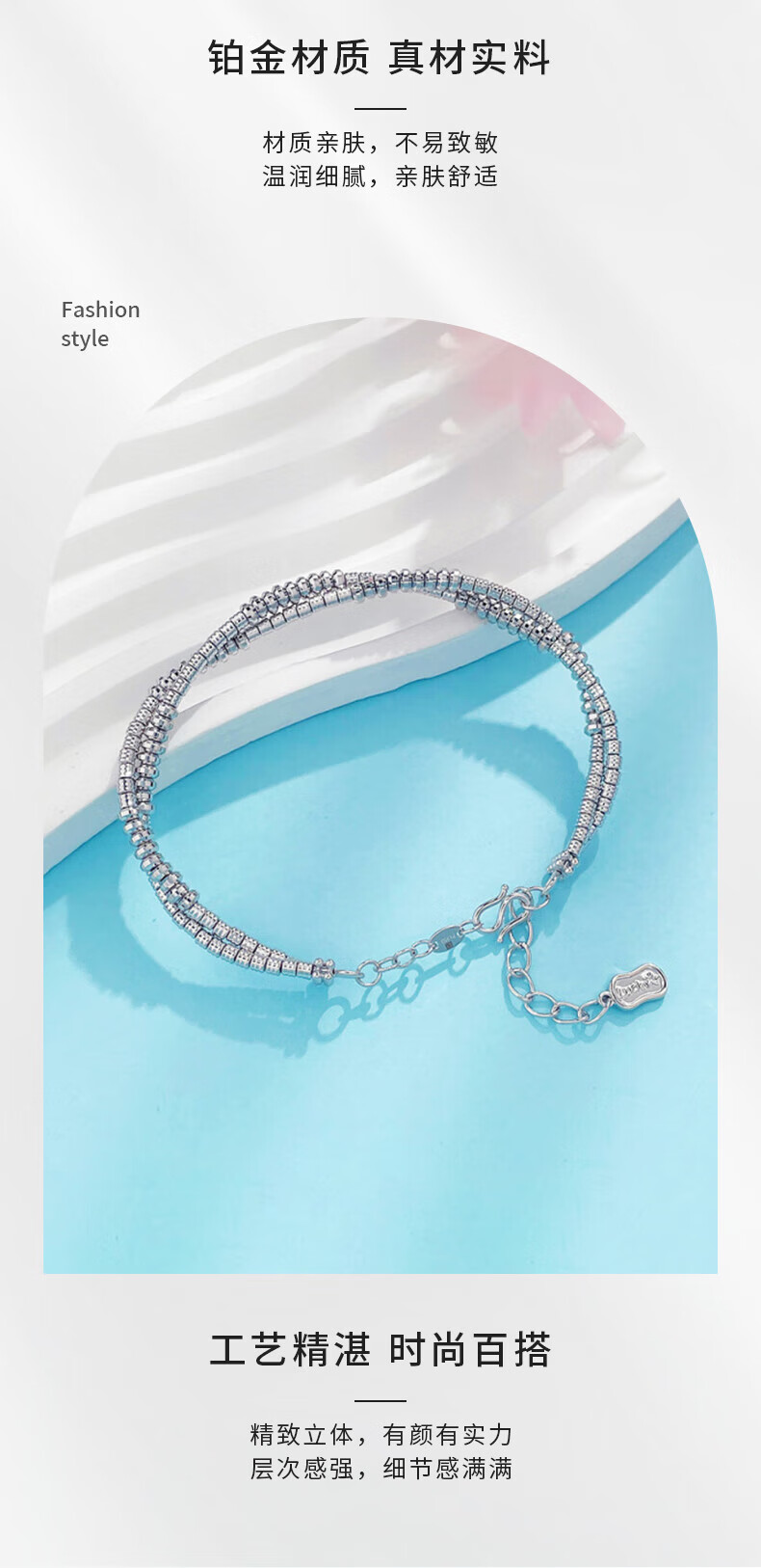 Beijing Gold Trading Center Co., Ltd. Platinum Bracelet Double-layer Twisted Gold Bead Twist Bracelet as a gift for your girlfriend as a gift, about 17.85g
