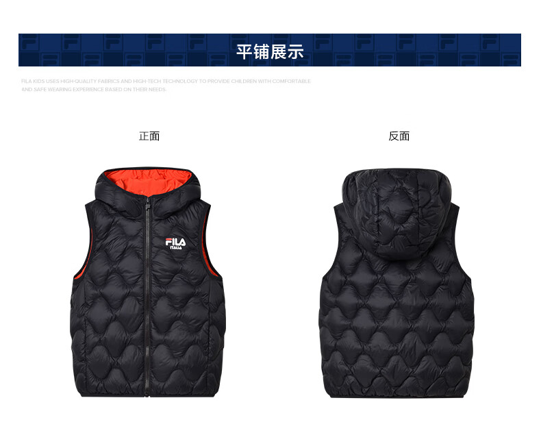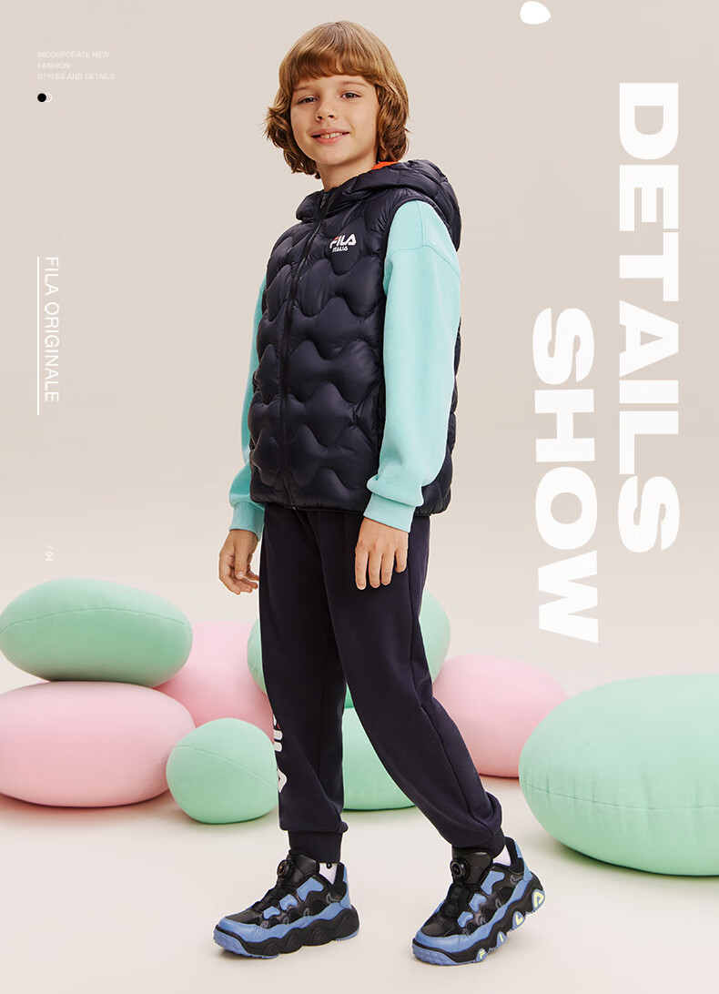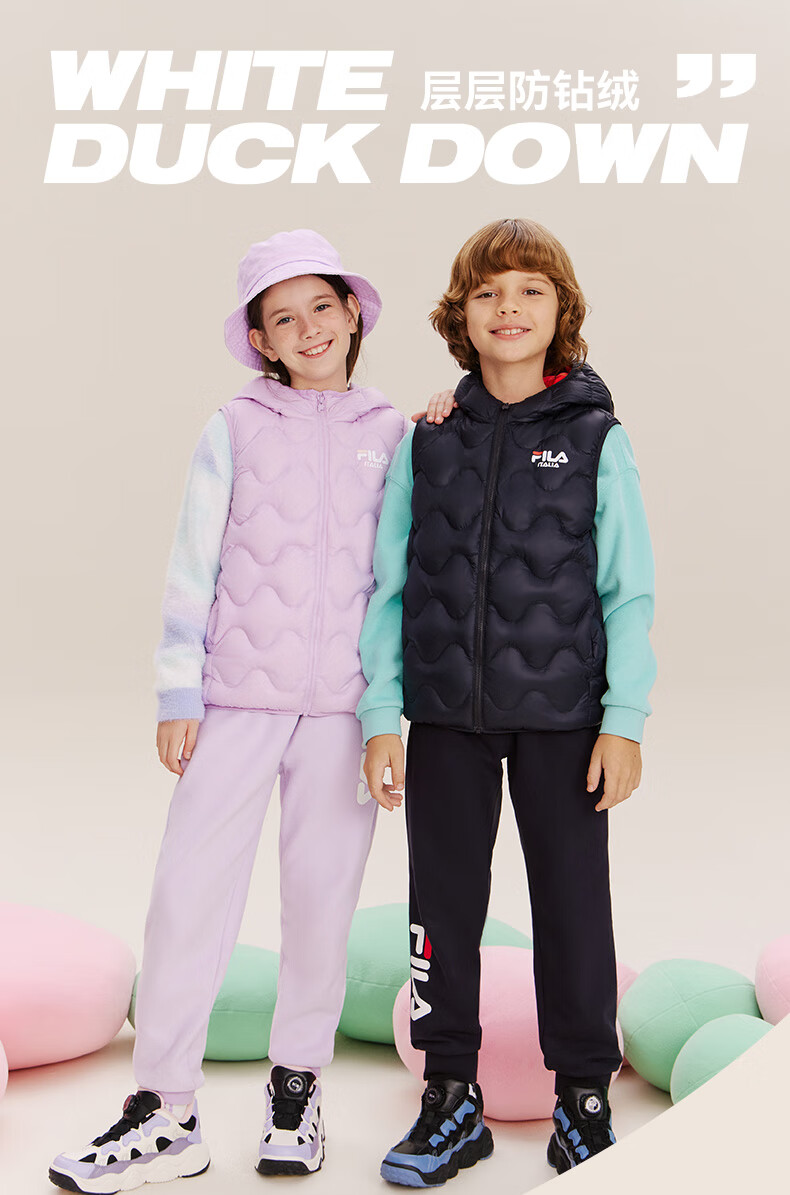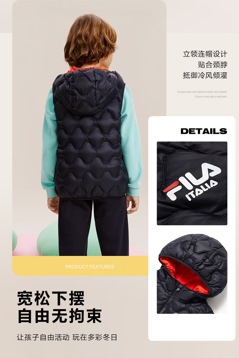FILA Children's Clothing Children's Lightweight Down Jacket Autumn and Winter Style Men's and Women's Fashion Jacket Down Vest Vest Official Flagship Legend Blue-QNV M 120c