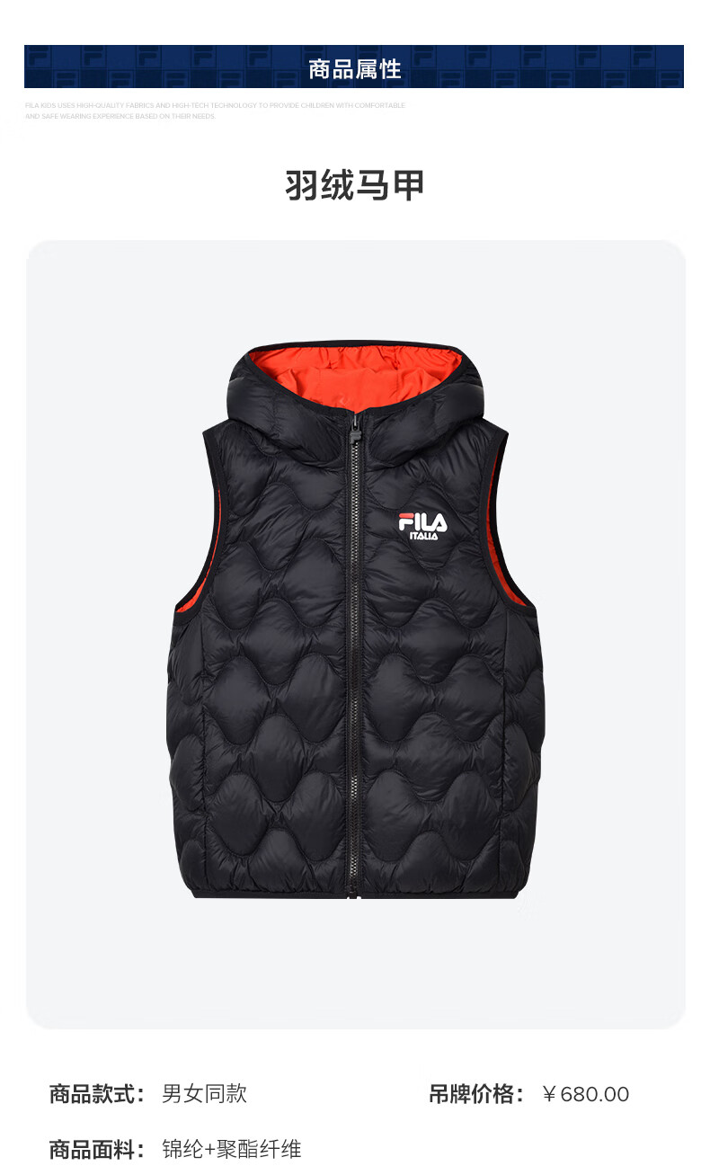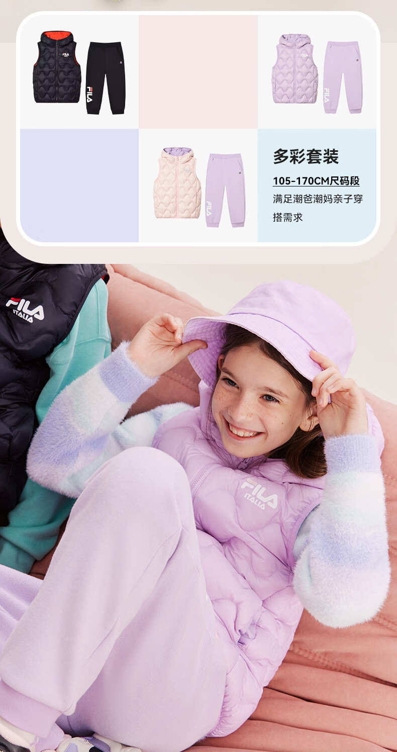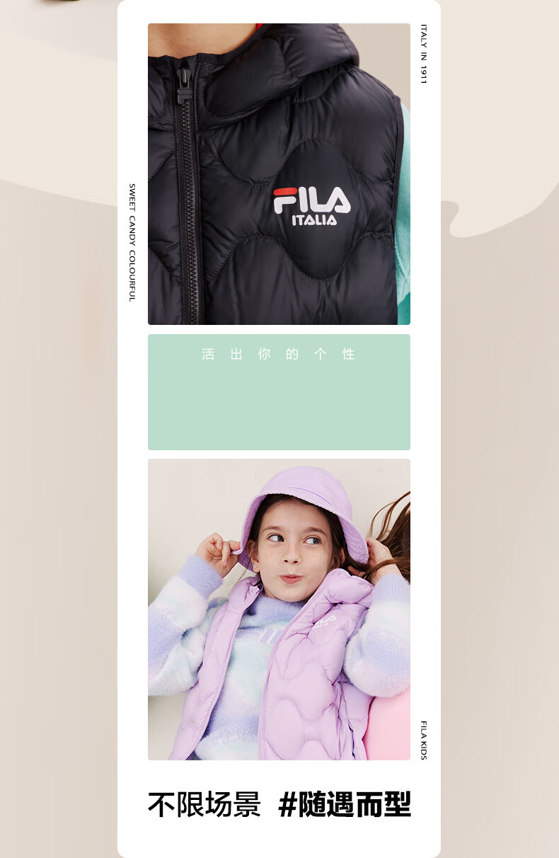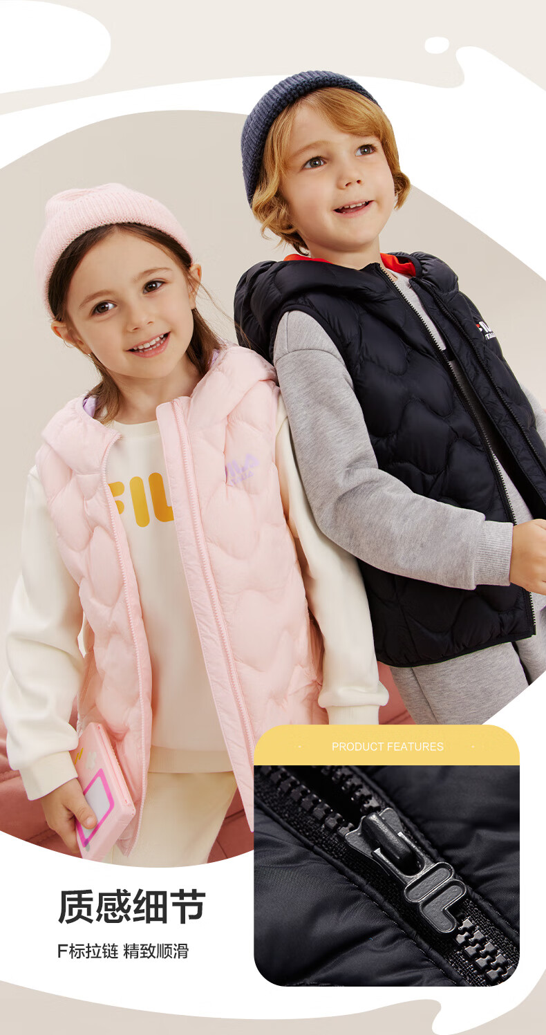 FILA Children's Clothing Children's Lightweight Down Jacket Autumn and Winter Style Men's and Women's Fashion Jacket Down Vest Vest Official Flagship Legend Blue-QNV M 120c