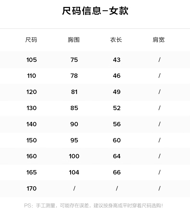China (cm) 160-165/84-86 165-170 / 88-90 167-172 / 92-96 168-173 / 98-102 170-176 / 106-110