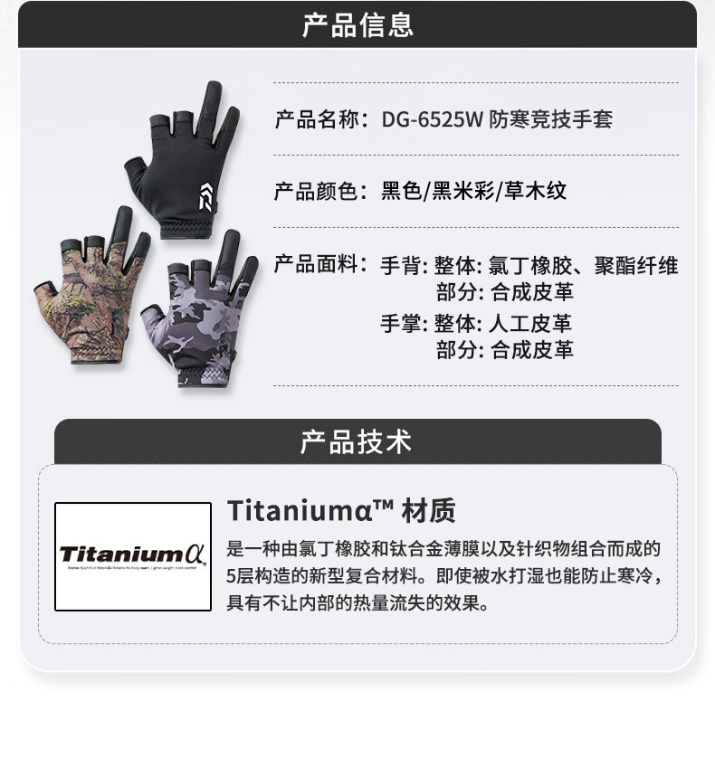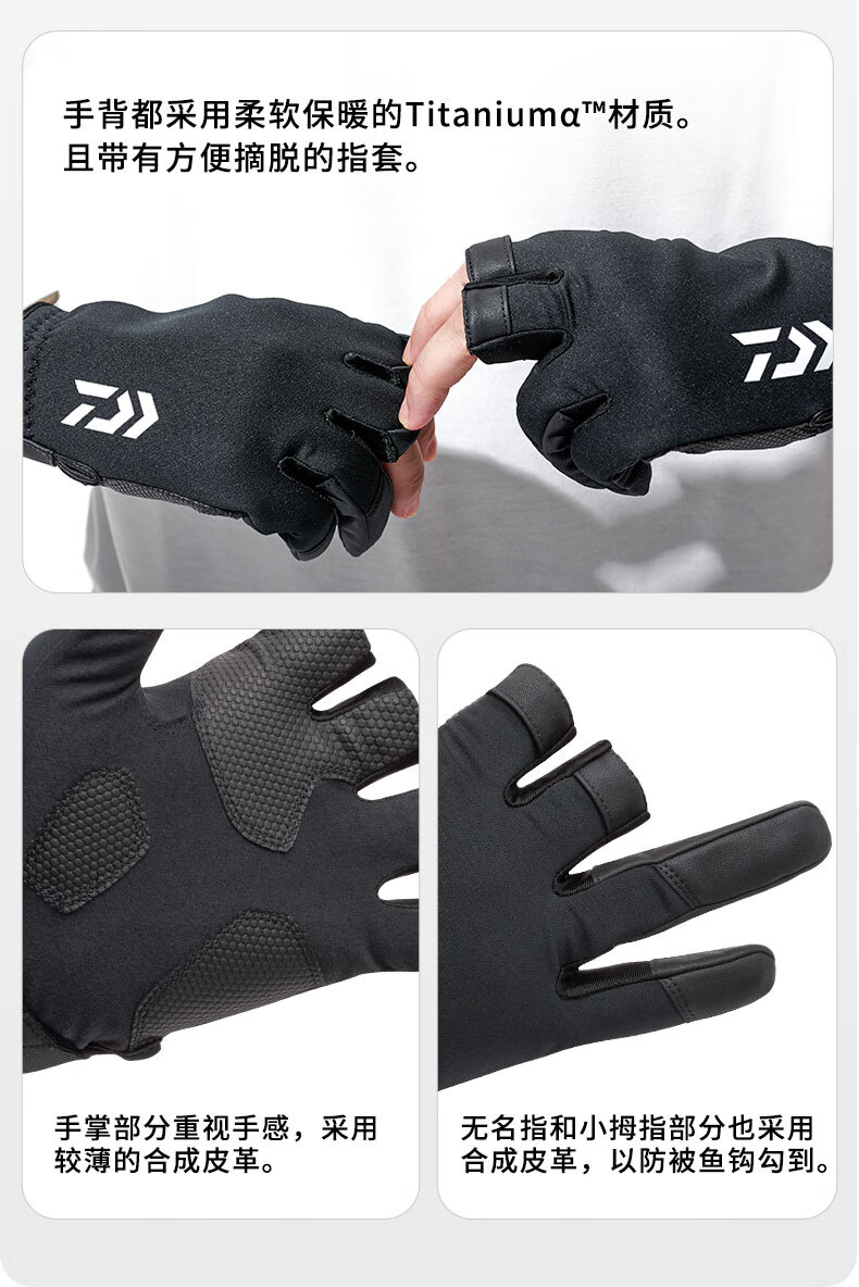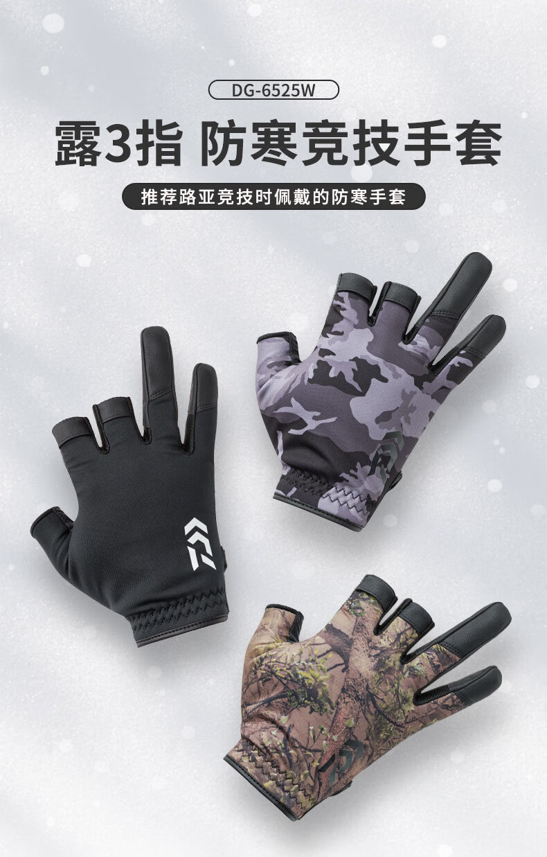 DAIWA 25 autumn and winter DG-6525W exposed 3-finger cold-proof lure racing gloves, warm fishing gloves, black rice color XL