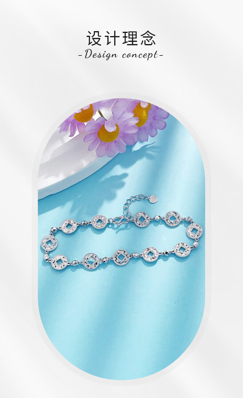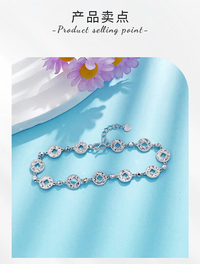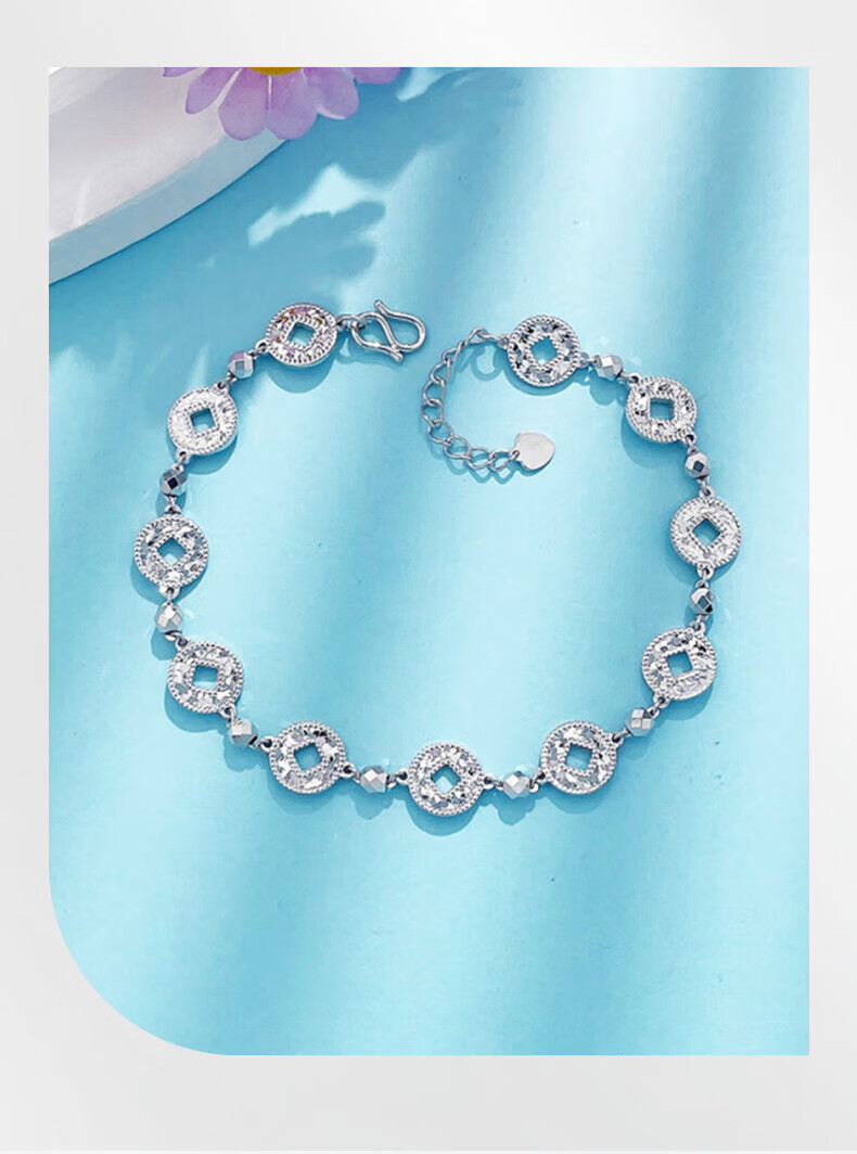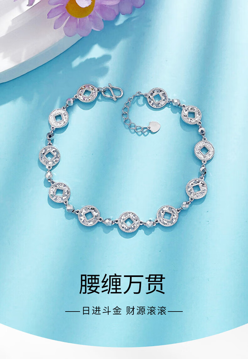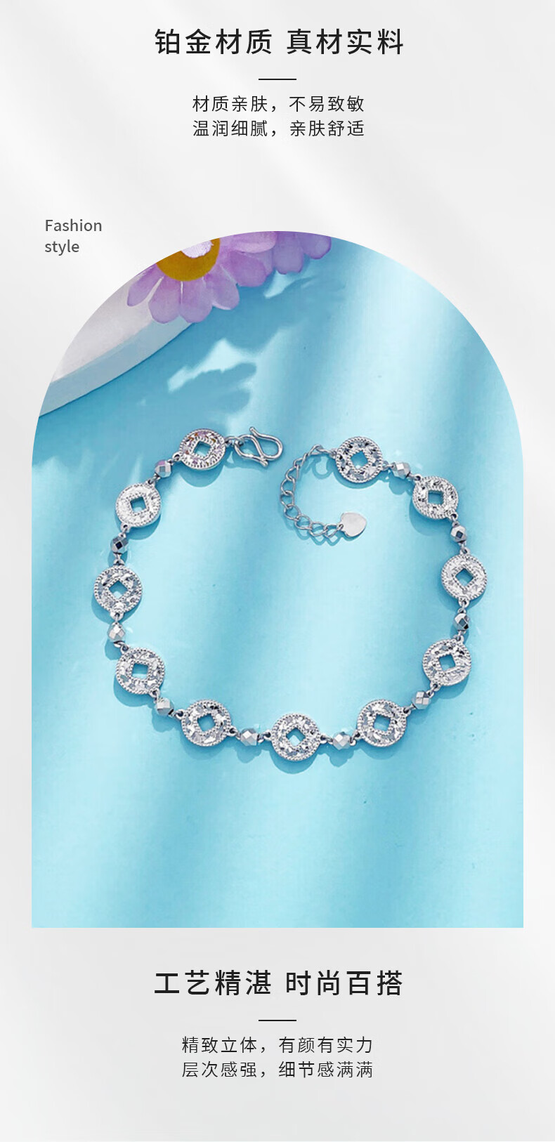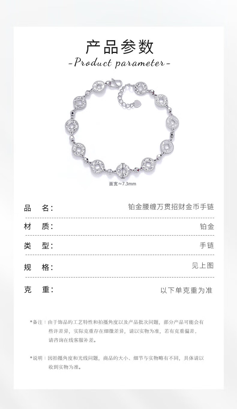 Beijing Gold Trading Center Co., Ltd. Platinum Solid Adjustable Waist Band Wan Guan Copper Coin Shape Lucky Gold Coin Hand Mother Lover Birthday Mid-Autumn Festival Gift Platinum Waist Band Wan Guan Gold Coin Bracelet (approximately 9.87g)
