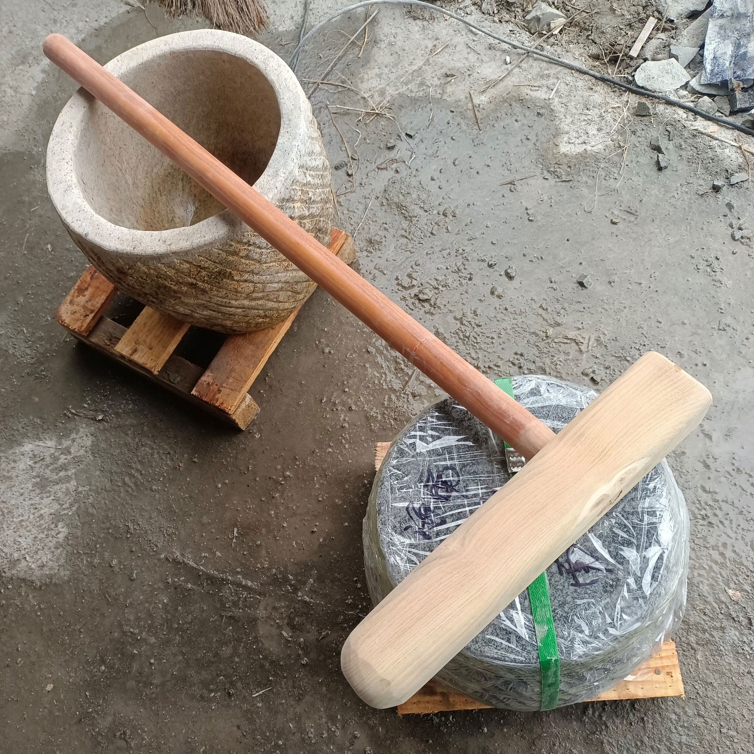 Natural solid wood hammer for making glutinous rice cakes and rice cakes. Wooden pestle, stone mortar, stone nest, wooden hammer. Large round-headed wooden hammer can be customized. Medium-sized straight-shaped wooden hammer with diameter 7cm.