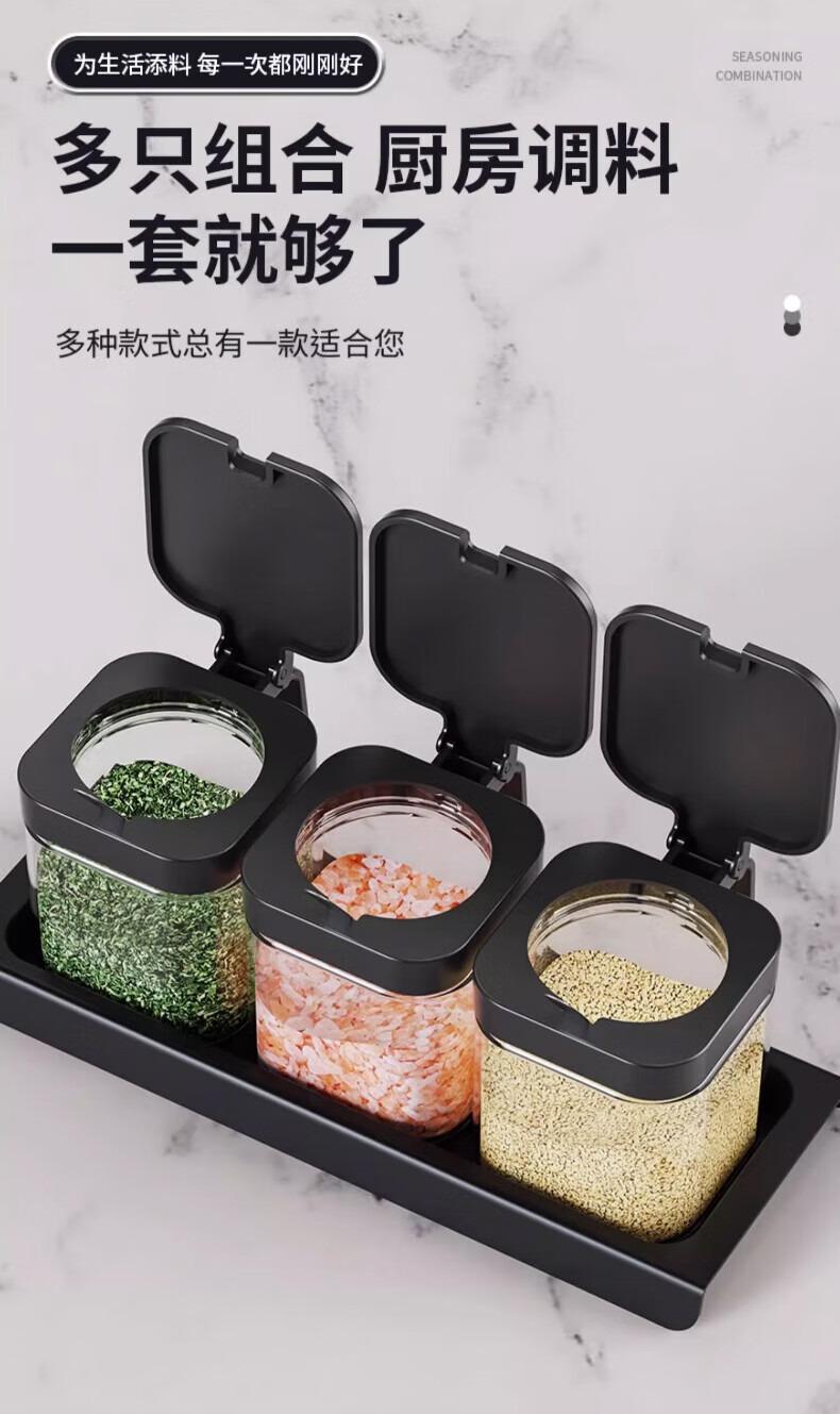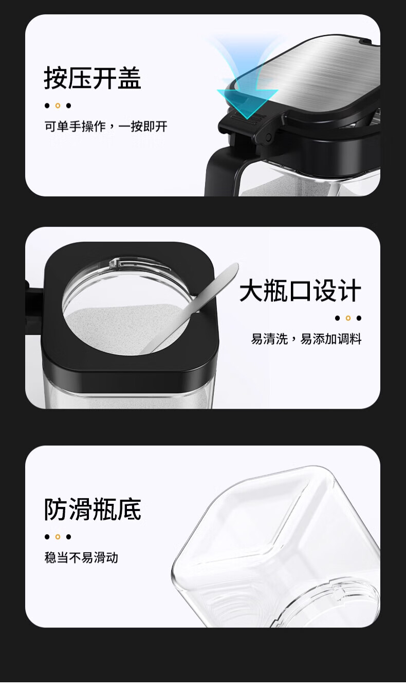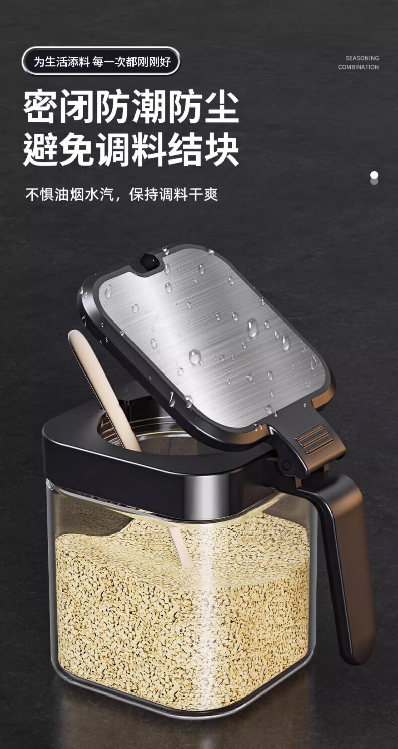 Sungsa Japanese moisture-proof seasoning jar sealed salt jar seasoning box glass home kitchen high-end seasoning jar seasoning jar seasoning jar * 3 free stainless steel spoon + waterproof sticker