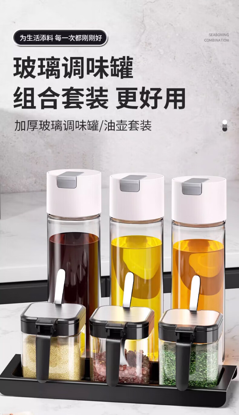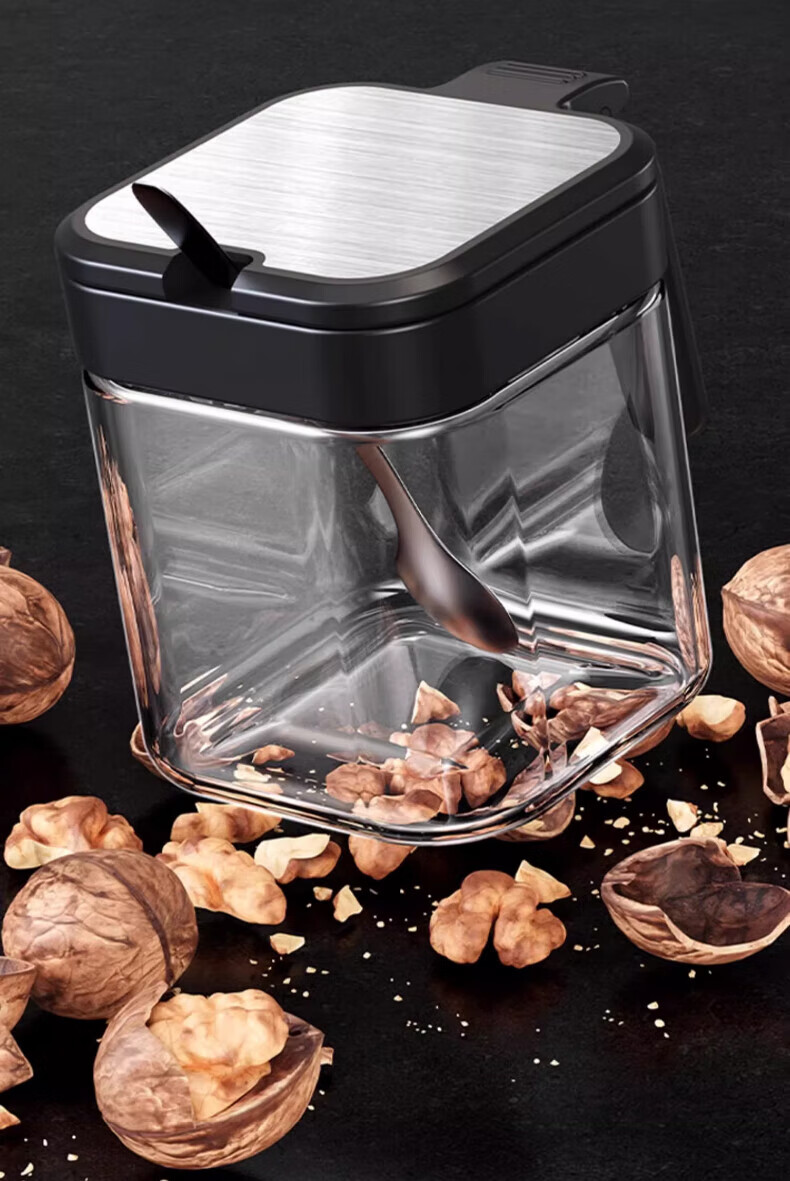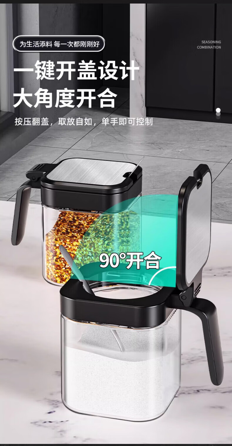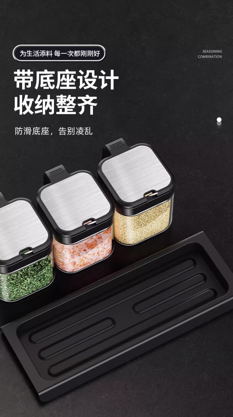 Sungsa Japanese moisture-proof seasoning jar sealed salt jar seasoning box glass home kitchen high-end seasoning jar seasoning jar seasoning jar * 3 free stainless steel spoon + waterproof sticker