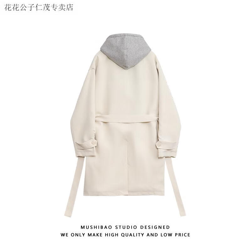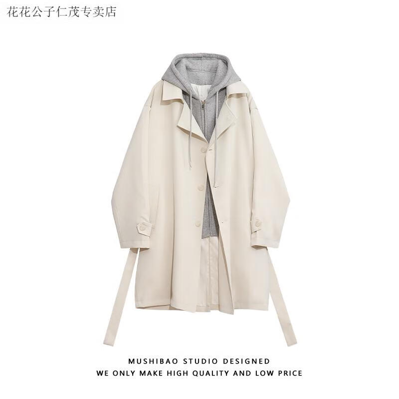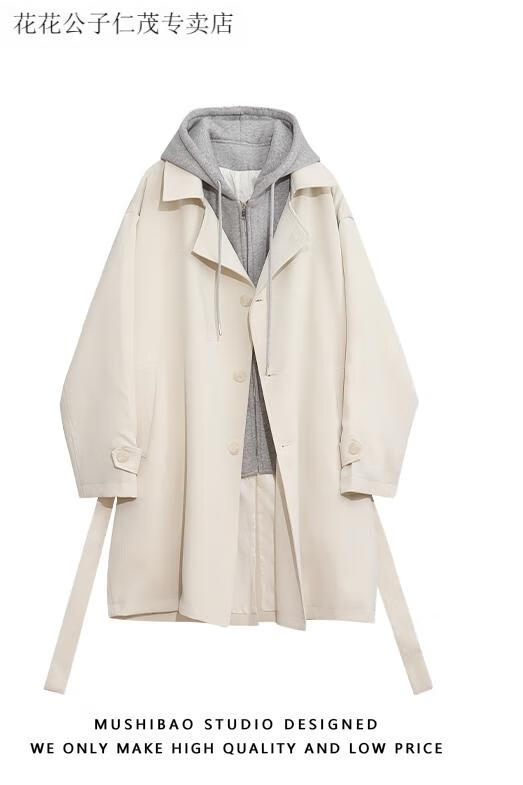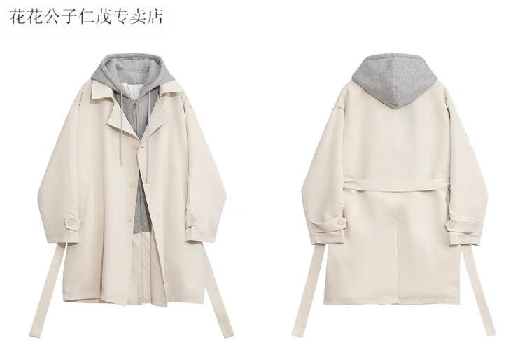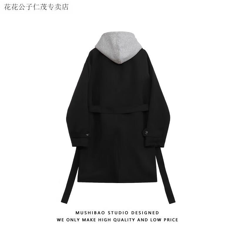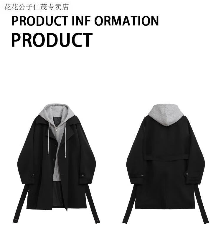 Playboy (PLAYBOY) windbreaker men's spring and autumn holiday two-piece hooded mid-length over-the-knee coat cityboy Korean casual trendy coat black L