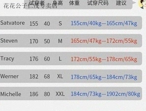 China (cm) 160-165/84-86 165-170 / 88-90 167-172 / 92-96 168-173 / 98-102 170-176 / 106-110