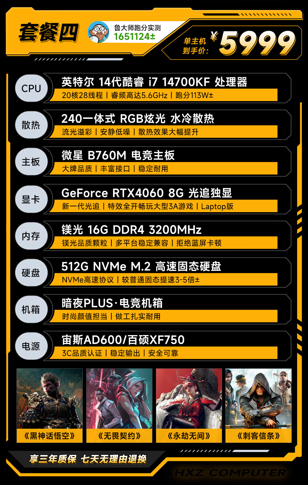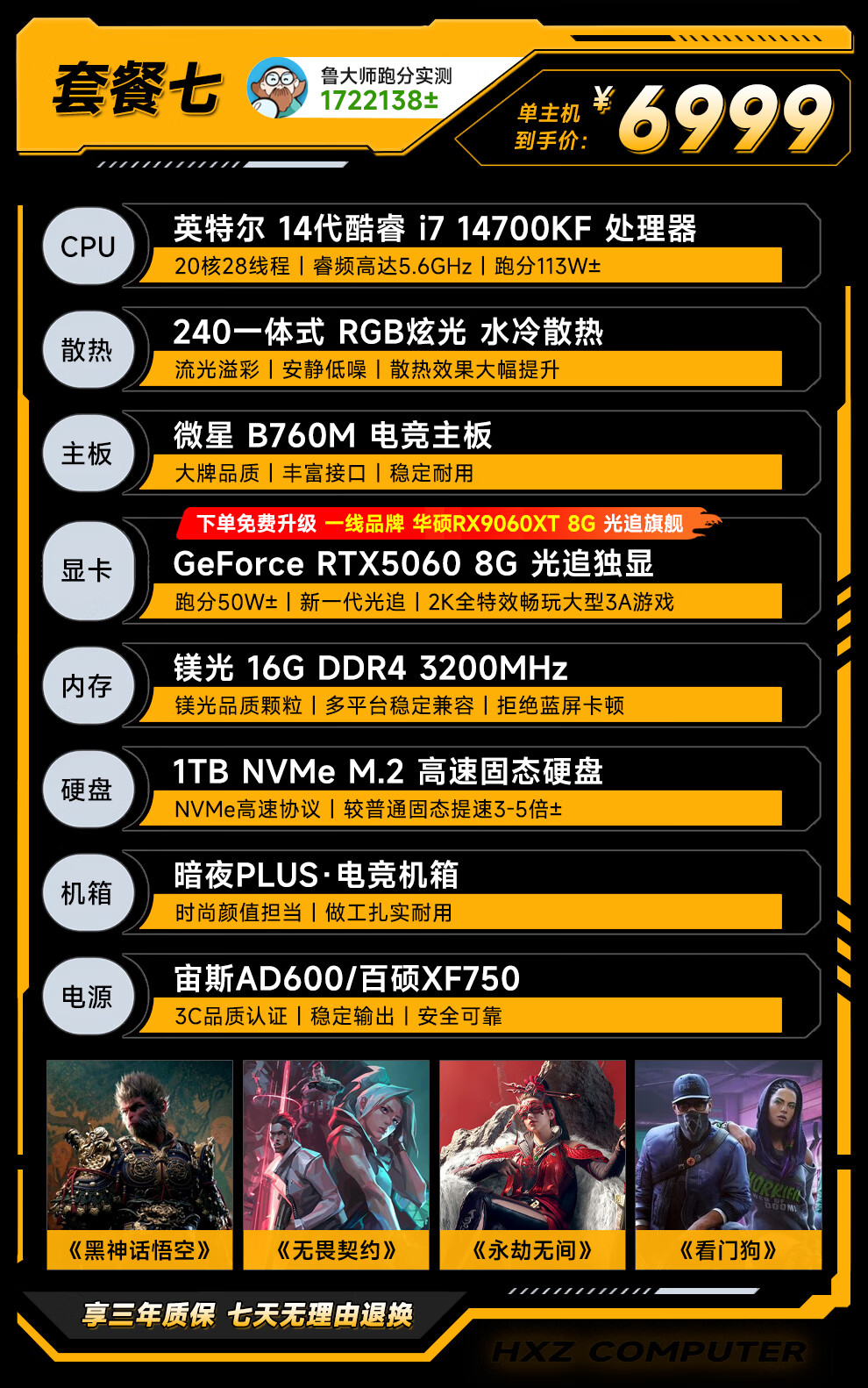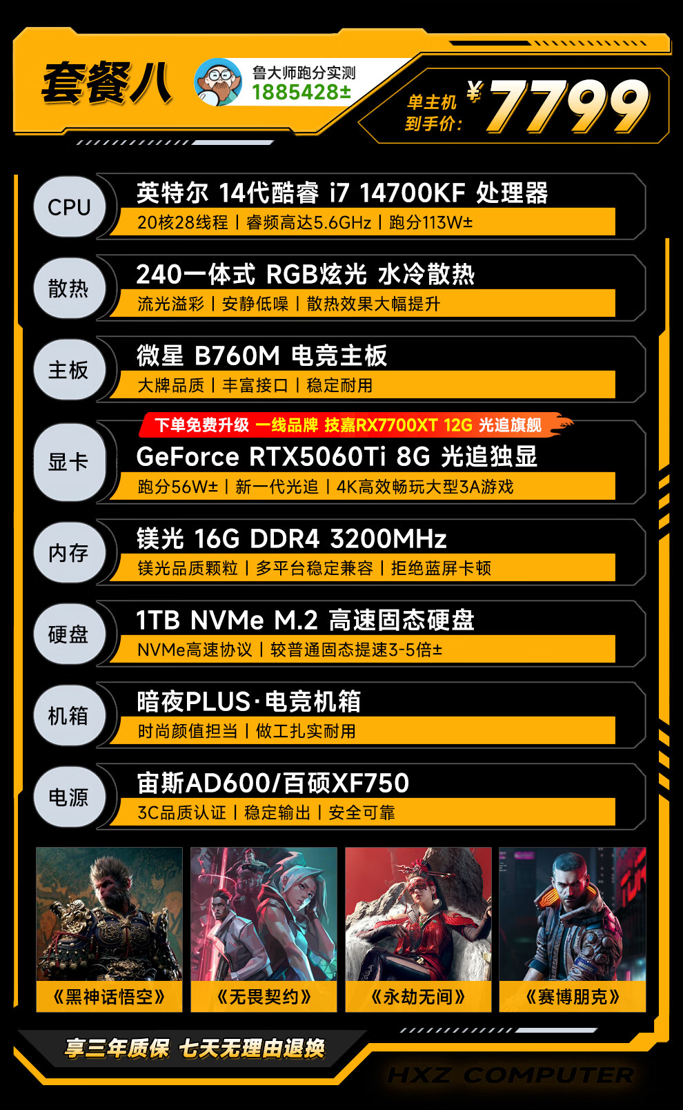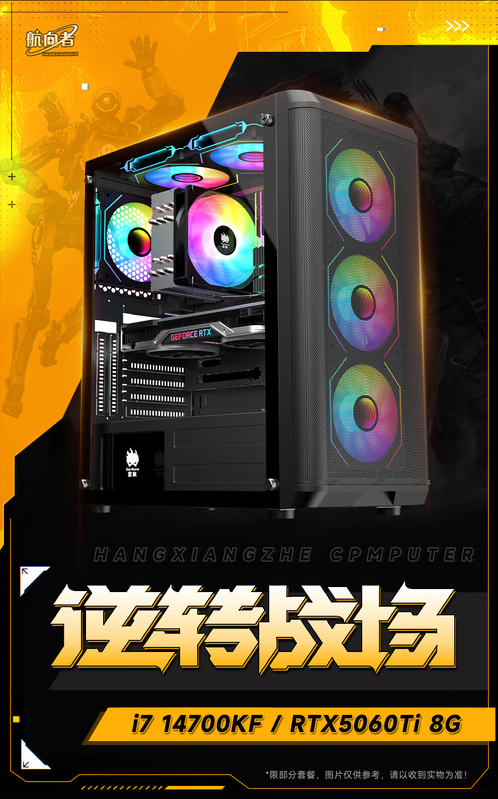 Navigator Core i7 13700F/14700KF/RTX4060Ti/50/60 gaming e-sports design desktop computer host DIY assembly computer complete machine installation set of seven 14700KF丨16G丨RTX5060 host