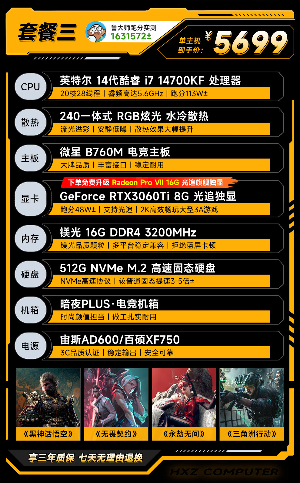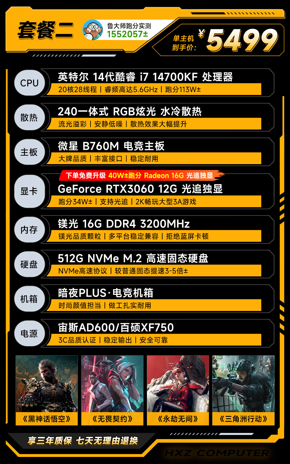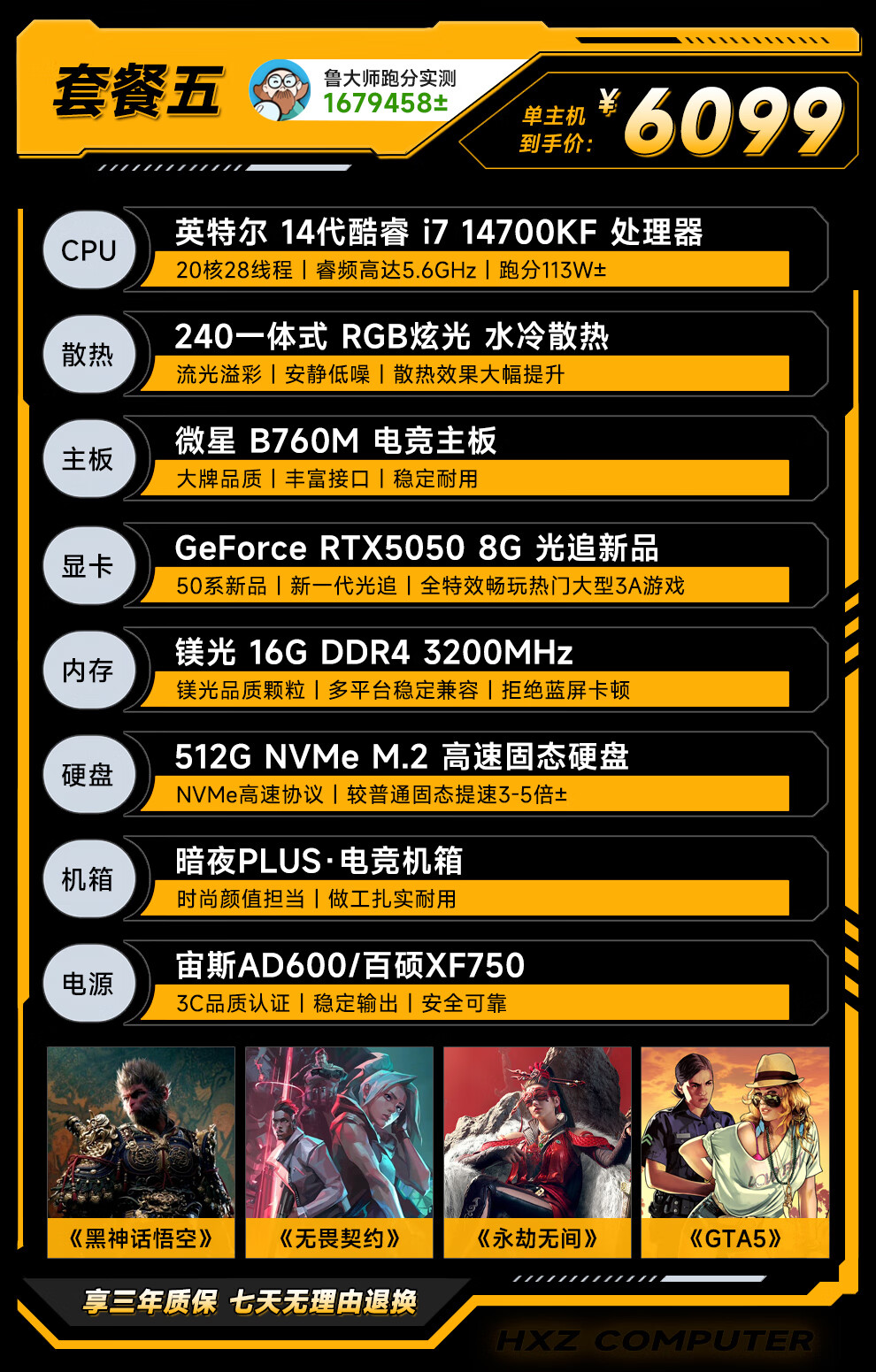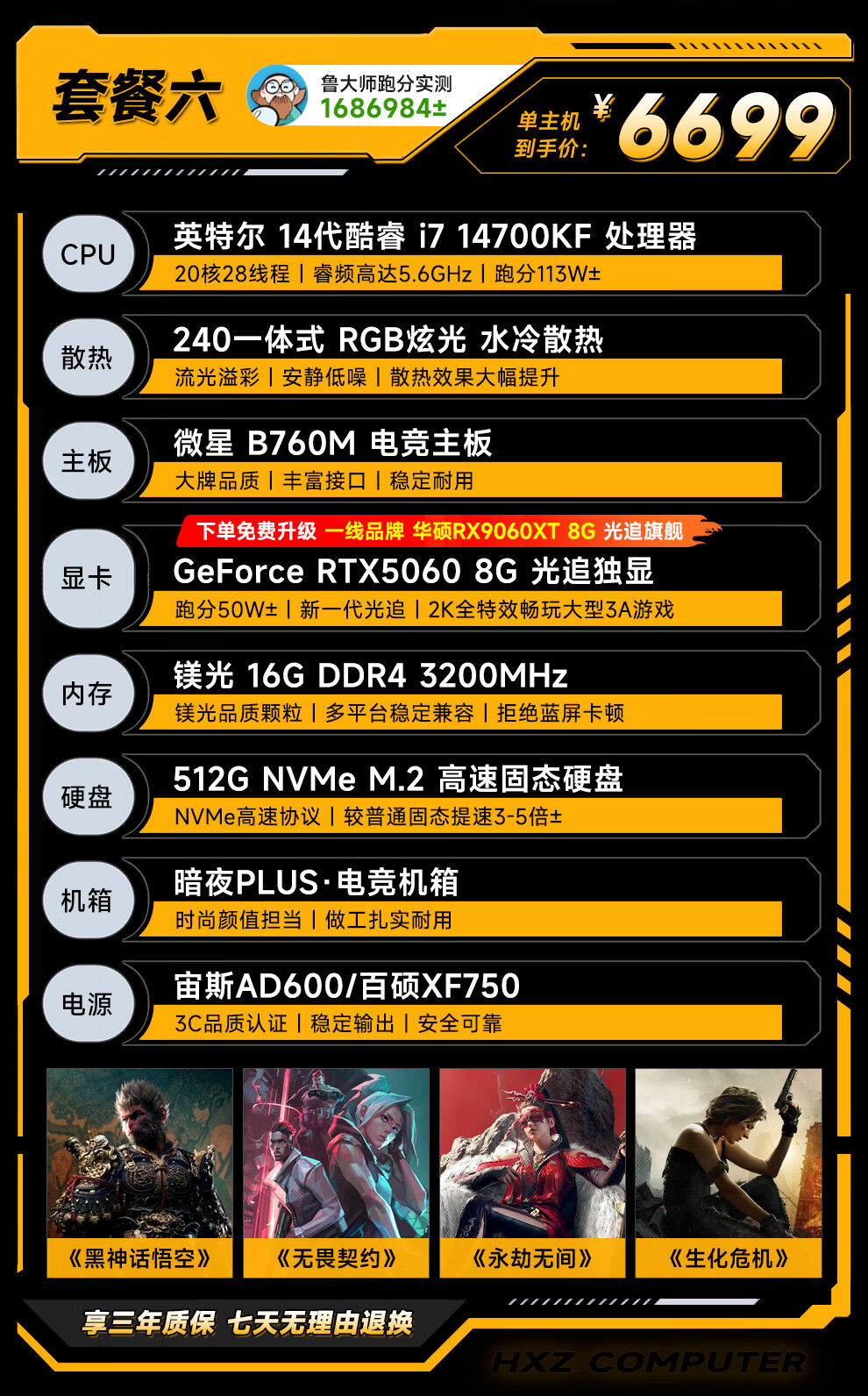 Navigator Core i7 13700F/14700KF/RTX4060Ti/50/60 gaming e-sports design desktop computer host DIY assembly computer complete machine installation set of seven 14700KF丨16G丨RTX5060 host