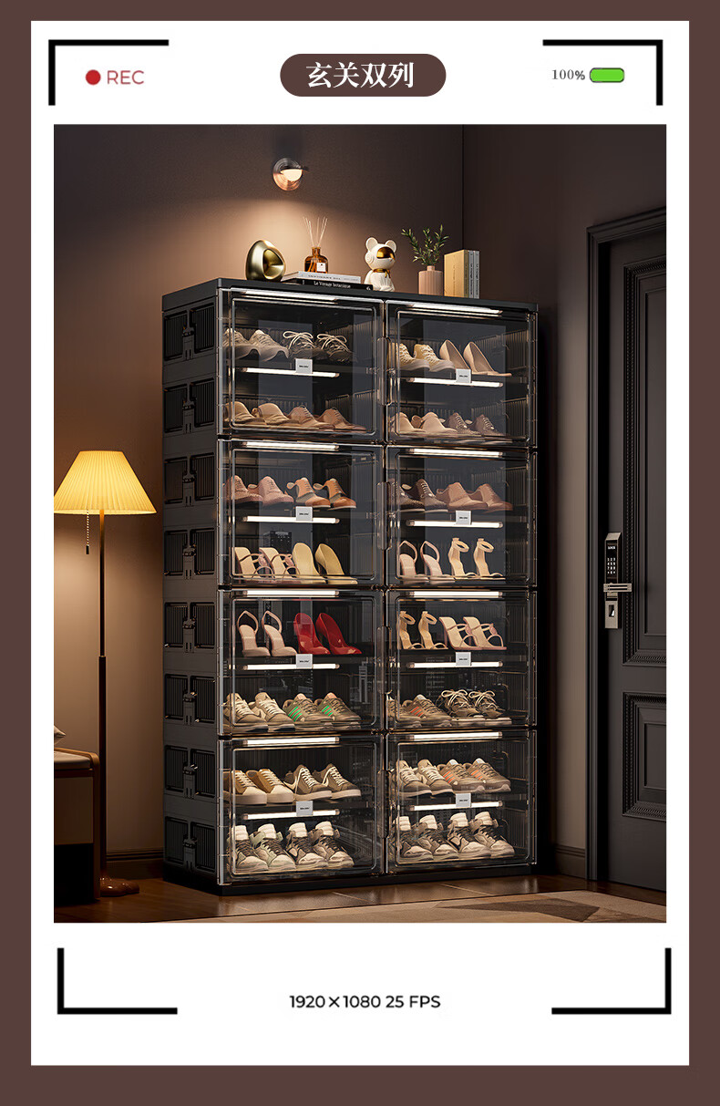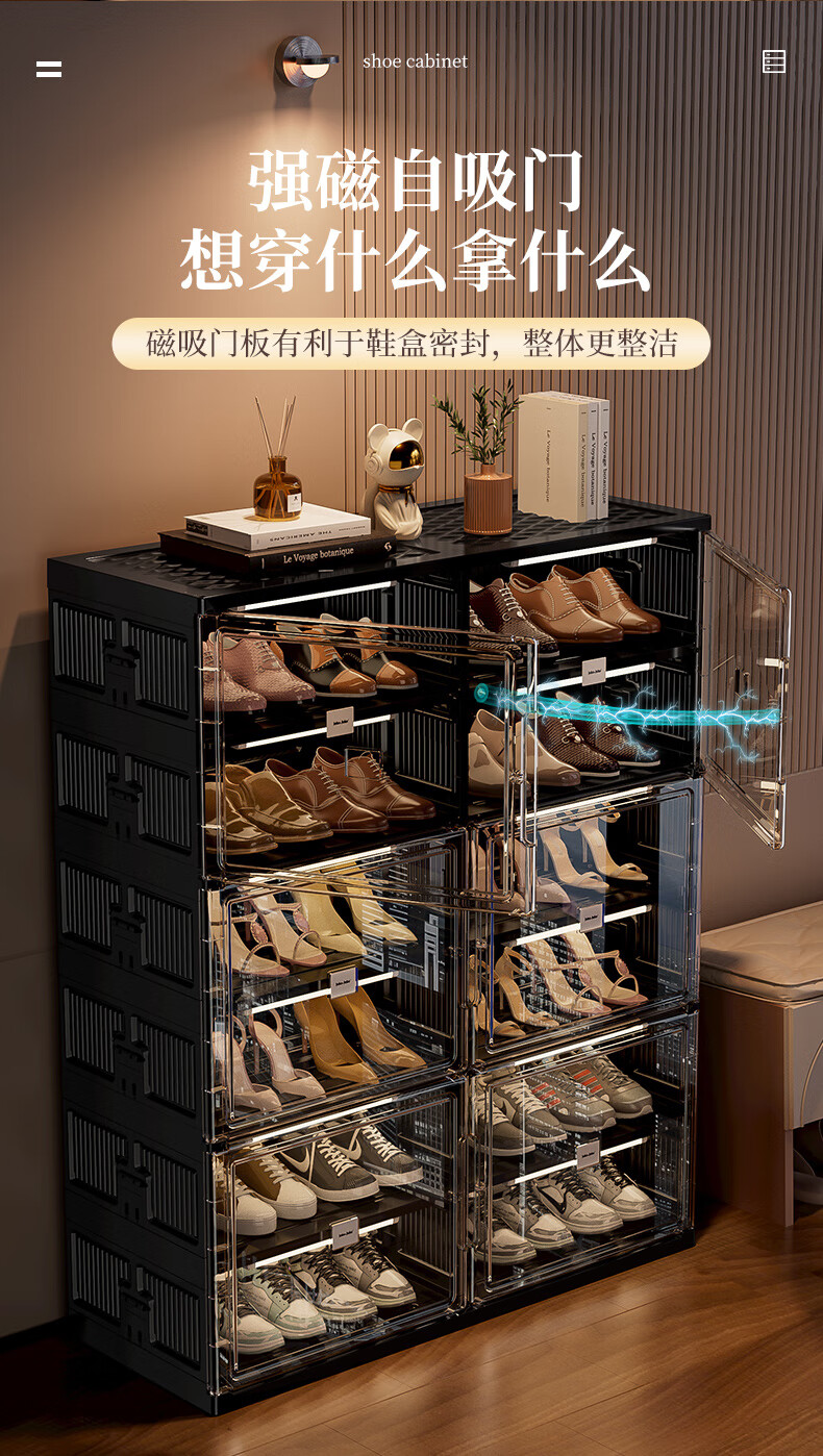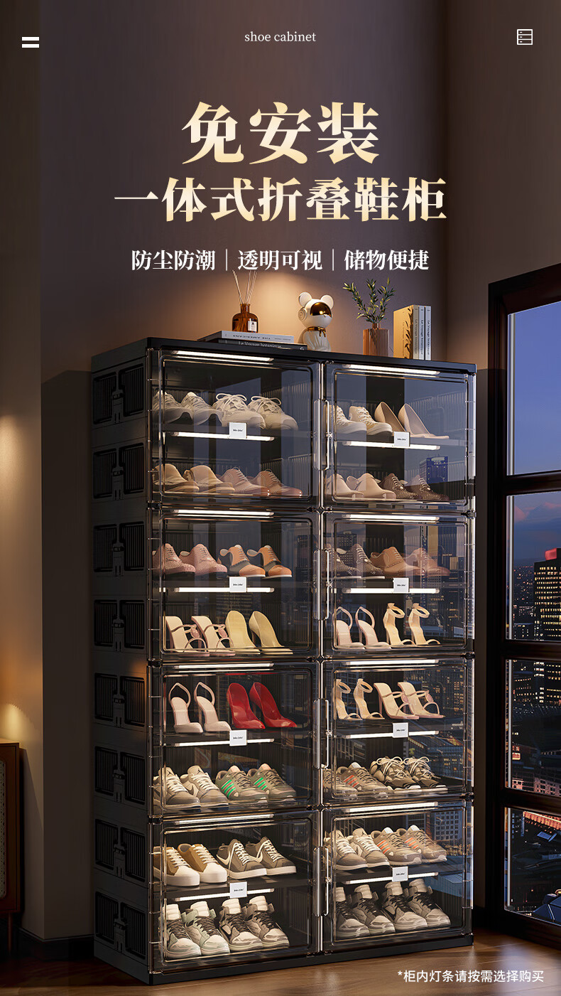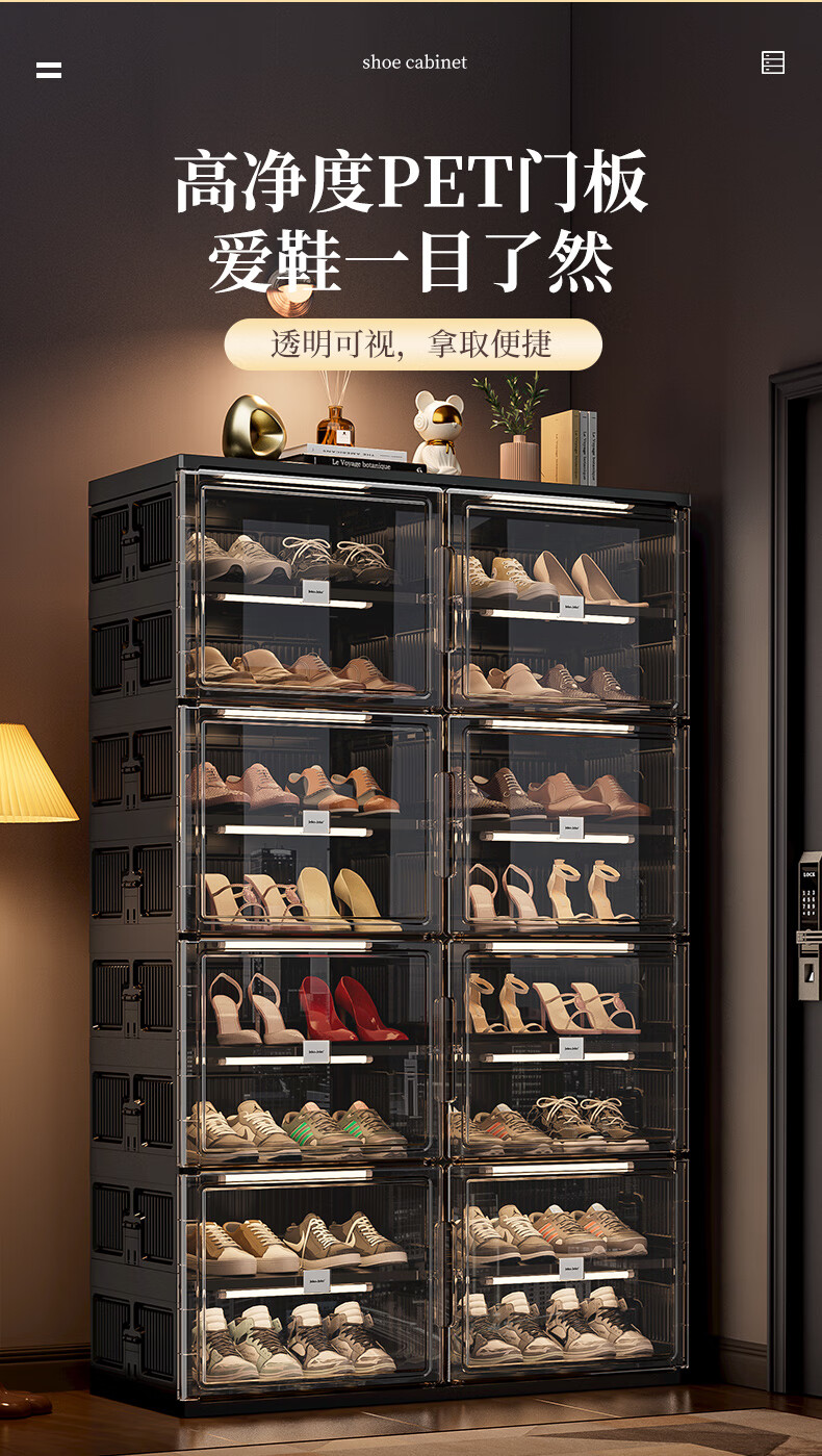 Hualeji installation-free shoe box shoe cabinet folding shoe rack home door shoe storage box one-piece wall artifact transparent plastic black shoe cabinet 2 columns 9 layers 18 grids_can hold 36 pairs of shoes