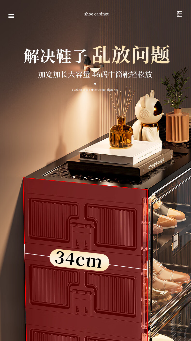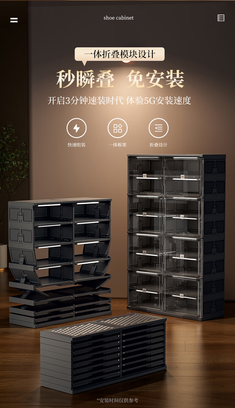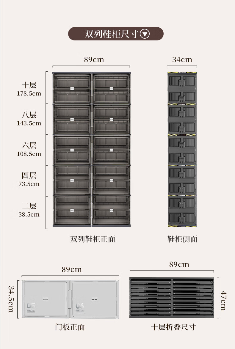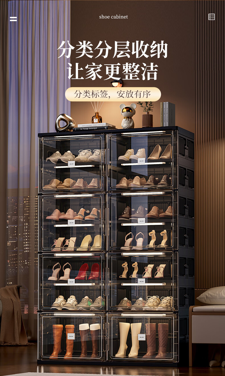 Hualeji installation-free shoe box shoe cabinet folding shoe rack home door shoe storage box one-piece wall artifact transparent plastic black shoe cabinet 2 columns 9 layers 18 grids_can hold 36 pairs of shoes