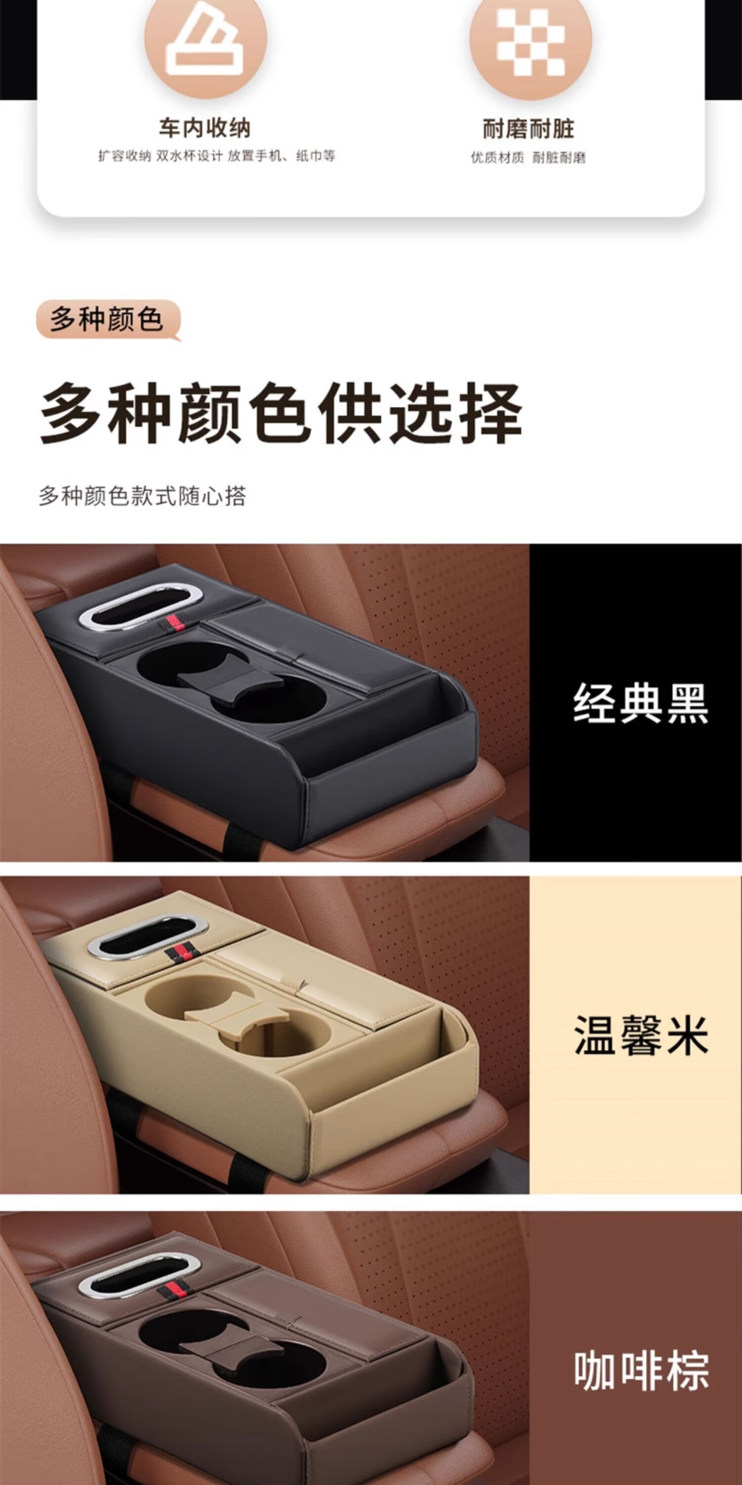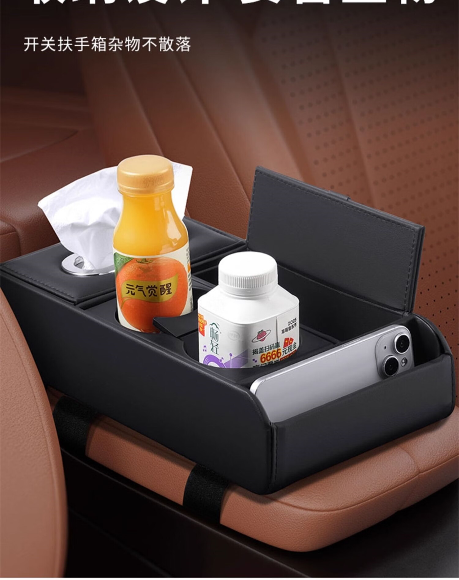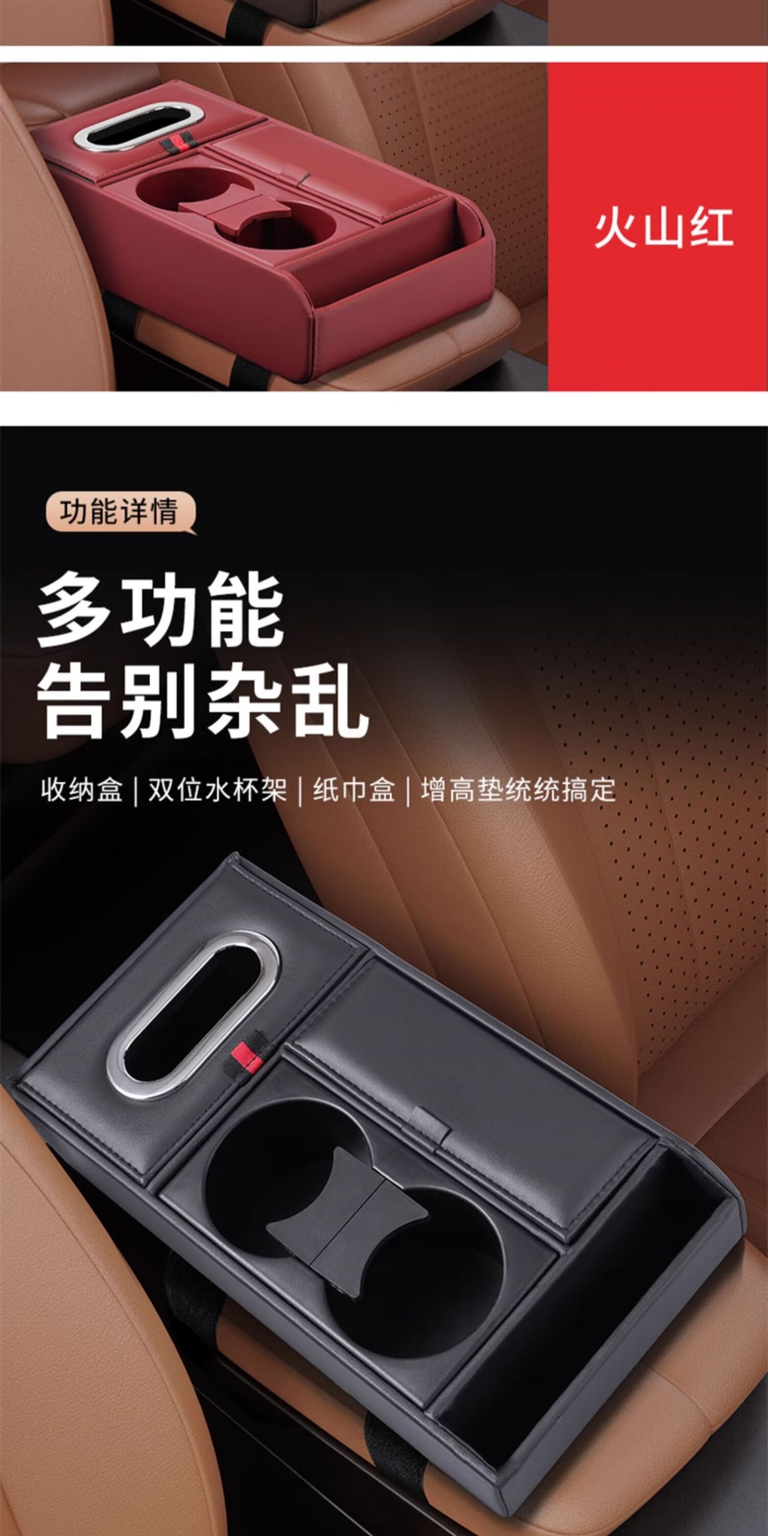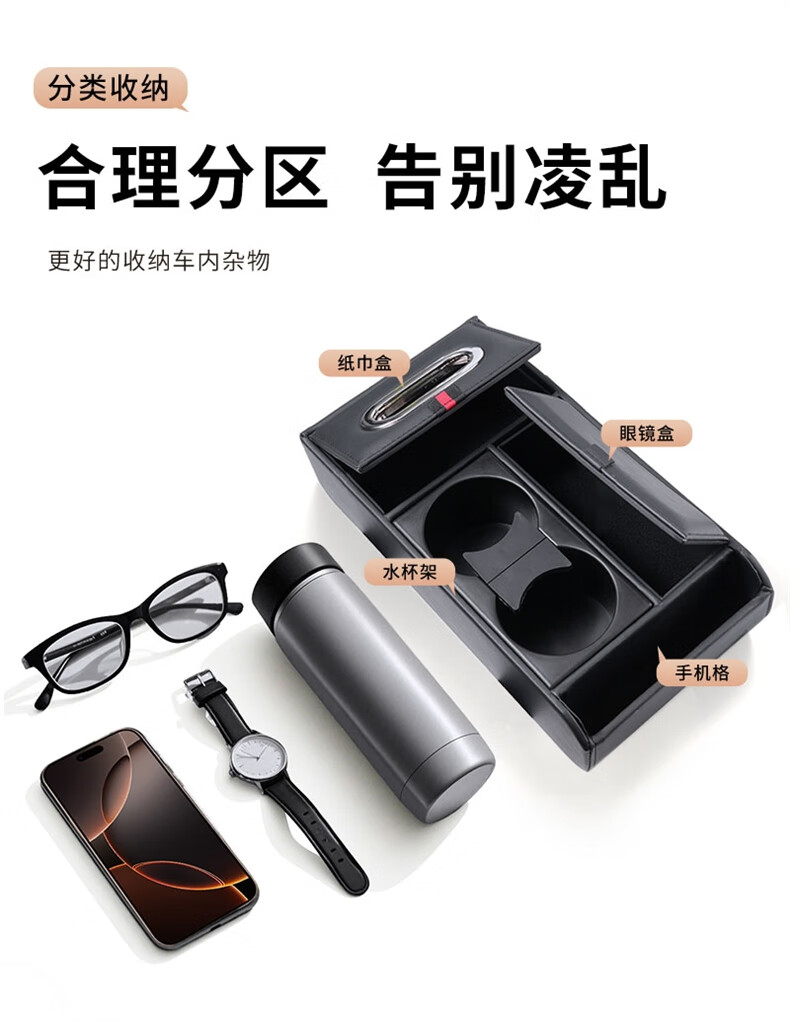 Wuji new car central armrest box mat multi-functional car tissue box storage box water cup holder storage box booster pad Volkswagen Passat Langyi Speedy Magotan Tiguan Tanyue ID Classic Black - Multi-functional armrest box storage box