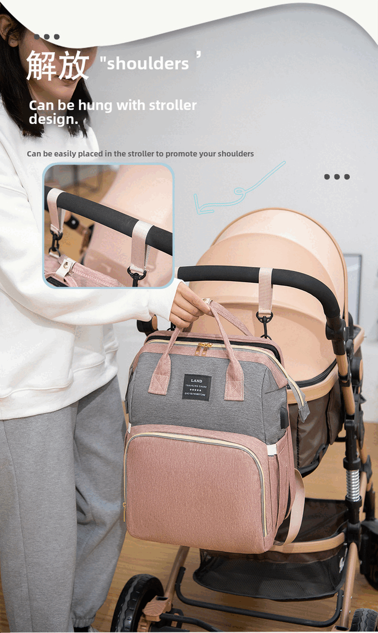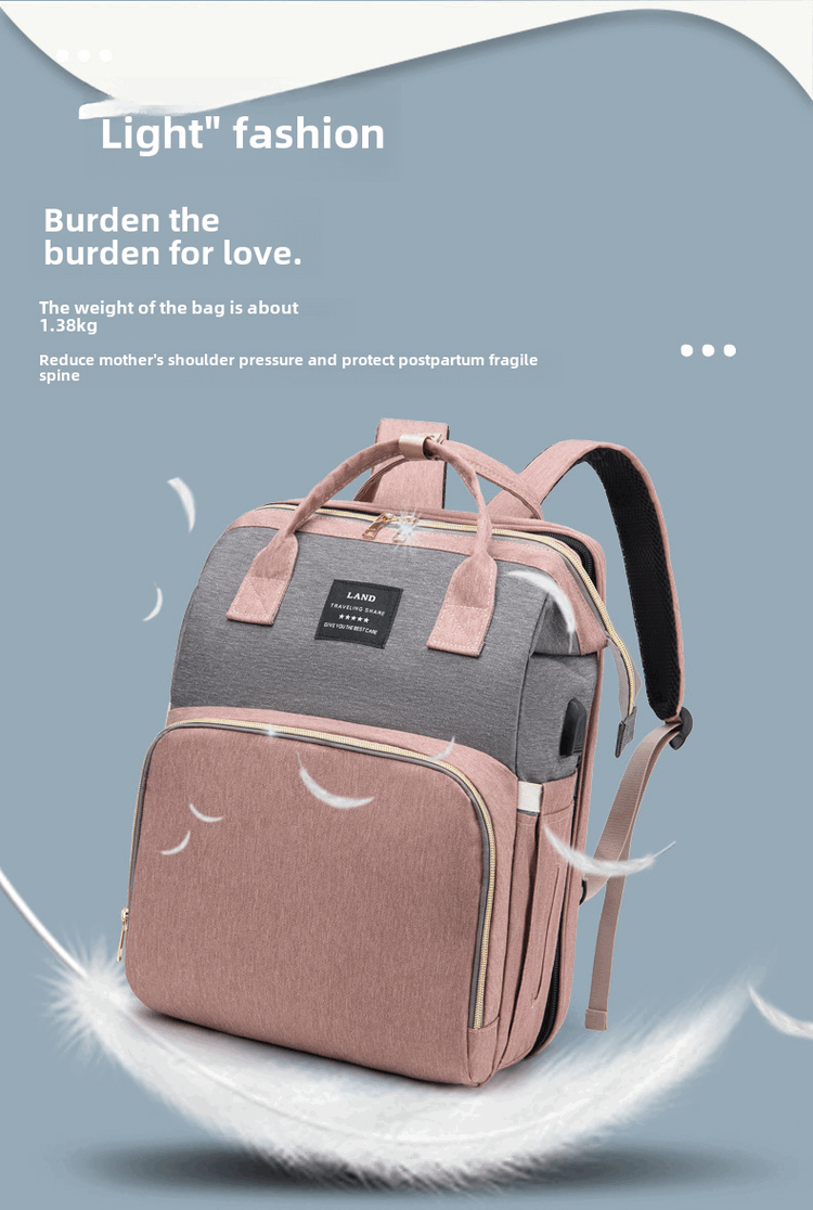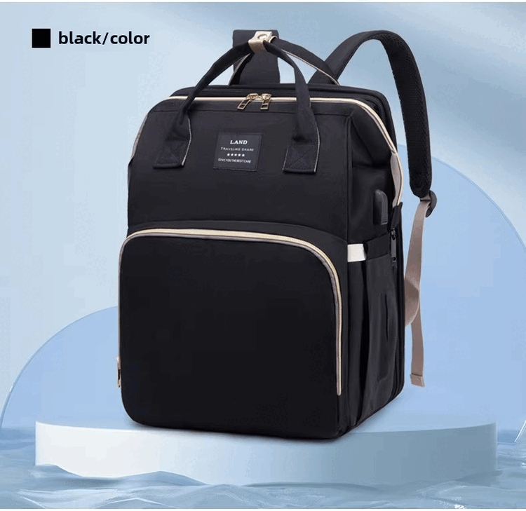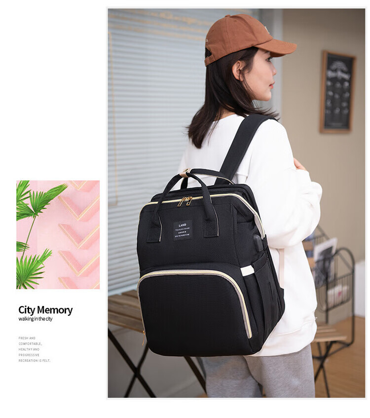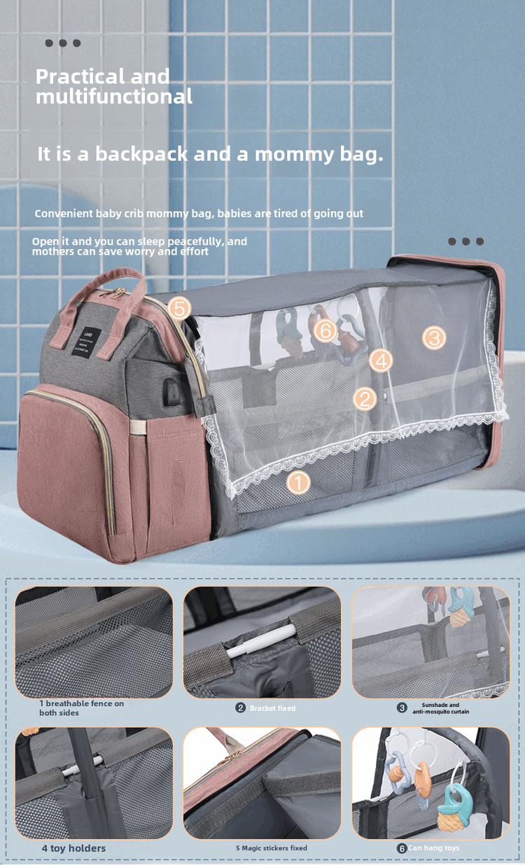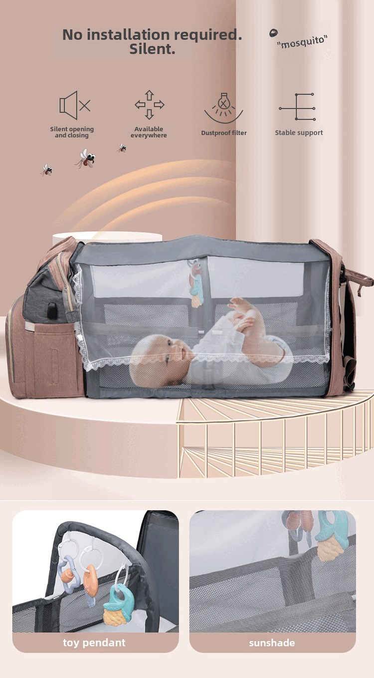 Mummy Bag Multifunctional Anti-mosquito Foldable Crib Portable Mother and Baby Bag Large Capacity Travel Backpack Black - Large Capacity 30L Comes with Toys + Mosquito Net + Changing Mat + USB Cable + Stroller Hook