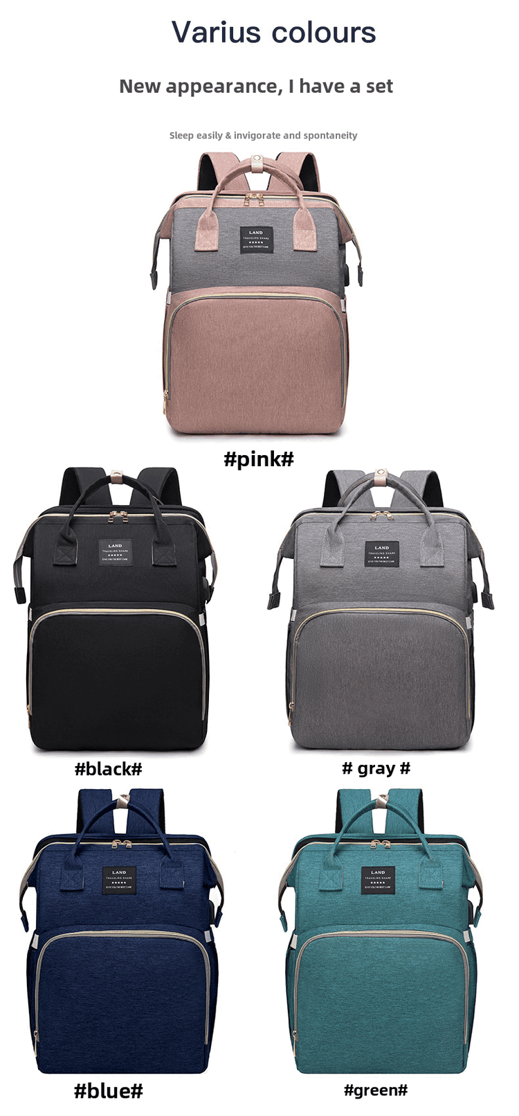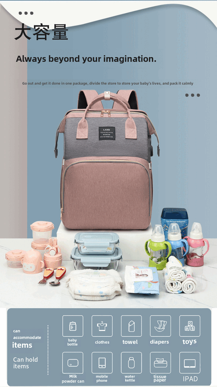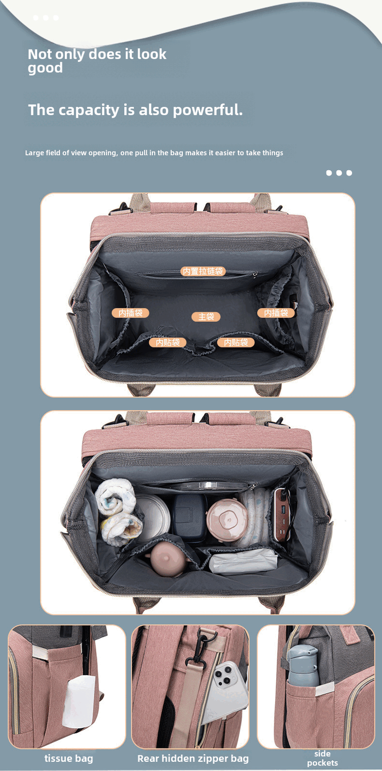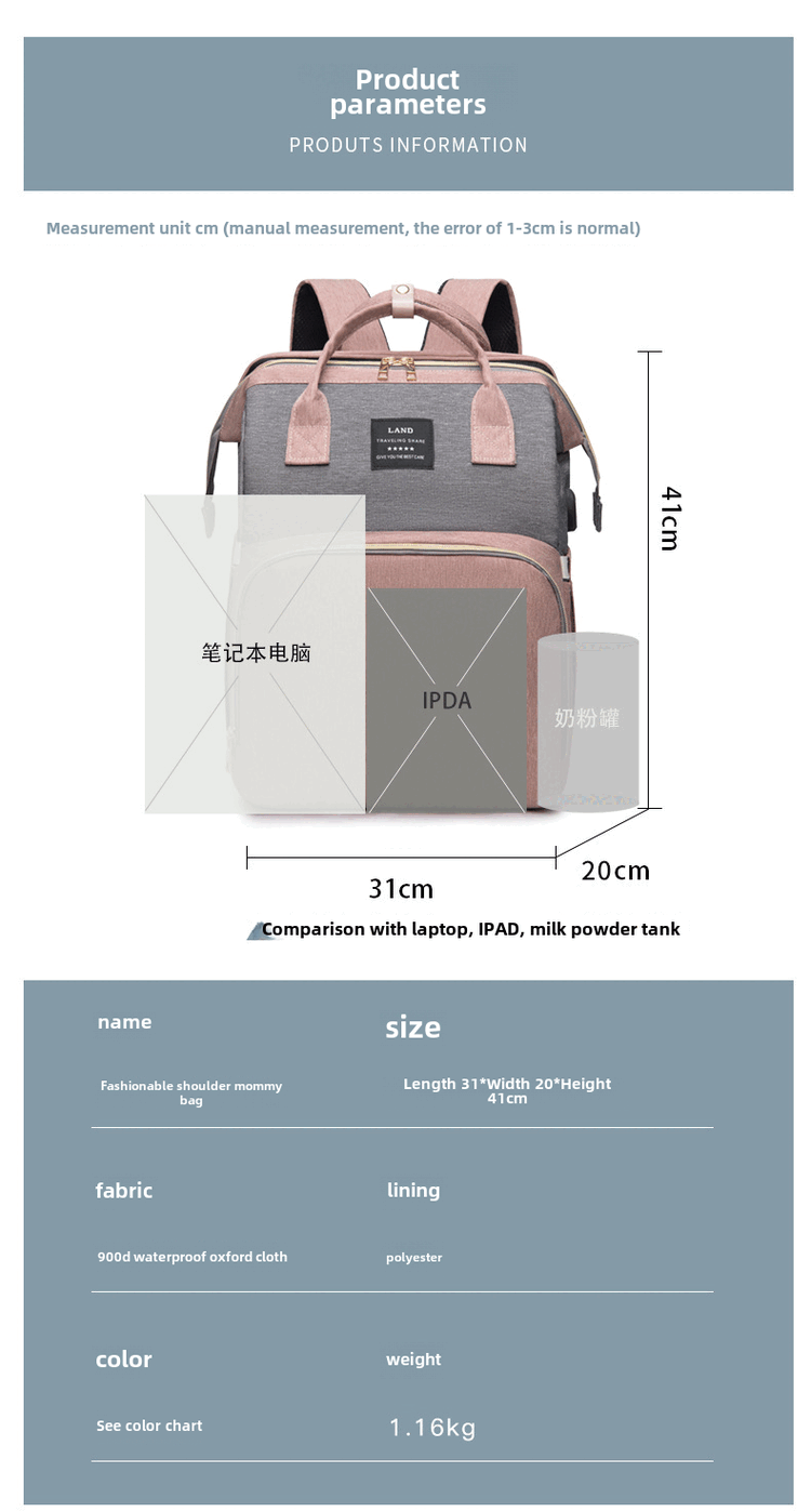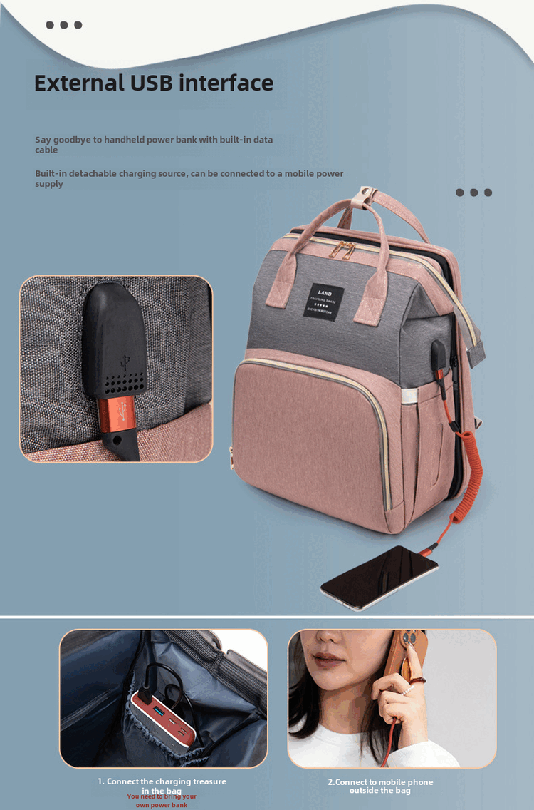 Mummy Bag Multifunctional Anti-mosquito Foldable Crib Portable Mother and Baby Bag Large Capacity Travel Backpack Black - Large Capacity 30L Comes with Toys + Mosquito Net + Changing Mat + USB Cable + Stroller Hook